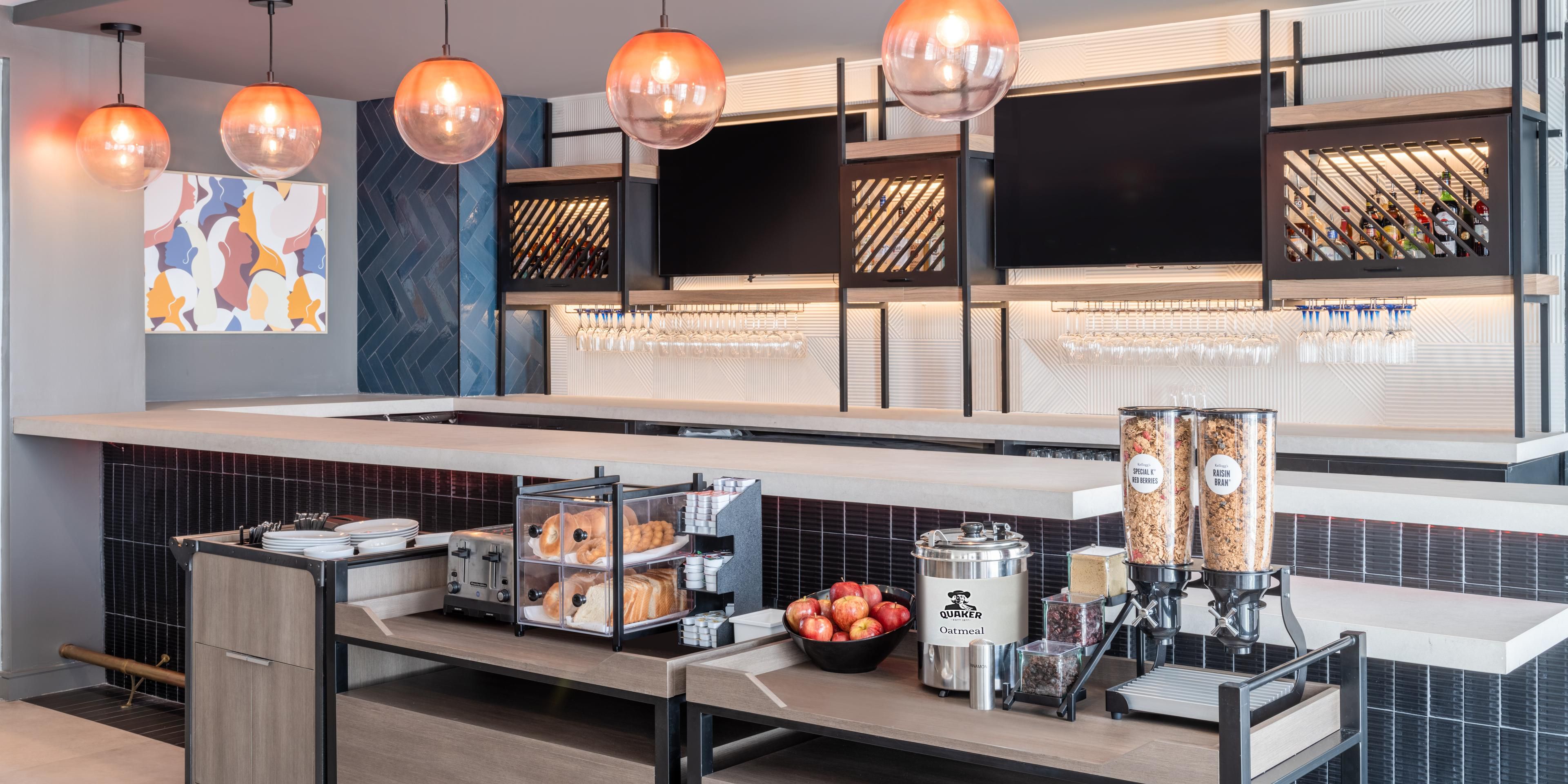 Kick start your day with our complimentary breakfast featuring hot and cold options. Enjoy hot breakfast sandwiches, omelets, and oatmeal. On the sweeter side, we offer Greek yogurt, cereals, and signature bakery items. Enjoy still or sparkling water, fresh coffee, espresso, or tea.
