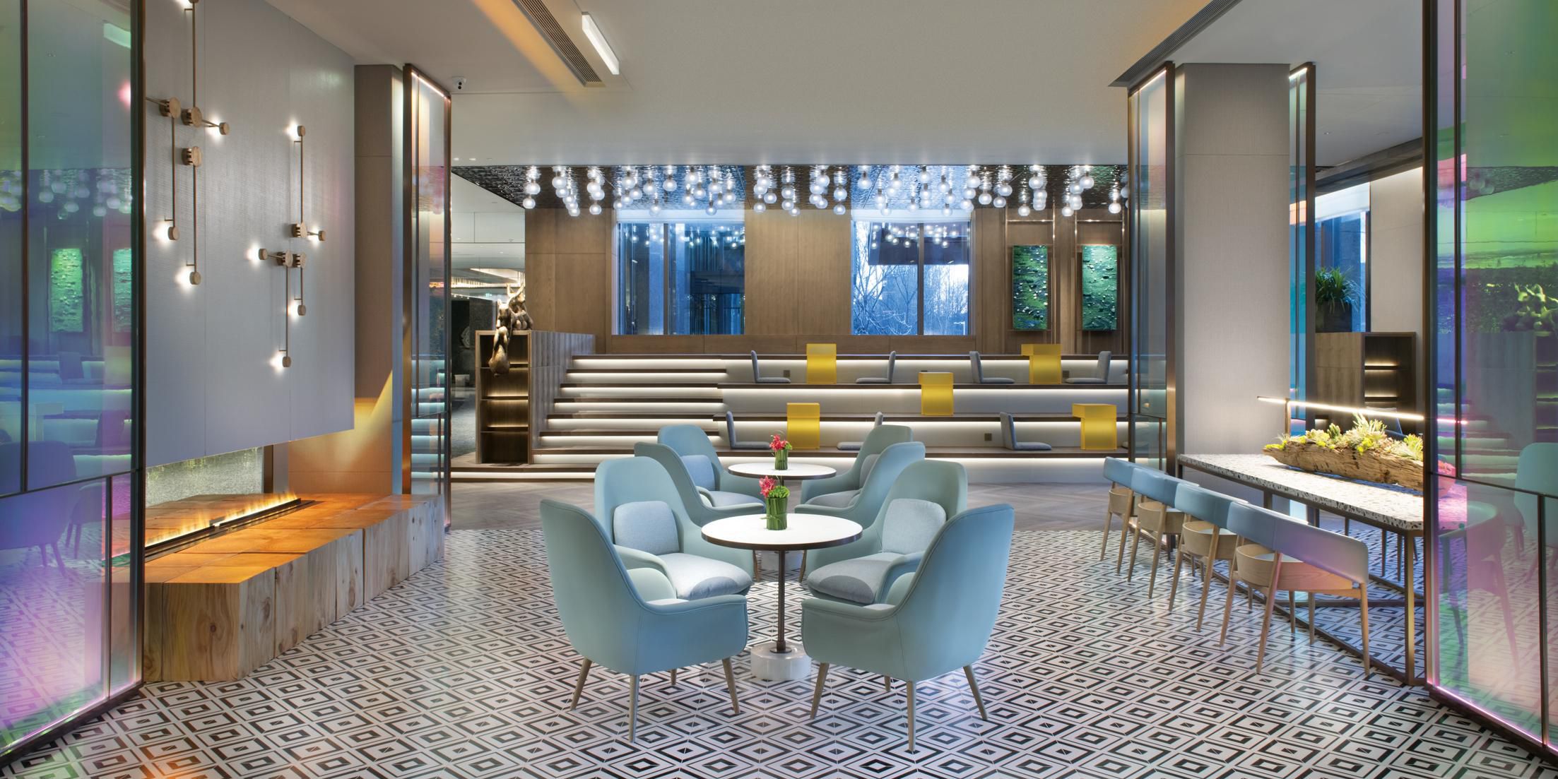 集茶馆、咖啡馆、酒廊的特点于一身,在优雅放松的环境中轻饮浅啜、柔声细语,亦或在您结束一天的工作后,品一杯炫彩的鸡尾酒,酒店大堂酒廊是宾客独自享受悠闲时光或商务小聚的倾心之所。