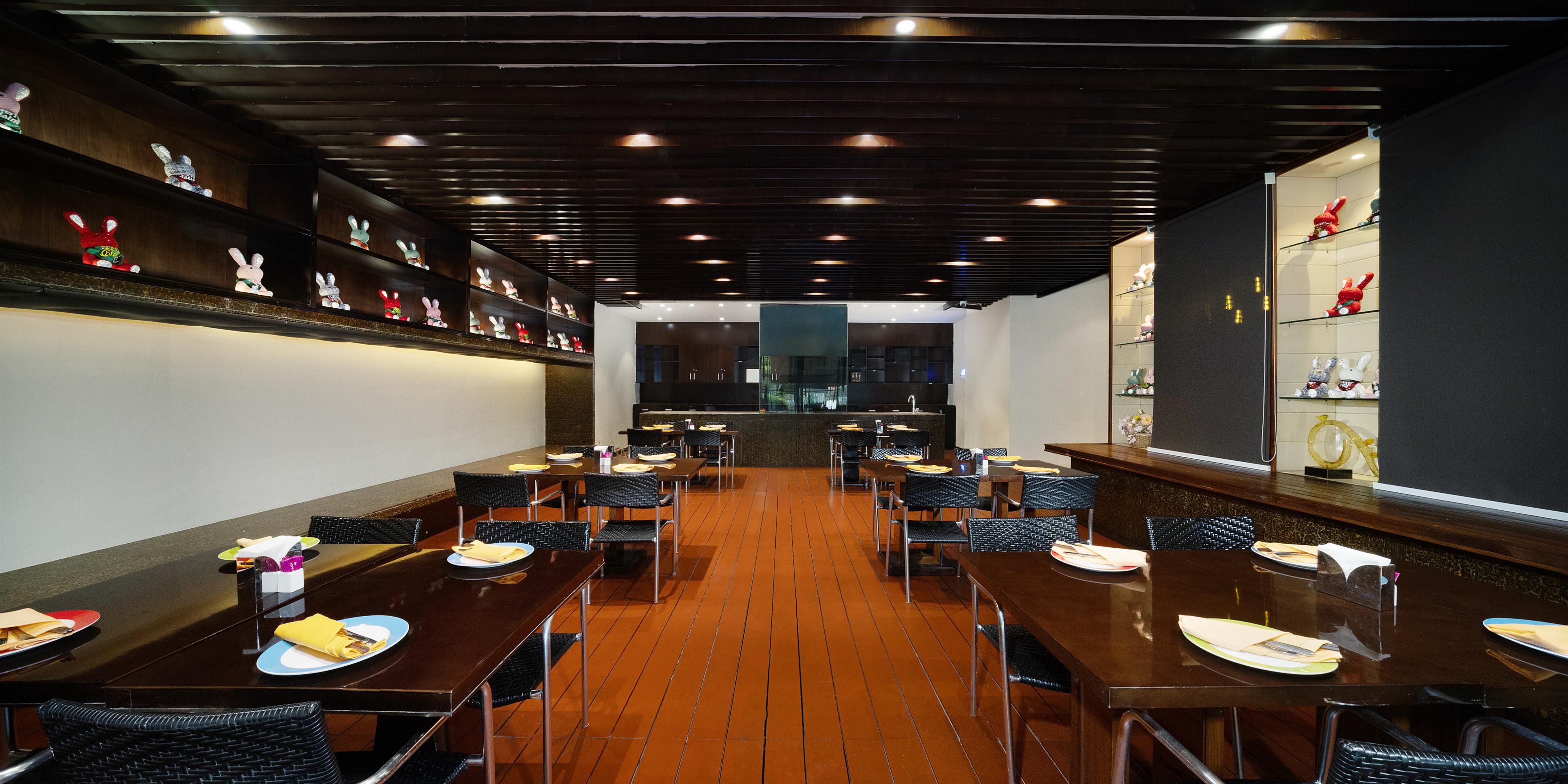 水之韵池畔餐吧是具有户外庭院特色的用餐地点,错落有致的园林设计、小径通幽的户外空间,即可以用联通或拆分的方式进行活动和派对的举办,具有特色的户外玻璃栈道为场地带来了炫彩造景。室内外可同时容纳200人用餐。