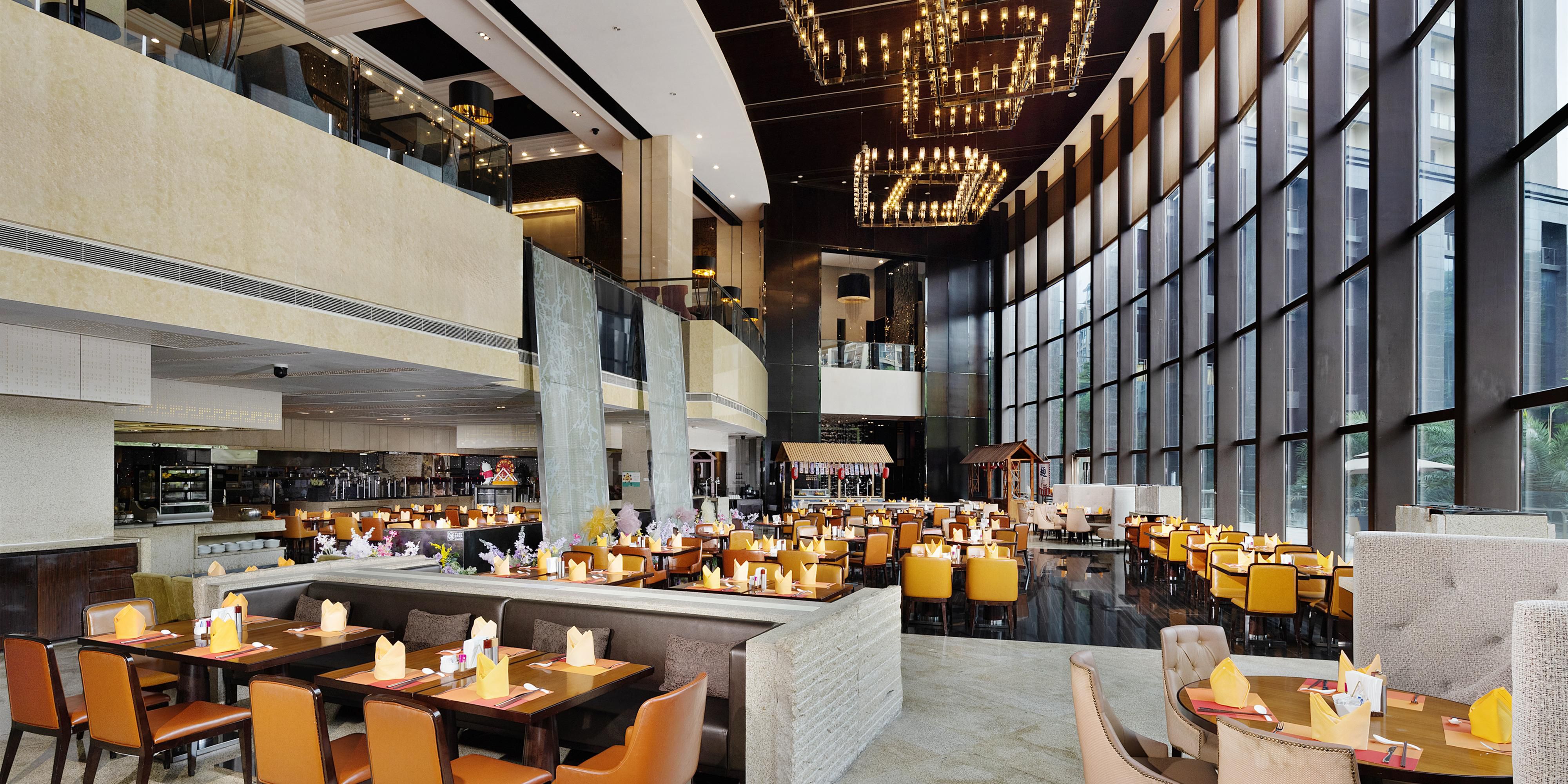 西式自助餐荟萃世界美食,并辅以亚洲特色及本土风味的零点佳肴。细心设计的儿童乐园,令家庭就餐更加温馨惬意。