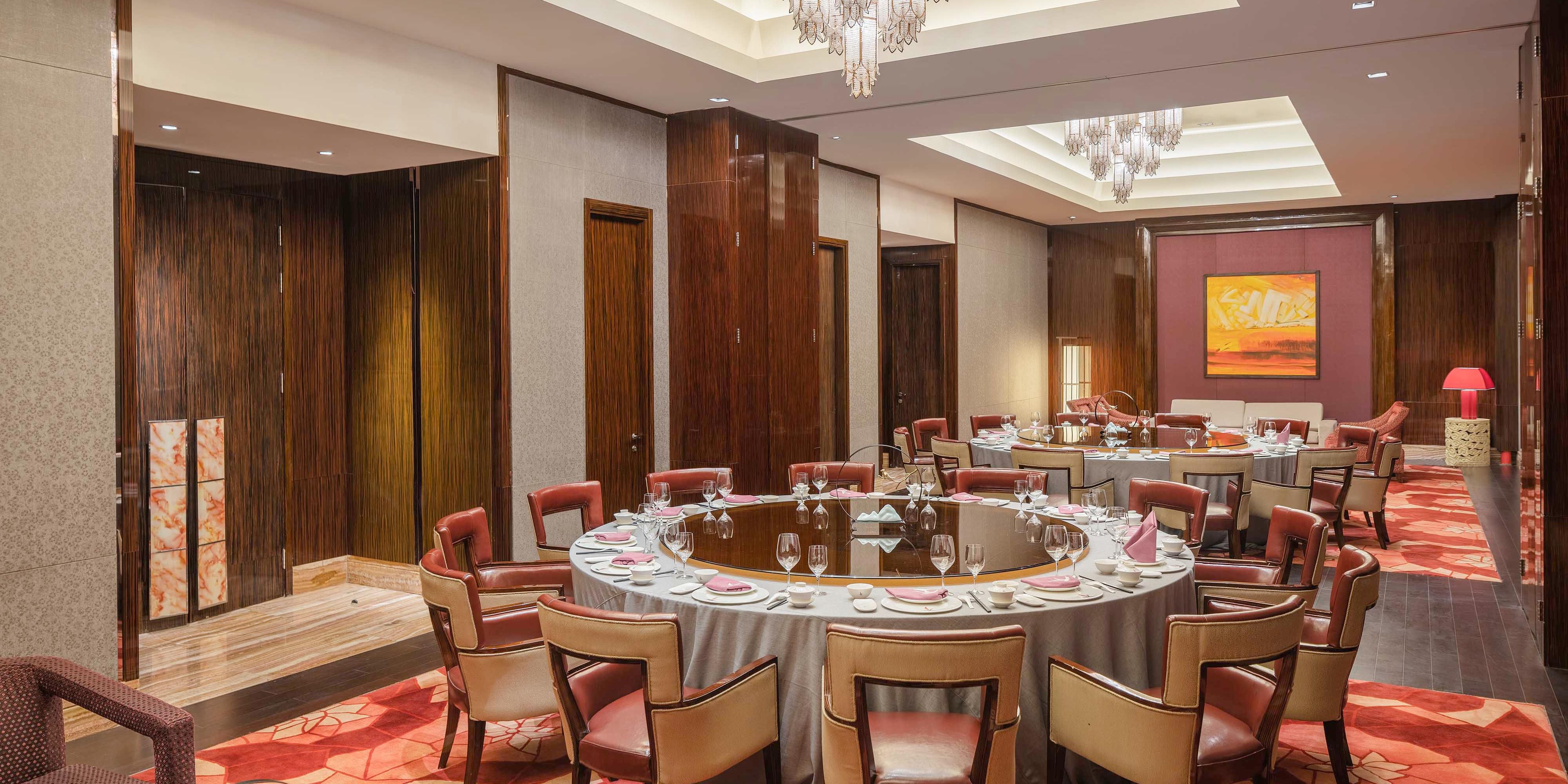 时尚典雅的中餐厅,在打造顶端饮食理念的同时,丝毫没有放松传统服务。舒适的就餐氛围,丰富的菜系,适合各种聚餐时刻。 技艺精湛的厨师团队对食材的选择非常考究,大连海鲜、粤菜、鲁菜等。每个菜系、每道佳肴均选用新鲜天然的食材。