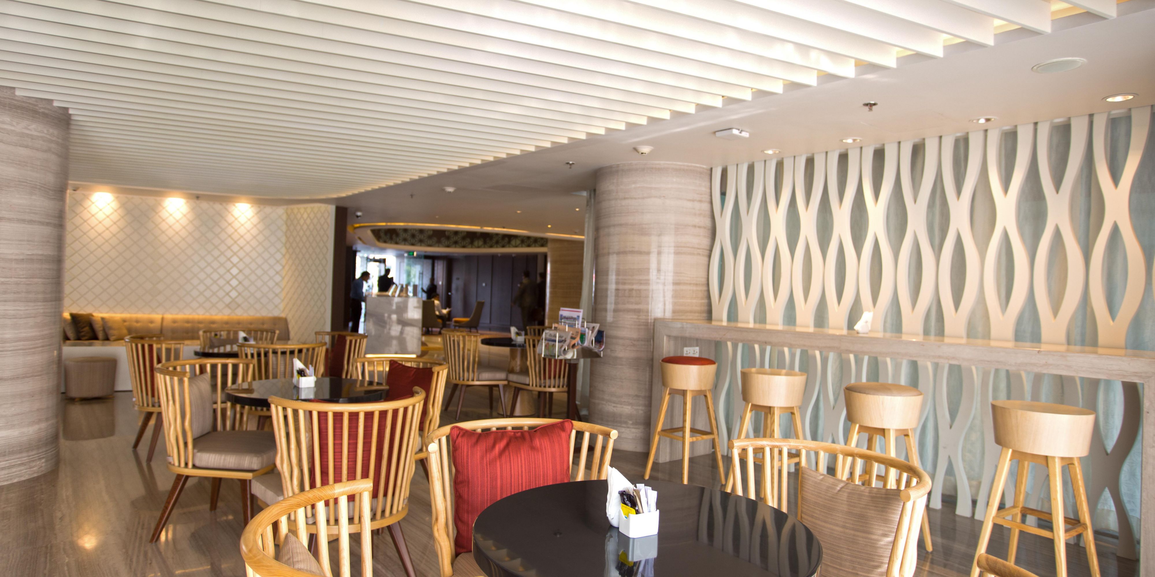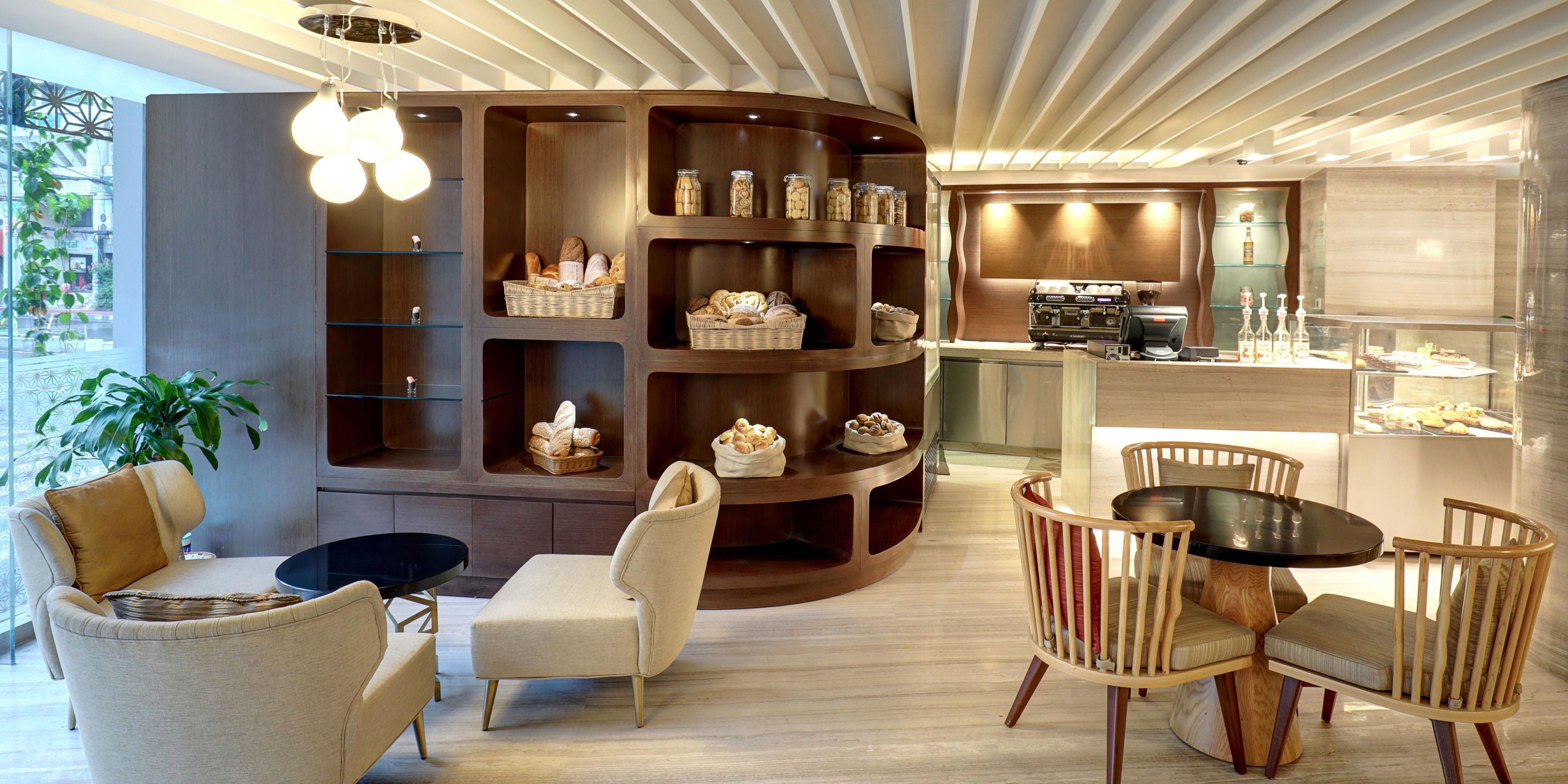 A fun happy place at lobby level to enjoy bakery and dessert choices with thirst quenching classic coffee and tea selections.
