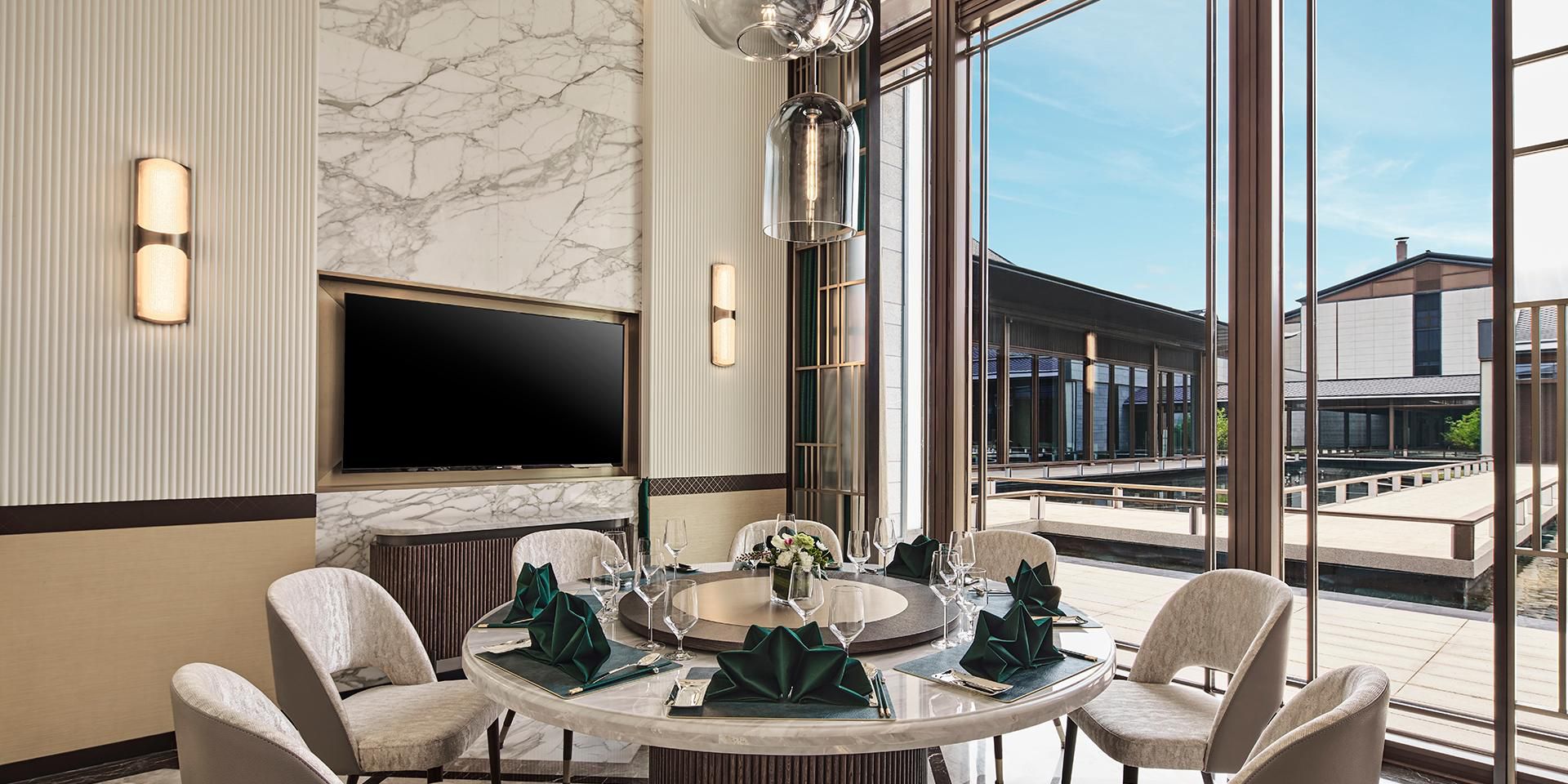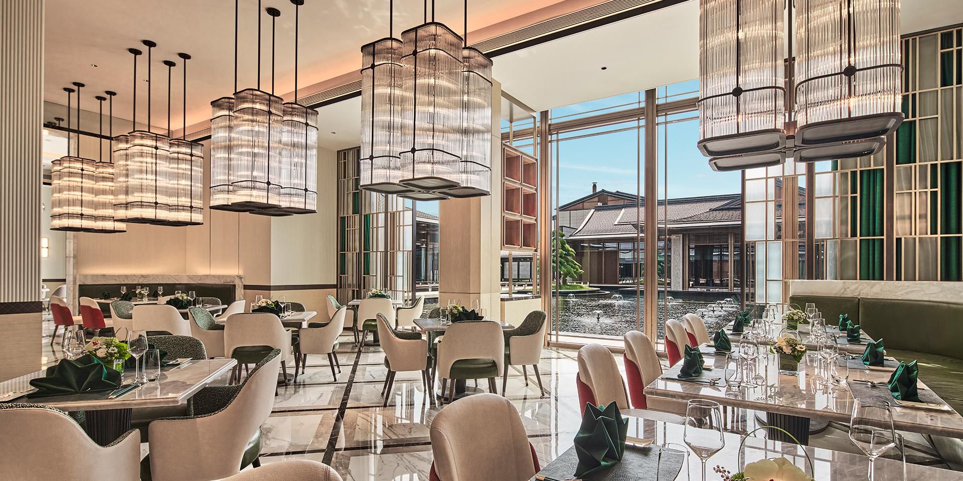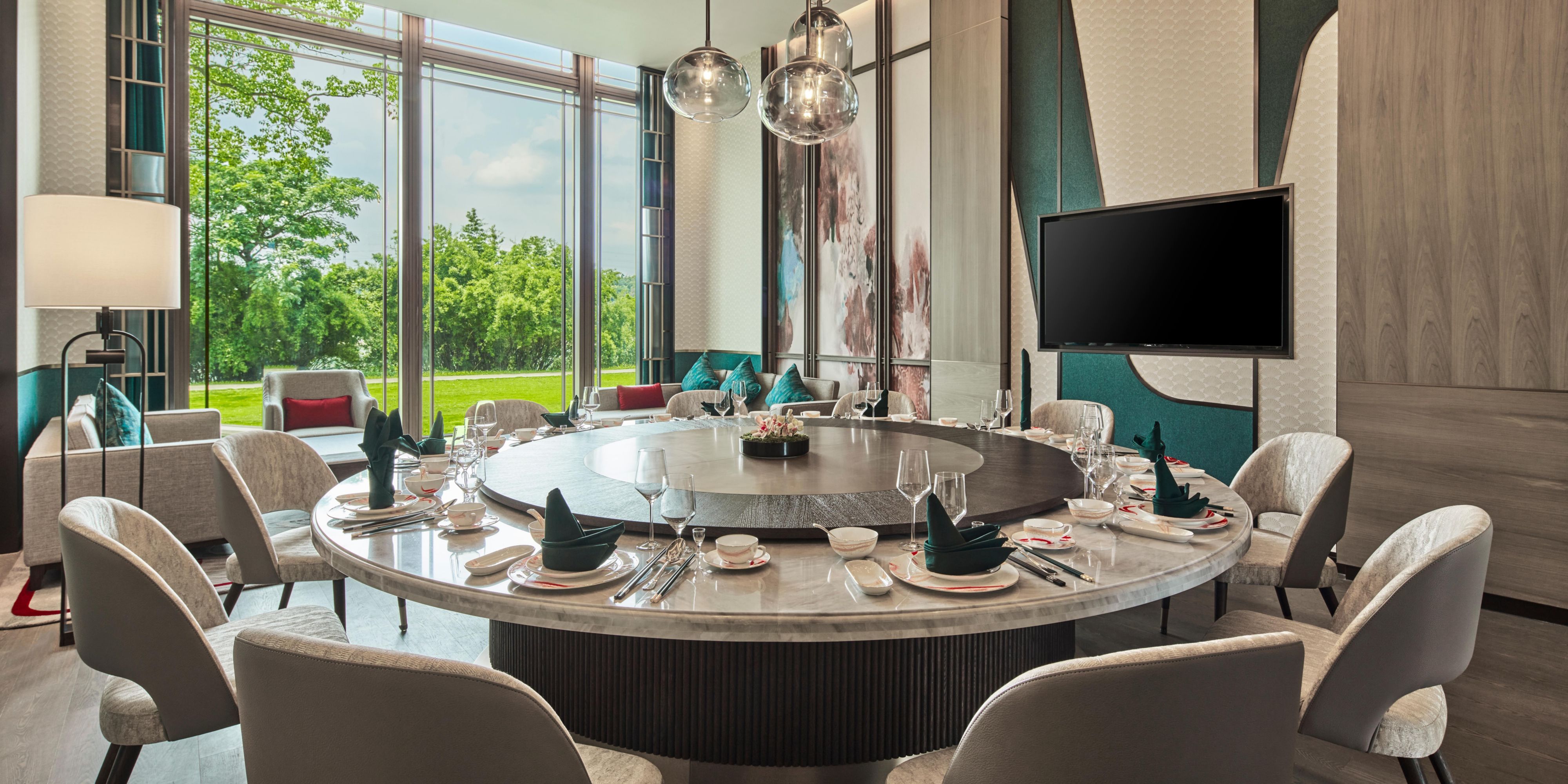 酒店含三间特色餐厅,分别是七醴全日餐厅,提供全天候寰宇美食;珏宴中餐厅为您呈现各式客家美食佳肴,定会令您流连忘返;烘焙坊为您甄选的精美私房手工甜品及精选咖啡。伴随精致点心带来的丝丝甜蜜,开启奢享惬意时光。