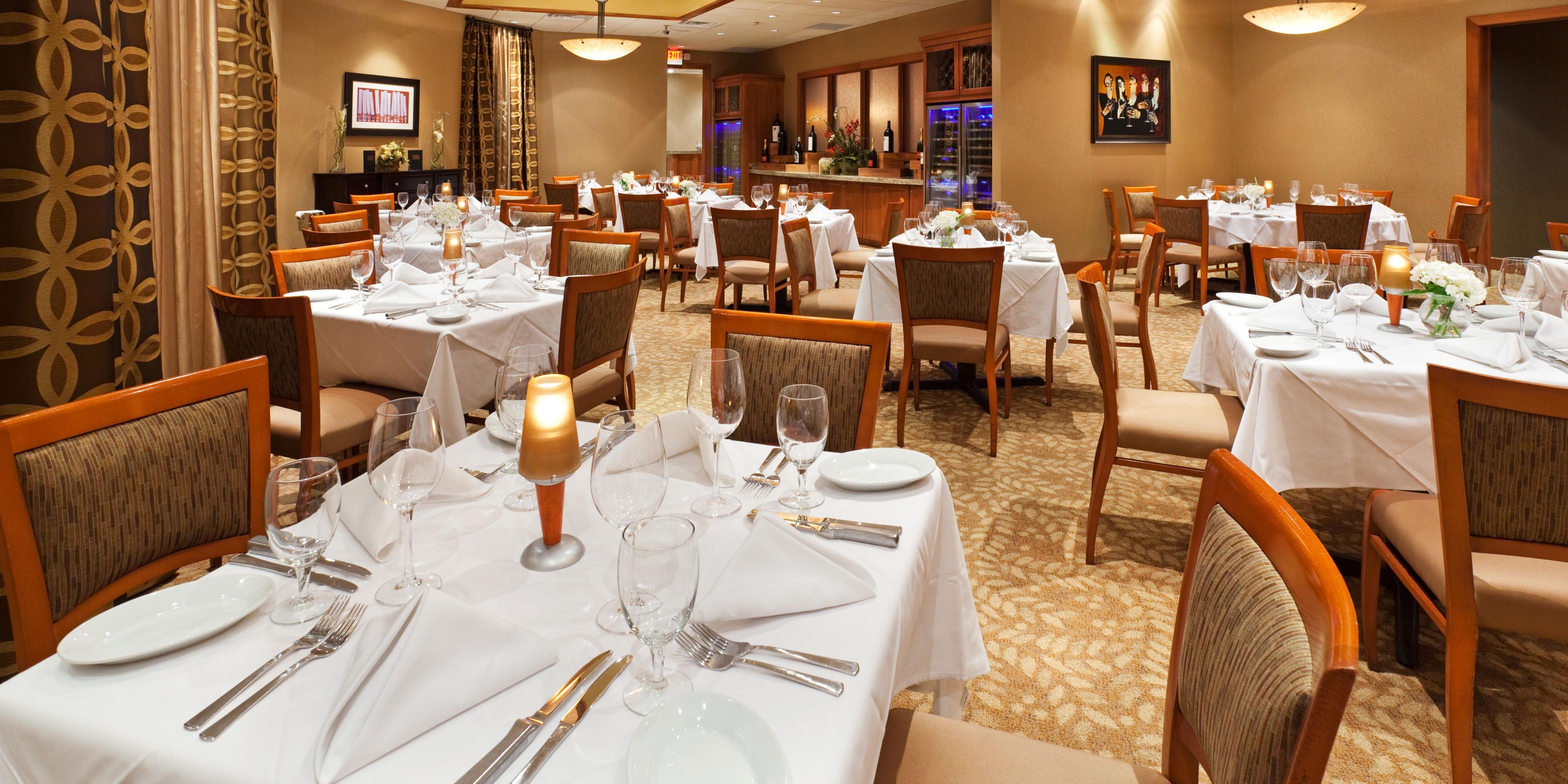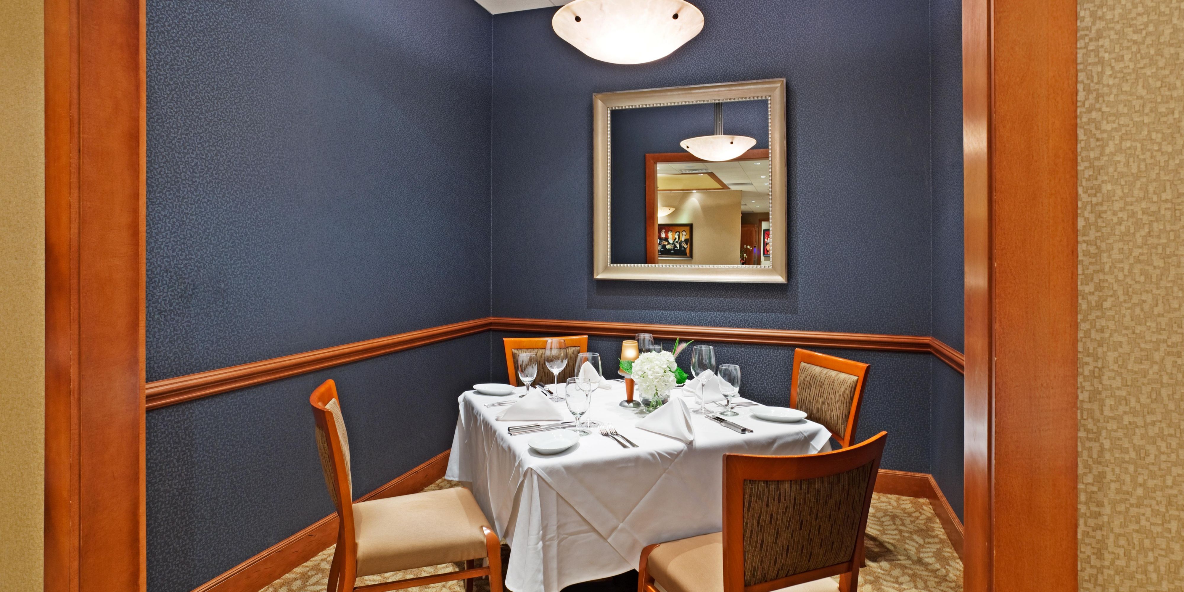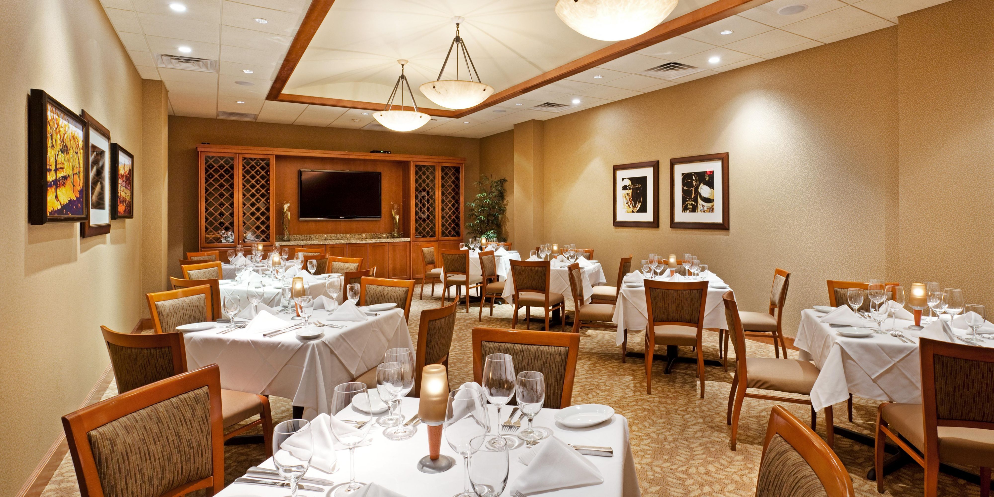 Breakfast, dinner & room service are available 7 days a week. Our ballroom accommodates up to 300 for dinner & 400 for receptions. Visit our 2 lounges for your favorite beverage, appetizers & sandwiches. A Ruth's Chris Steak House is in the hotel.