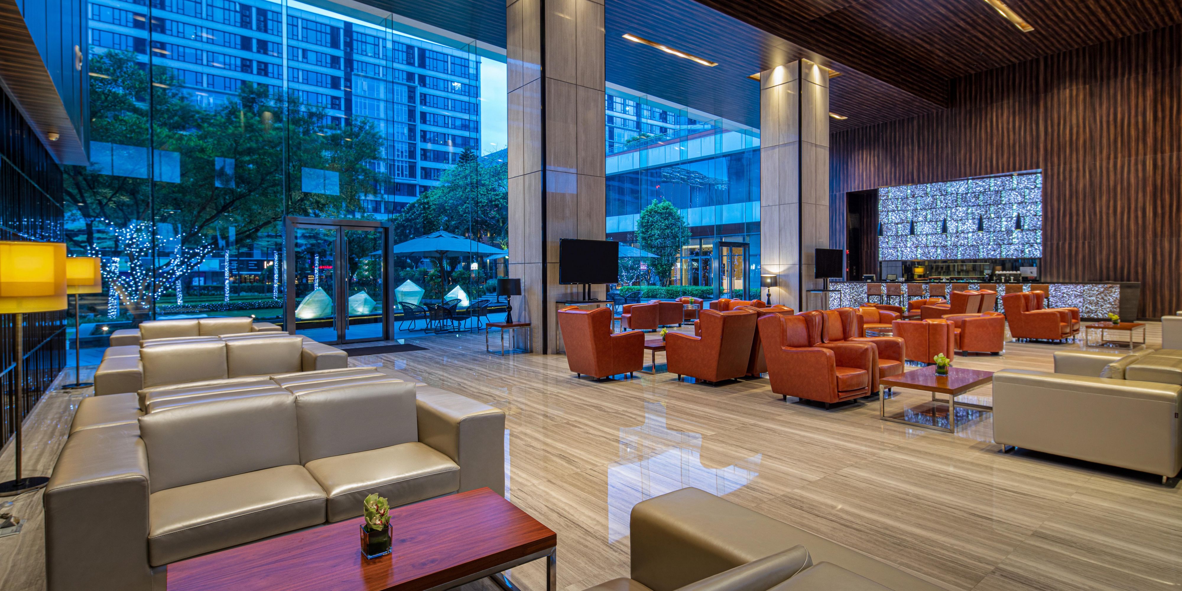 温馨华美的大堂酒吧提供各种醇香咖啡、精选茗茶美酒与精致小点,是您商务洽谈与休闲小聚的明智之选。