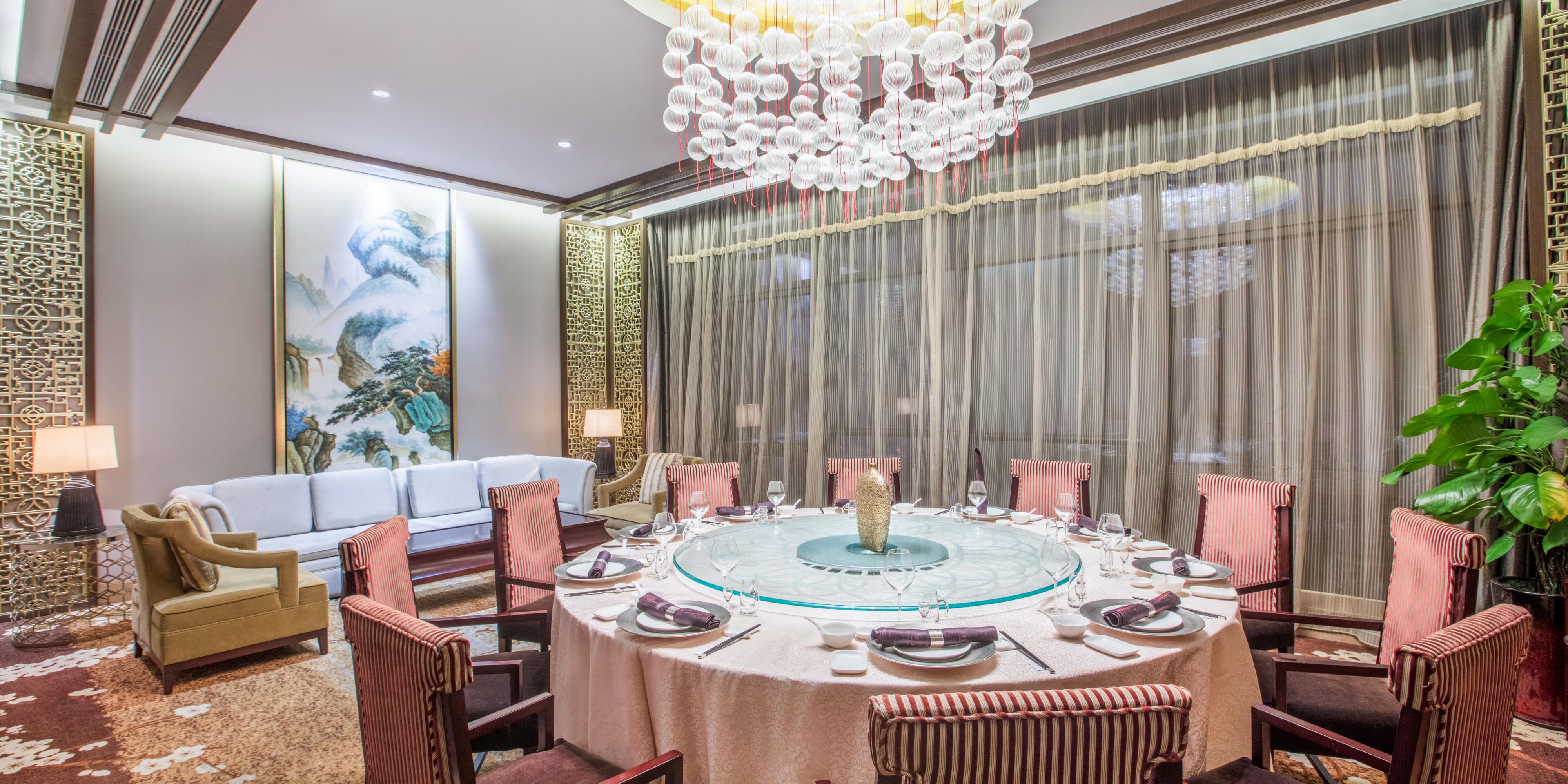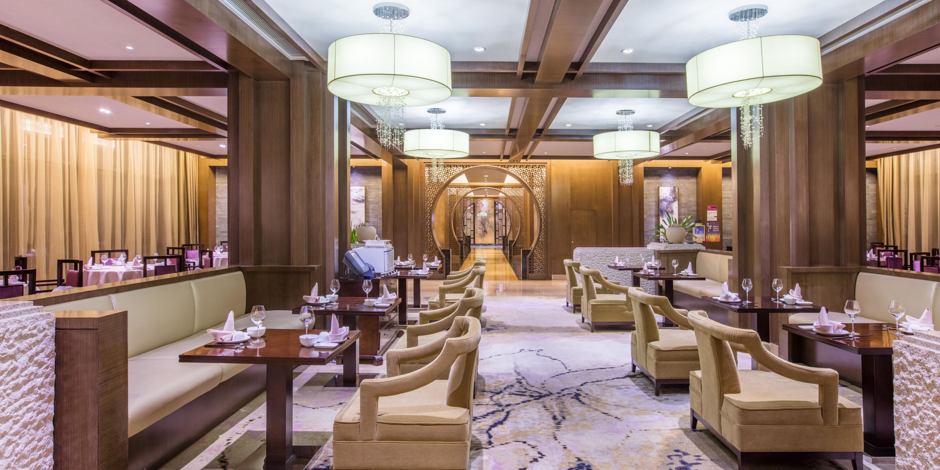 可容纳168人的玉屏轩中餐厅位于酒店一楼,环境清幽雅致,遵循着东方传统的徽文化浓厚色彩与西方现代艺术特色相结合,为宾客提供传统中式美馔及本地特色,同时也是外出旅行、家庭休闲的理想之选。