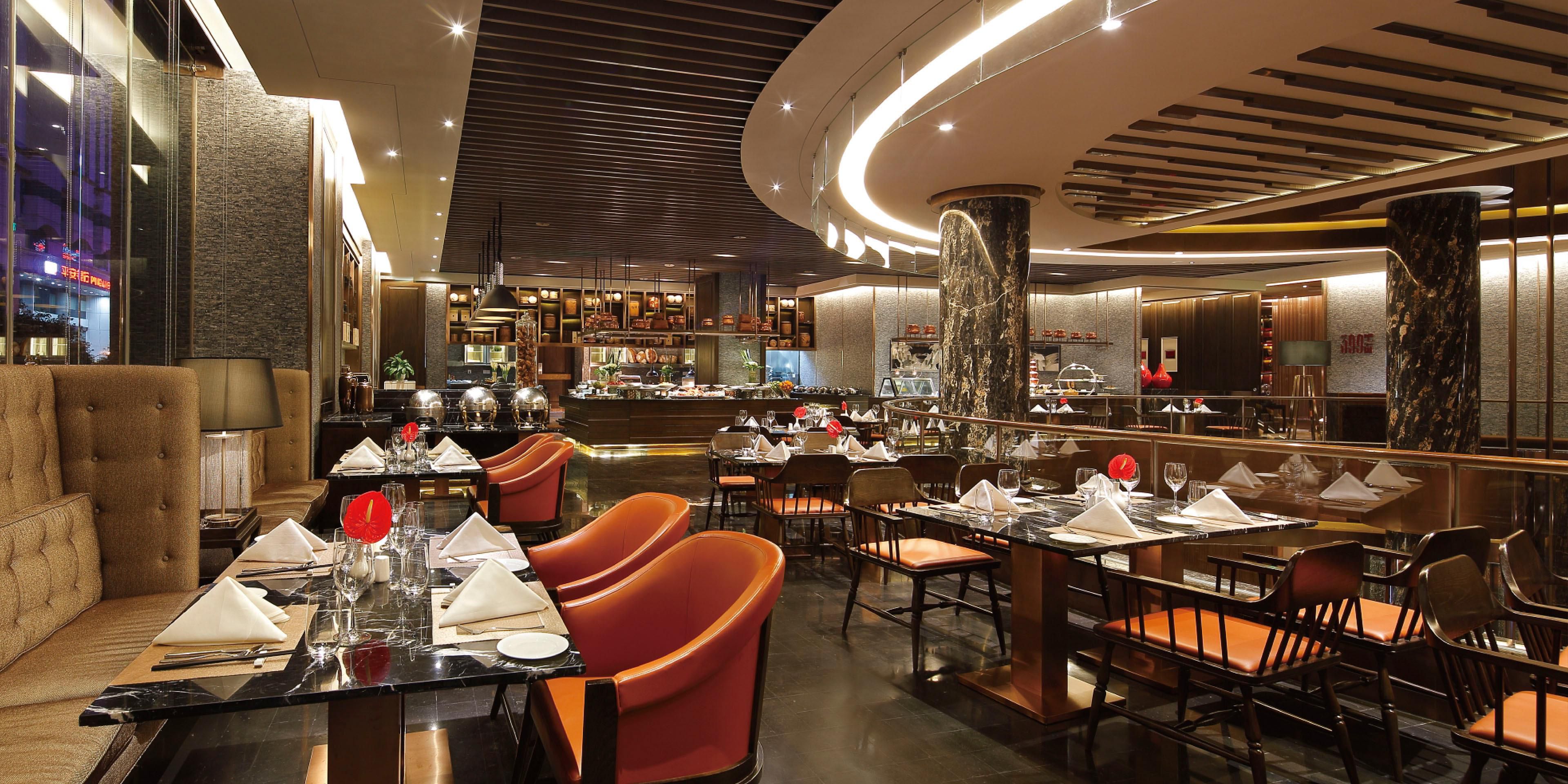 位于酒店二楼中庭的咖啡厅共有126个餐位及1个包房。提供国际自助早餐、午餐、晚餐及零点服务。