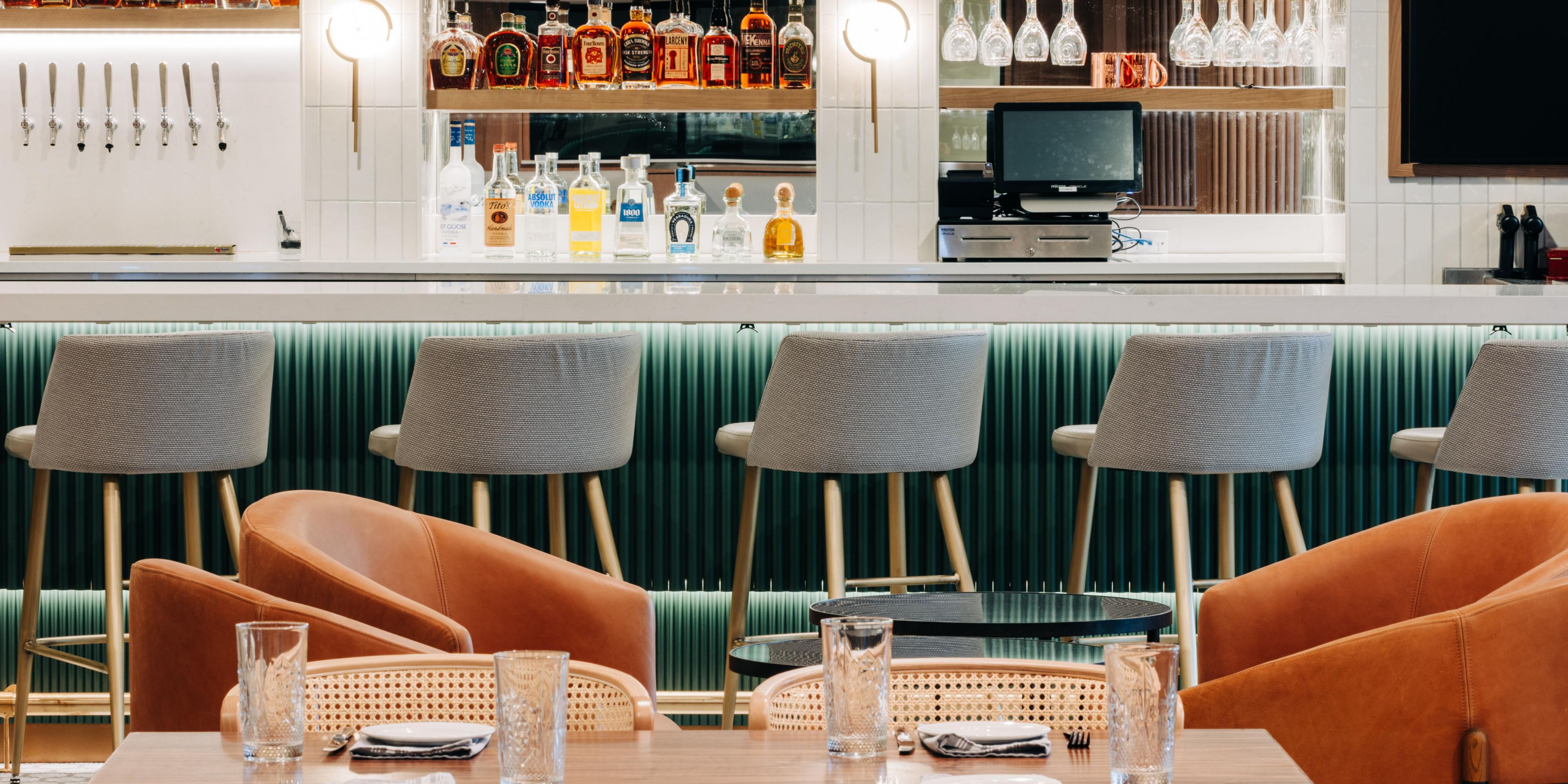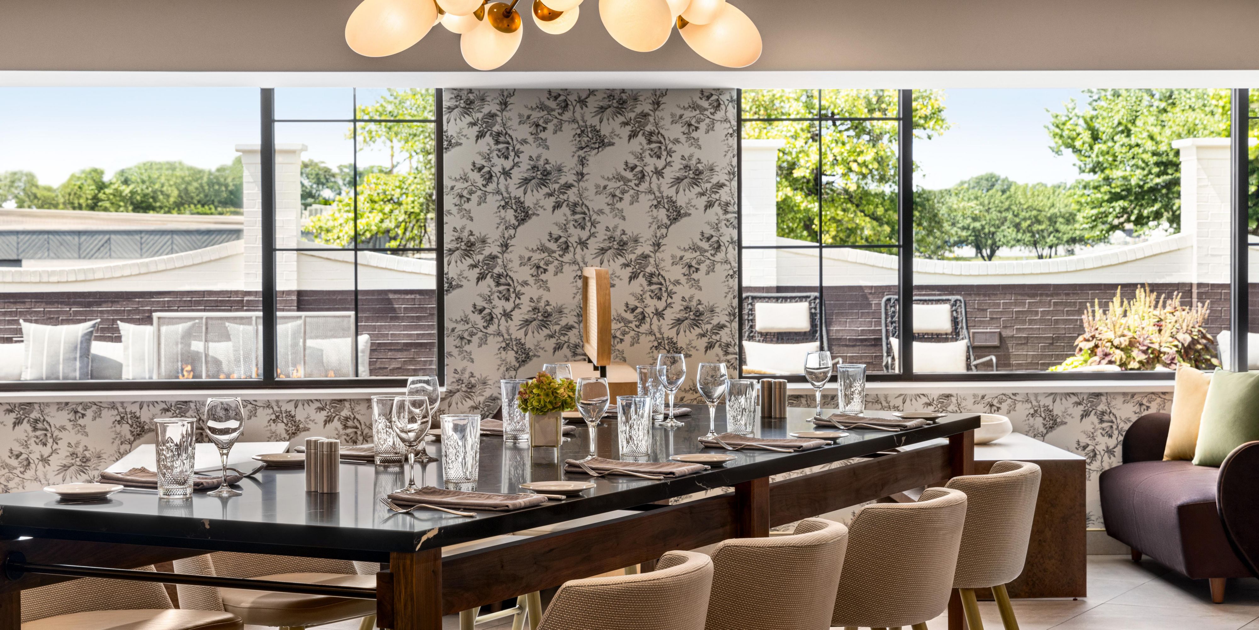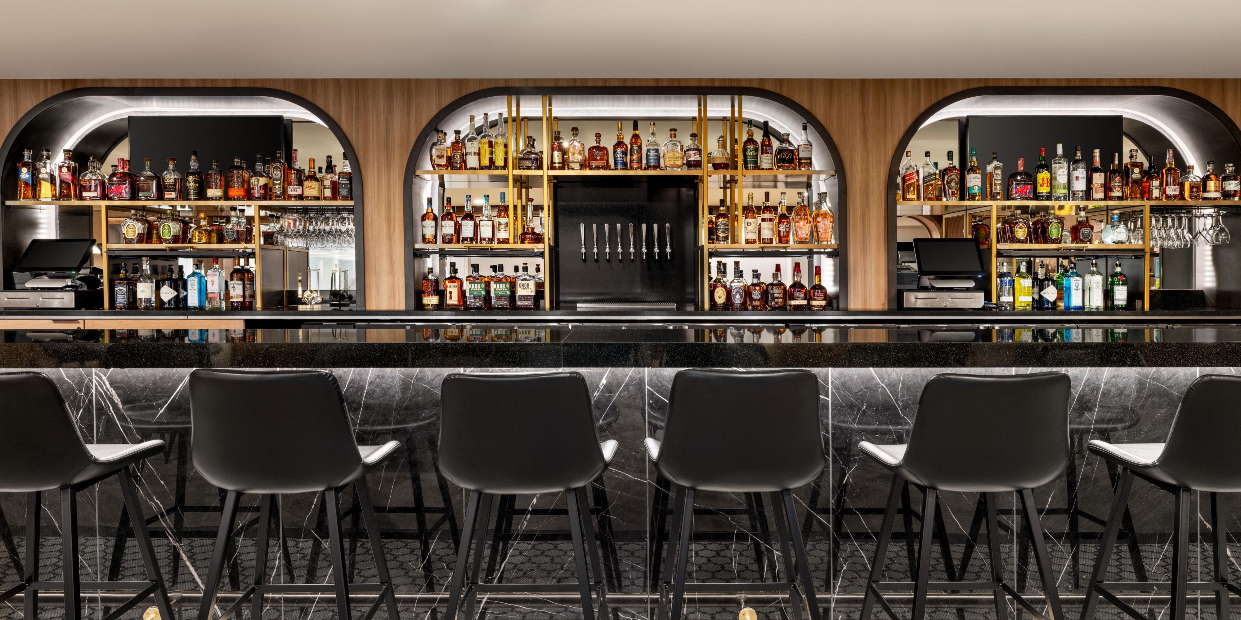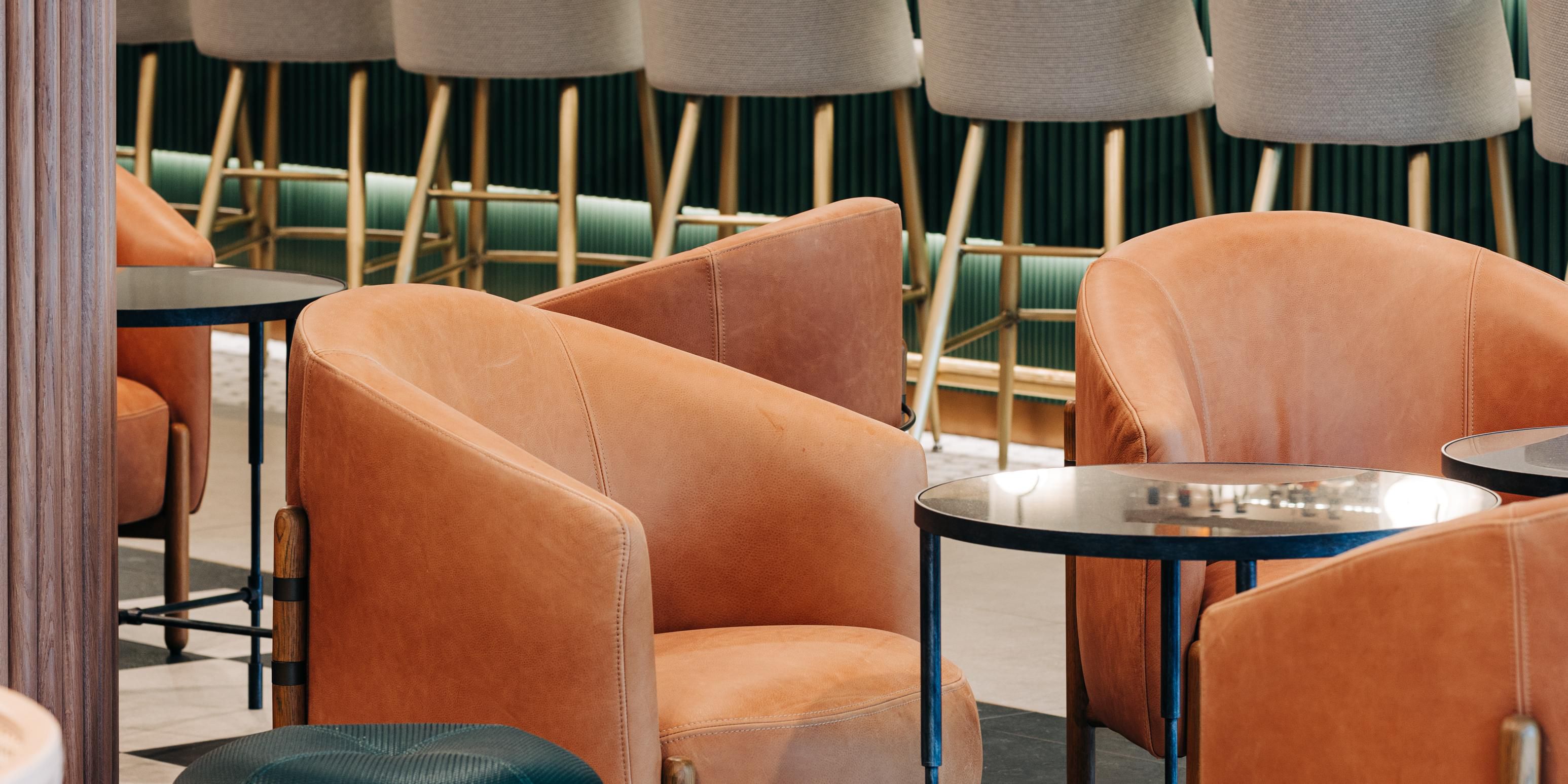 The Lobby Bar offers a modern, relaxed setting with a bourbon forward menu that's ideal for unwinding or connecting with friends and colleagues for coffee to cocktails. Enjoy craft cocktails with quick breakfast snacks and a food menu that is served later in the day. In the morning hours, the Lobby Bar transforms into a Coffer Bar, completed with Starbucks coffees.
