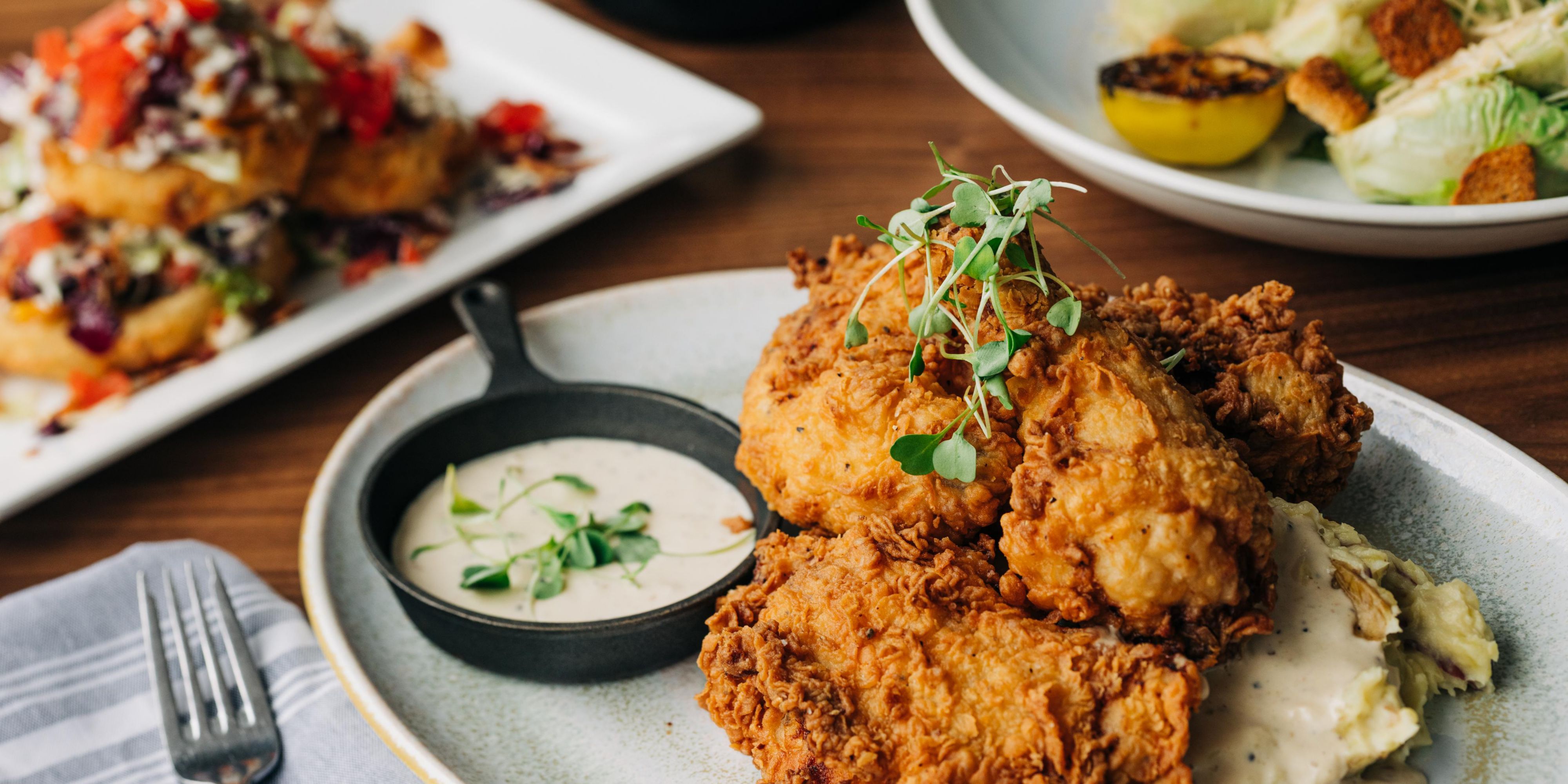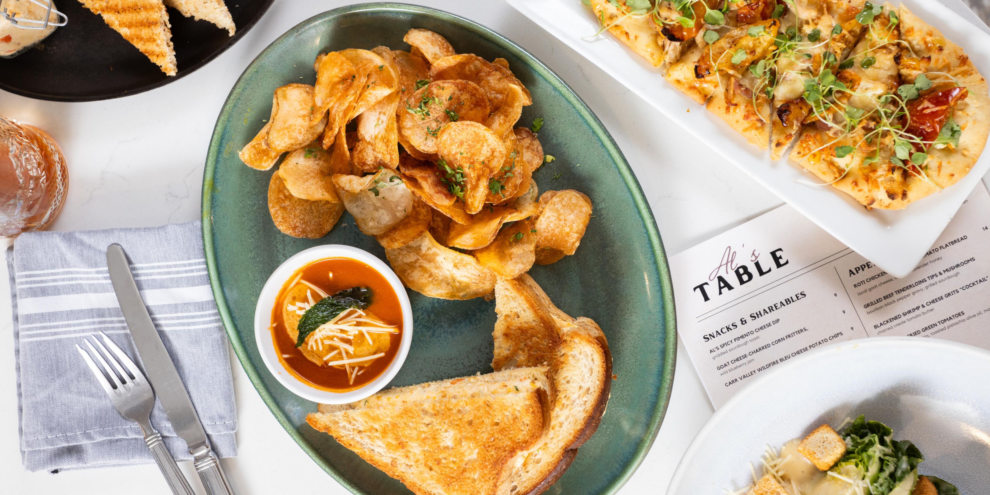 Al's Table revives the warmth of family gatherings with a menu inspired by local flavors and Schneider family favorites. Enjoy Kentucky classics like country fried green tomatoes and fried chicken alongside innovative dishes like wildfire bleu cheese grits and rye whiskey sweet corn pudding. Join us for a taste of Louisville's culinary spirit.