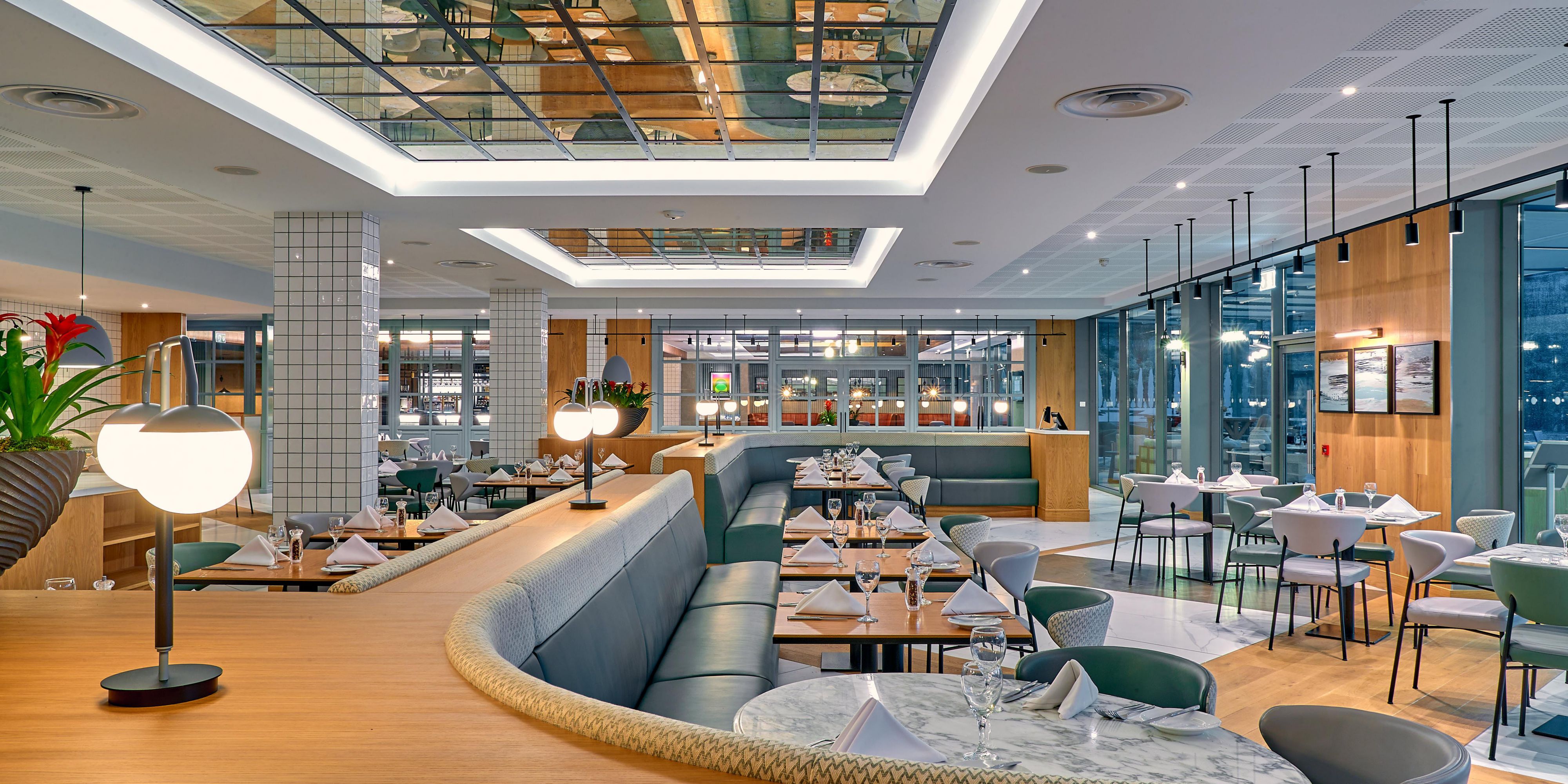 Fully refurbished Glaze Restaurant, a stylish AA Rosette awarded Restaurant offering contemporary, eclectic cuisine in a great atmosphere. Glaze operates daily, serving breakfast, lunch, dinner, and also offers a children's menu and room service round the clock. The seasonal menus feature freshly cooked local produce and international dishes from around the world. Offering both Modern British and authentic Indian Cuisine.