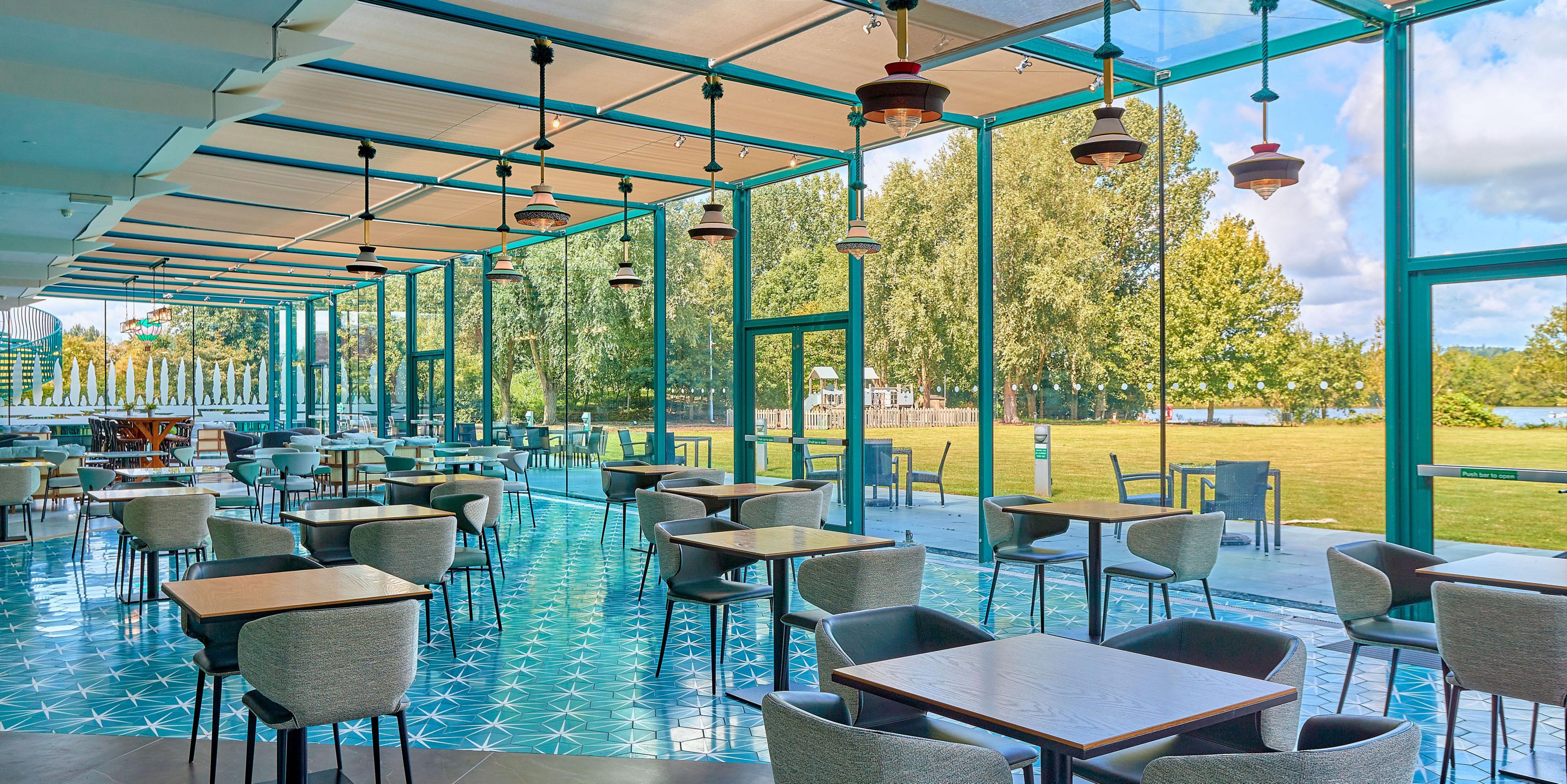Aqua Bar & Conservatory is a stylish & contemporary venue, open daily from 10AM. It is the place to meet friends & enjoy light bites, coffee & cocktails. The main bar area is cozy with enormous leather sofas and sweeping wooden topped bar, serving every drink you could desire. Our superb bar team are always available to mix a cocktail or two - the perfect way to get the evening started. Leading through the bar towards the lawns you will find the Conservatory with lake views and afternoon teas.