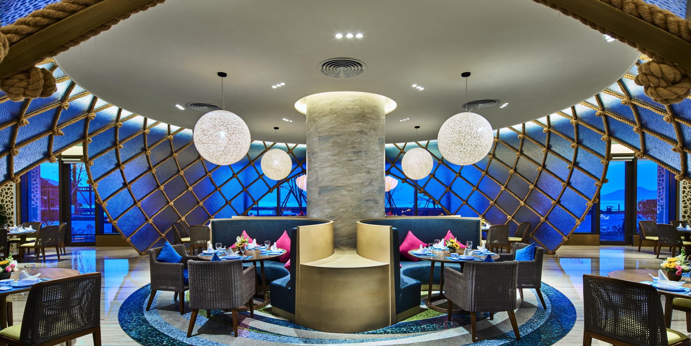 餐厅甄选新鲜海鲜、安格斯牛肉、辅以进口日式刺身等,主理特色海鲜火锅。充满海洋元素的海景主餐区、安静的私人包房,以及开阔的室外海景平台,为您的用餐提供多样空间选择。临海观景,犒赏味蕾,“拾渔”定会令您流连忘返。