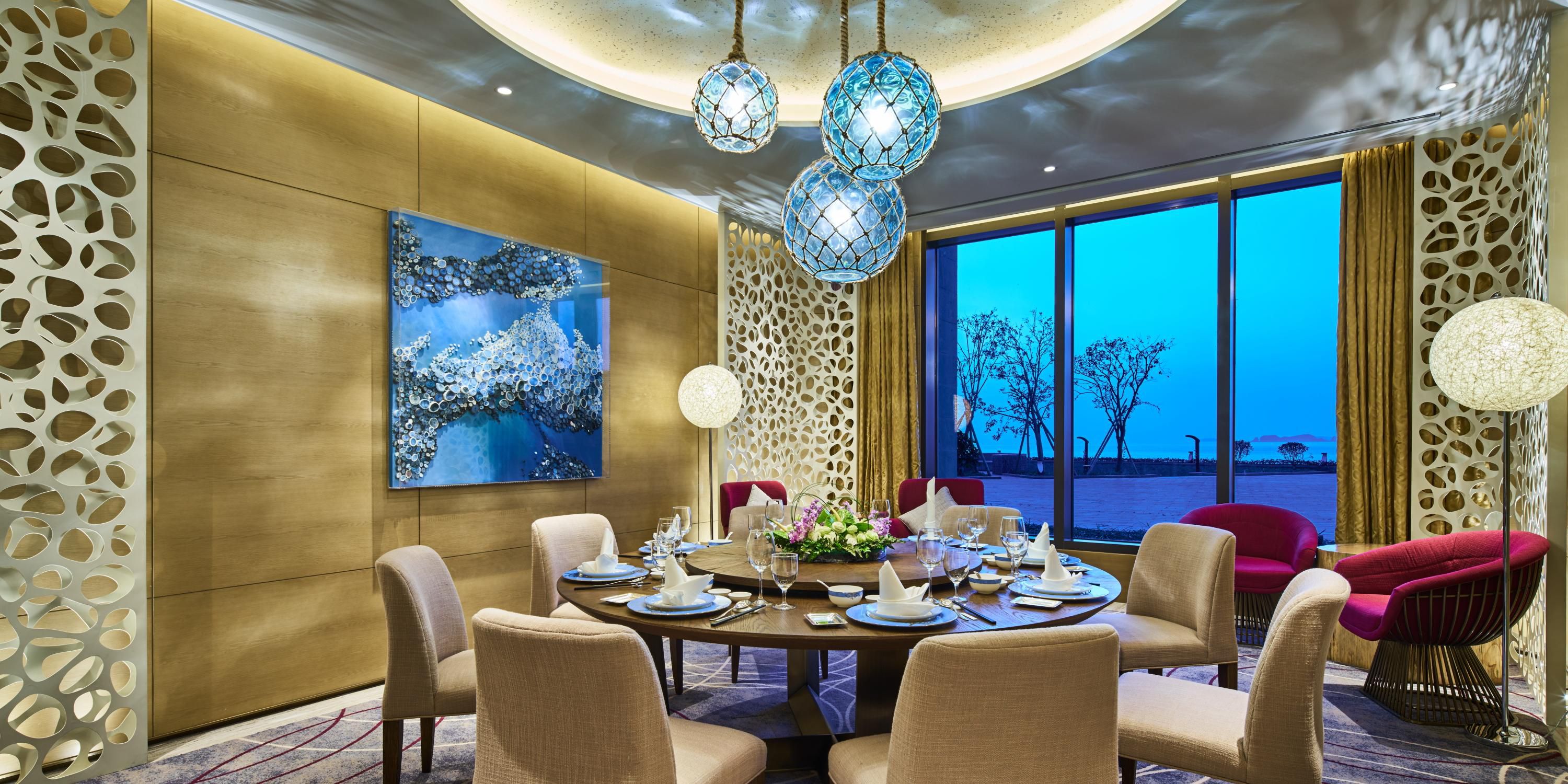 在海角壹号中餐厅,您不仅可以享用到种类繁多的石浦当地特色海鲜,还可尽览波澜海景。餐厅开放式鲜活海产区,令人仿佛置身于海洋世界,让用餐时光充满无限乐趣。此外,5间雅致的私人包房,也是您和家人朋友欢聚的一方静地。