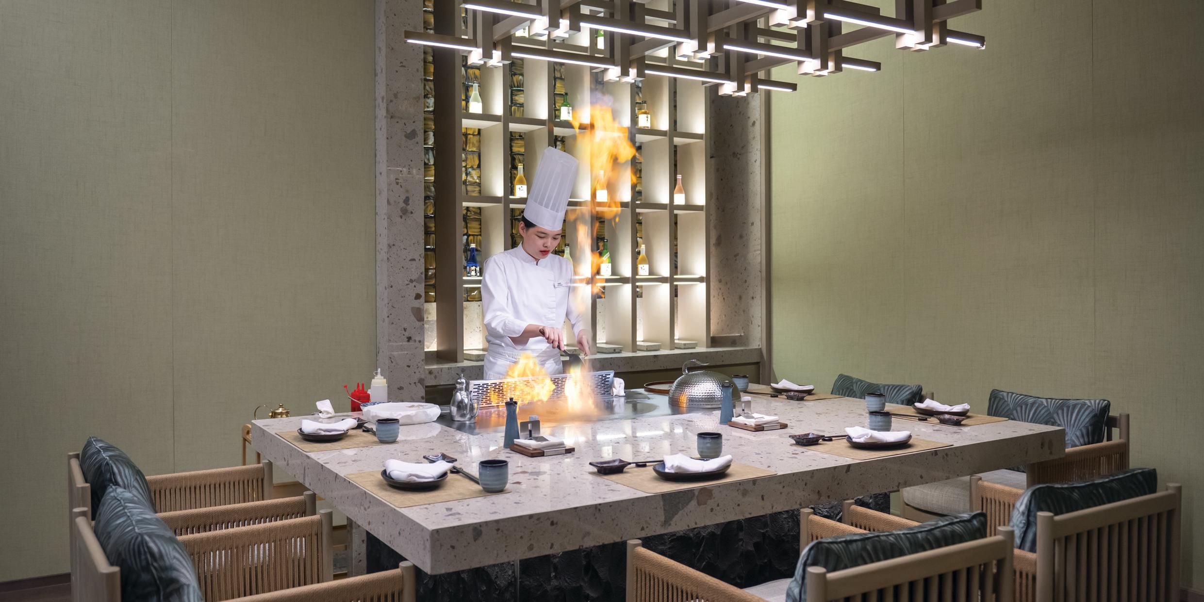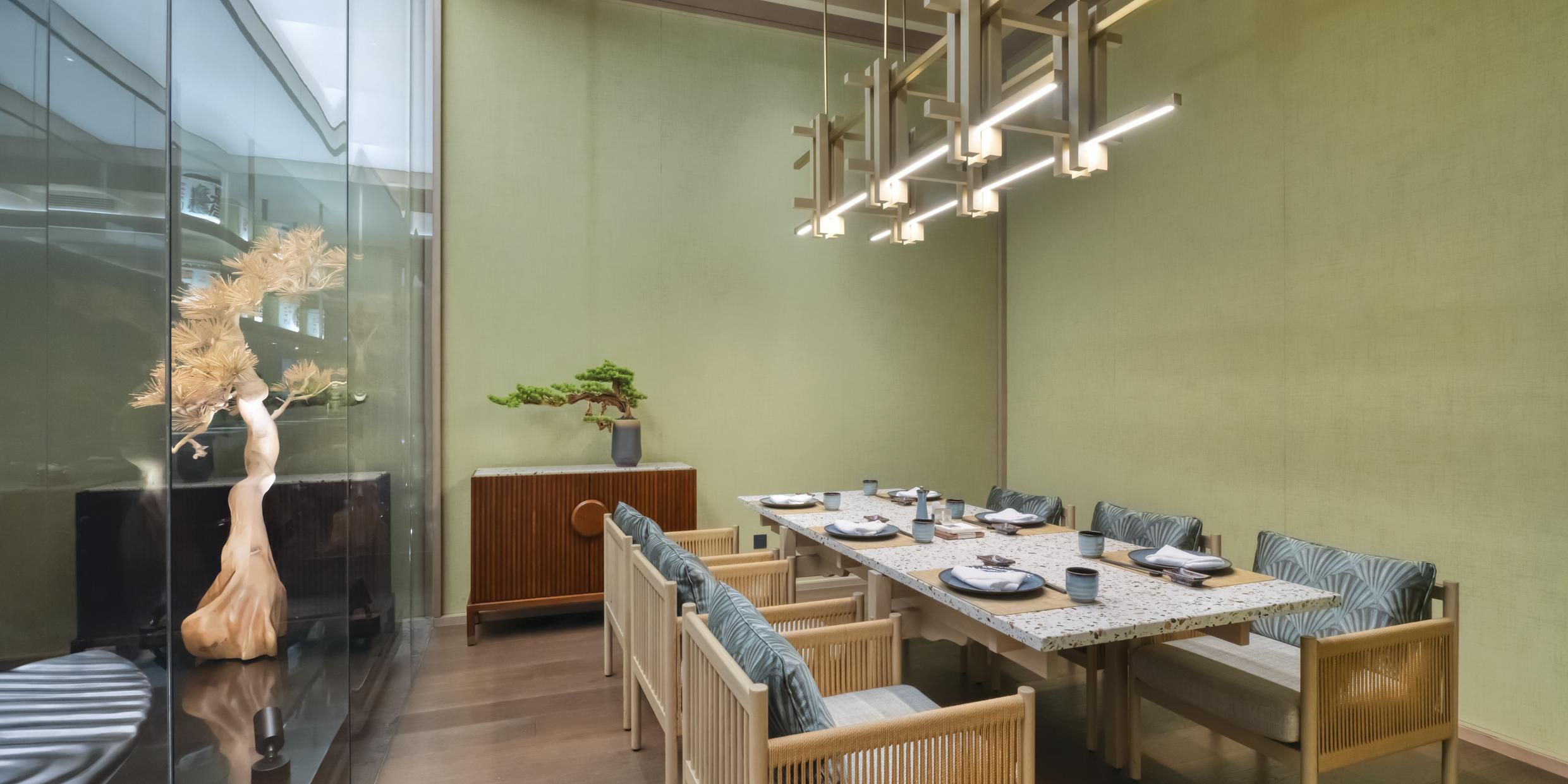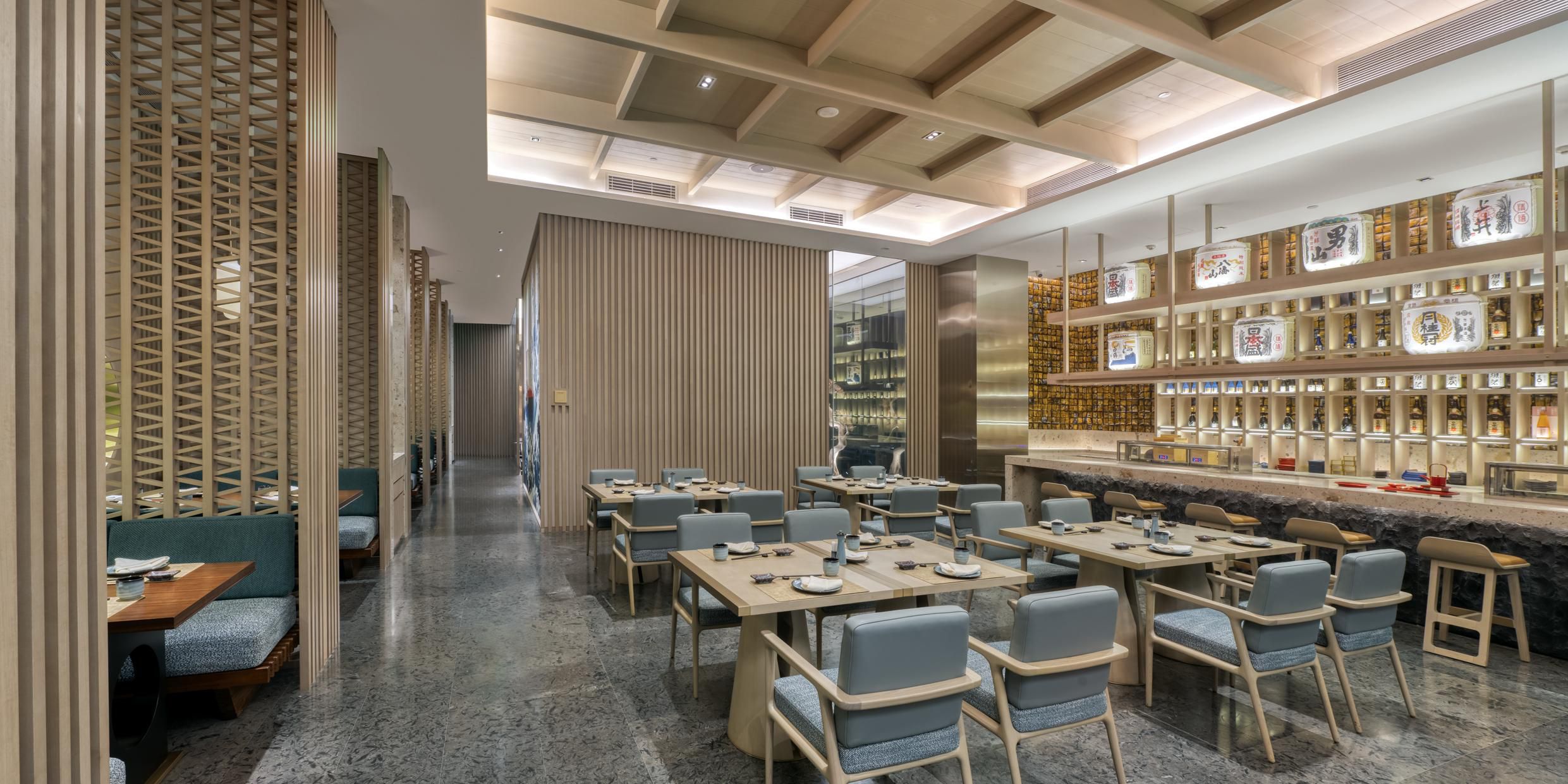 以海神文化为设计理念,充满了神秘的与传奇的东方色彩。“虞”日本料理餐厅具有型格的空间设计,富有创意的日式菜单,为您呈现日式料理风尚新味道。结束一天繁忙的工作,来这里享受舒适惬意的轻松氛围。