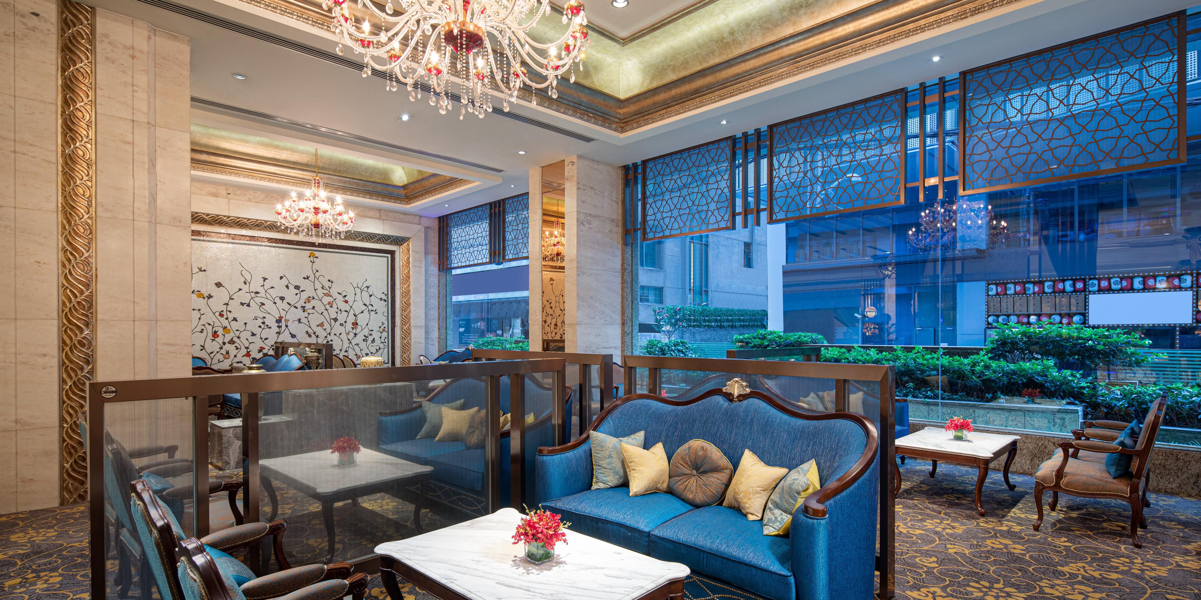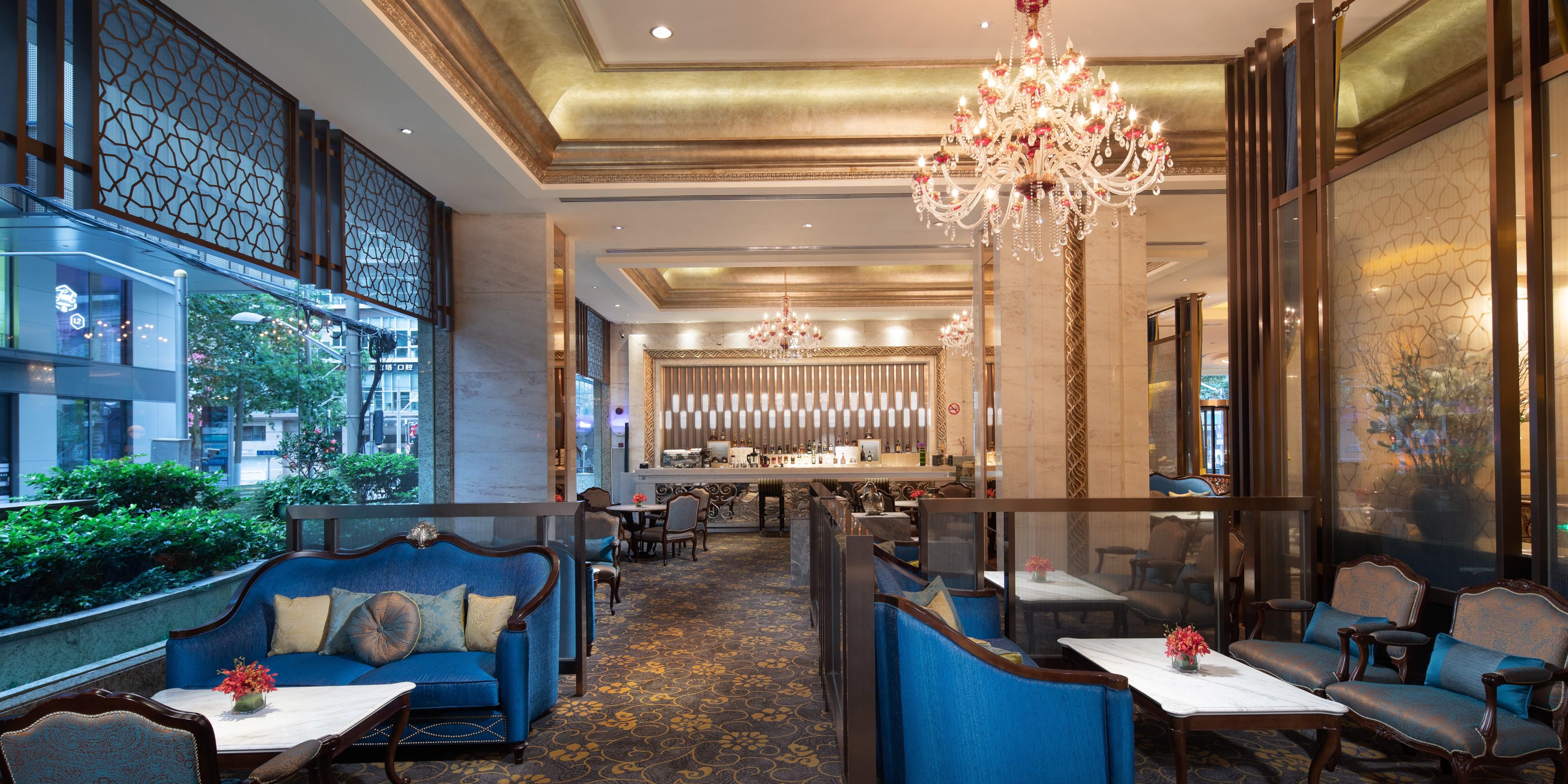 欧式古典设计风格的香榭吧坐落于酒店大堂。是您和客户同事洽谈、和朋友一起享受下午茶、或者喝杯餐前鸡尾酒的理想场所。在喧嚣的市中心能寻得如此静逸雅致的歇脚地,定能让您高兴而来满意而归。我们提供各类饮料、三明治、蛋糕和冰淇淋供您选择。