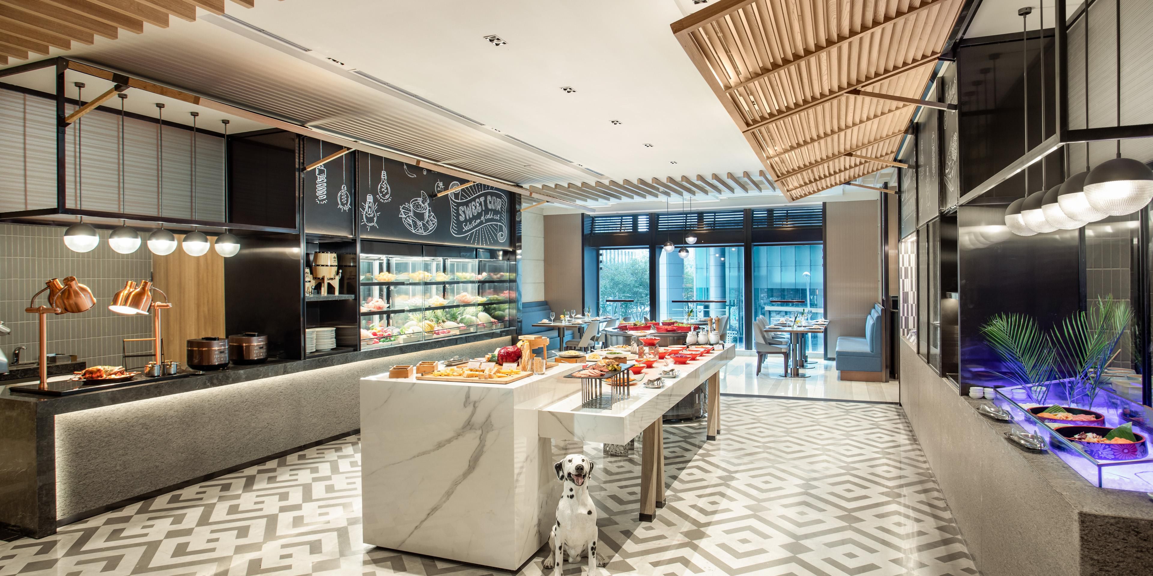每日提供早餐、午餐自助及零点服务,汇聚了西式、东南亚风格及本地特色等多元化国际餐饮内涵,厨师团队现场烹制品类繁多的健康美食;明亮的开放式厨房,让宾客享受身临其境的视觉美食体验,感受品质服务带来的欢愉。