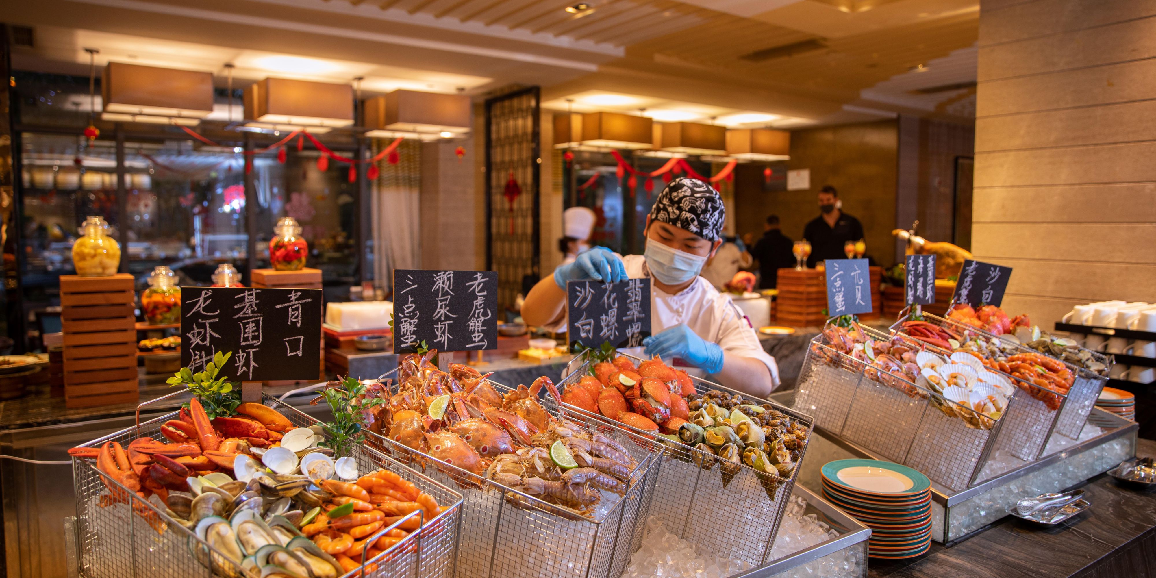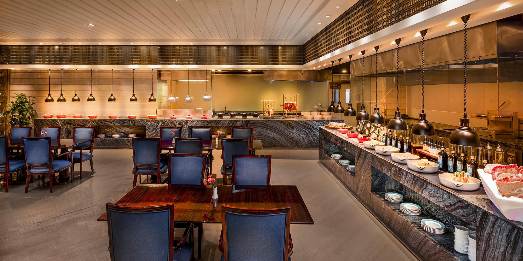 全天候提供零点菜品和自助早、午、晚餐,带您领略亚洲美食和各国特色的佳肴,可同时容纳154人用餐。独具特色的甜品档口,供应新鲜出炉的面包、自制巧克力、美味曲奇和精致甜点。餐厅注重新鲜健康的食材选取,中西文化的融合,塑造了西餐厅的浓厚文化氛围,开放式的厨房与用餐区域完美相邻,可以随意欣赏厨师的烹饪过程,为您的味蕾带来不一样的饕餮之旅。 营运时间 自助早餐 06:30 - 10:30 自助晚餐 18:00 - 21:30