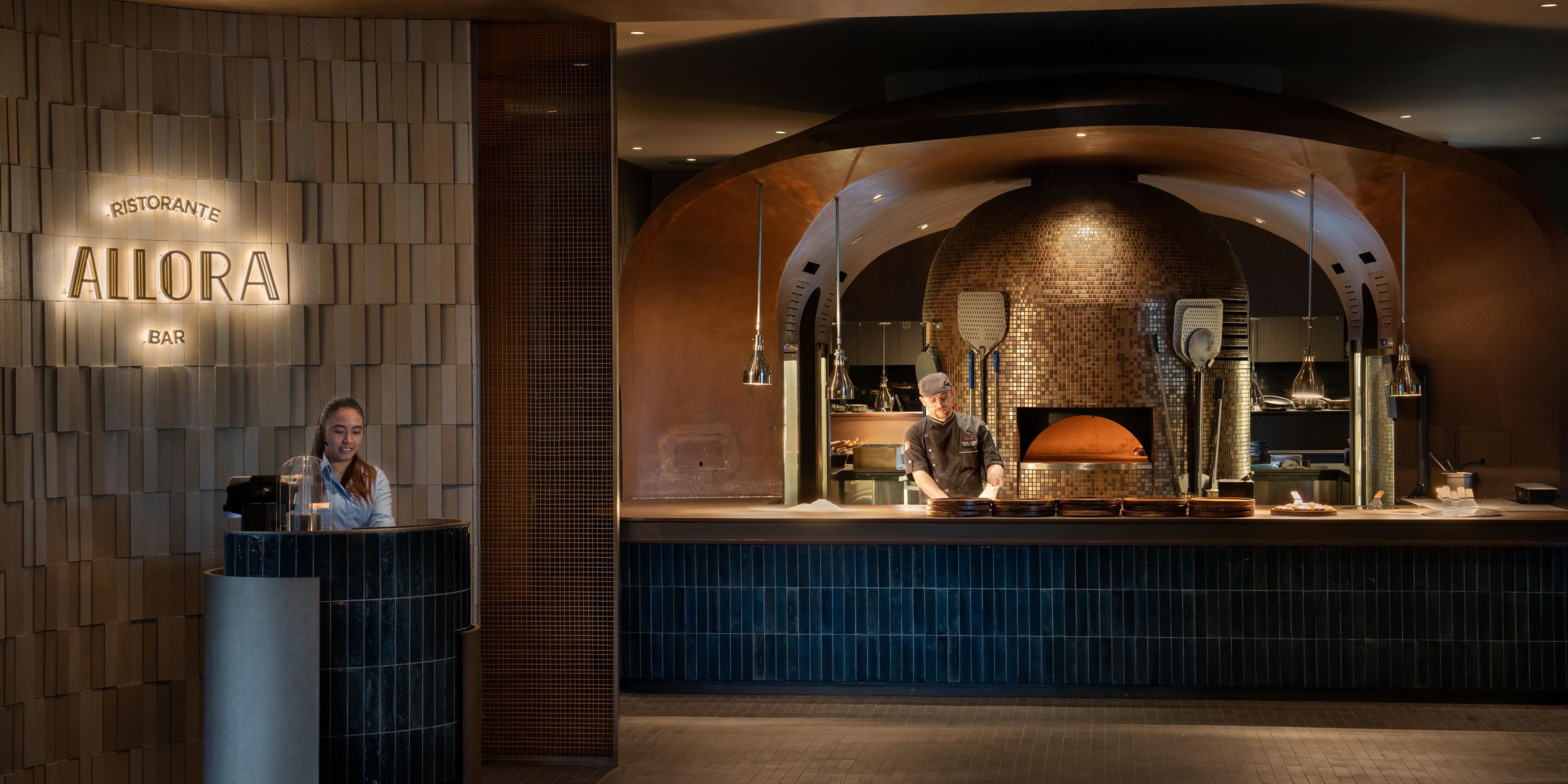 Allora Italian Ristorante and Bar features a chic dining room, a vibrant lobby lounge and bar, and a charming pet-friendly alfresco terrace, drawing inspiration from the distinctive characteristics of both Northern and Southern Italy.