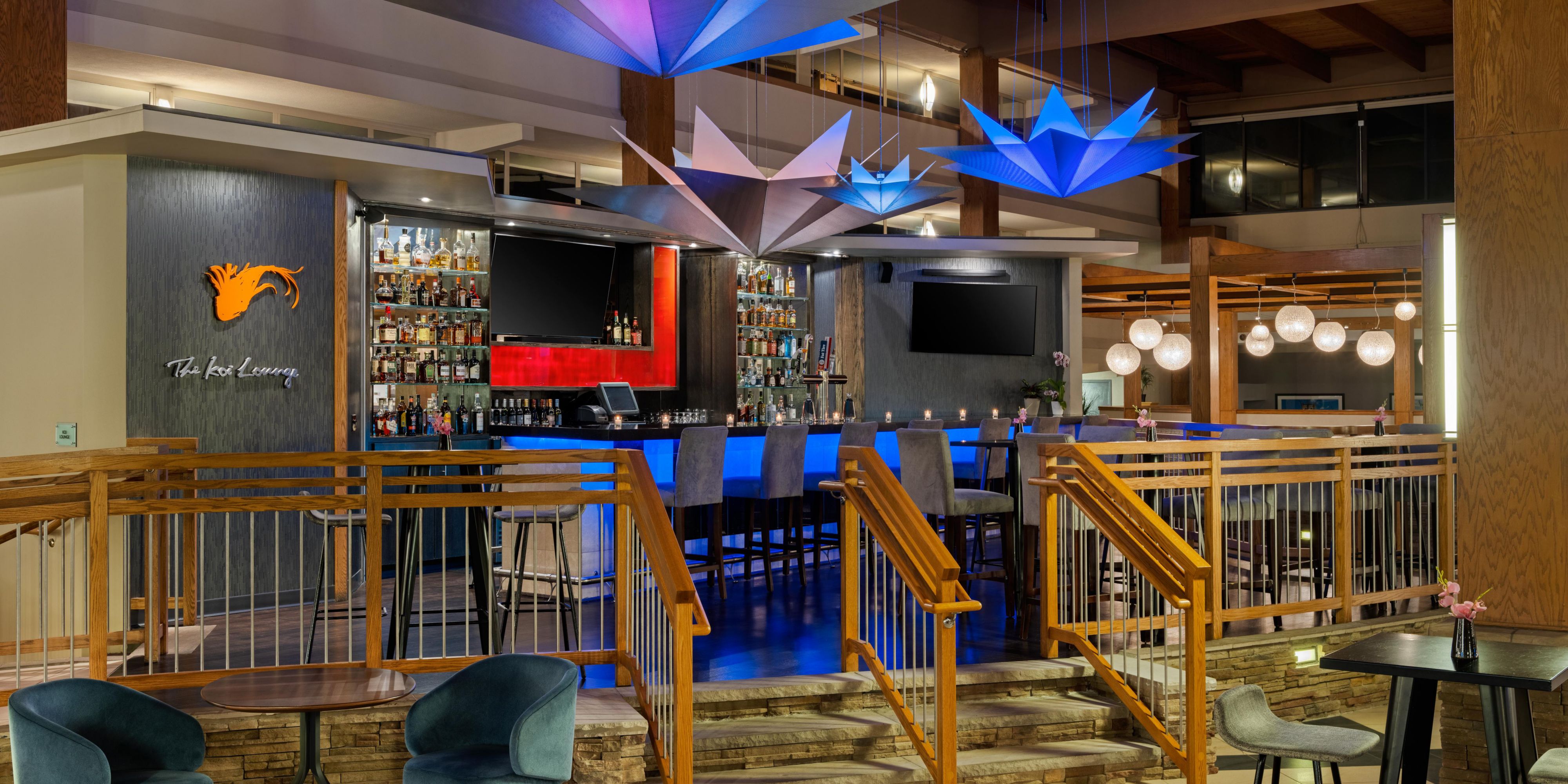 Unwind at koi Lounge, where handcrafted cocktails, premium beer, and fine wine meet a relaxing atmosphere. Overlooking the atrium and tranquil koi pond, it's the perfect spot to sip, socialize, and savor light bites in an inviting setting.