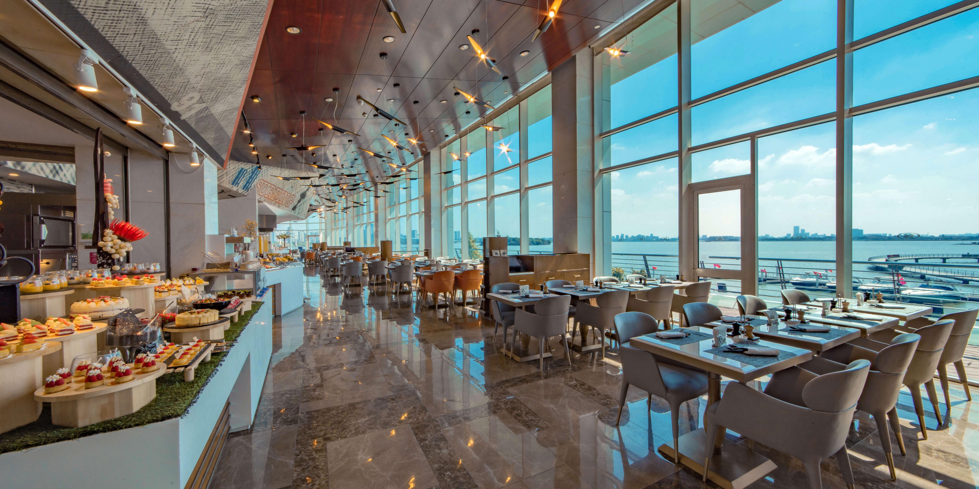 一边享用圣汐餐厅 6 间开放式厨房为您奉上的新鲜美食,一边欣赏令人惊叹的湖景;在鲍鱼王子餐厅的湖景包间里,品尝粤式海鲜美味;或在臻炉逸用更具现代美学的出品形式,感受海鲜姿造带来的赏景式用餐新体验。