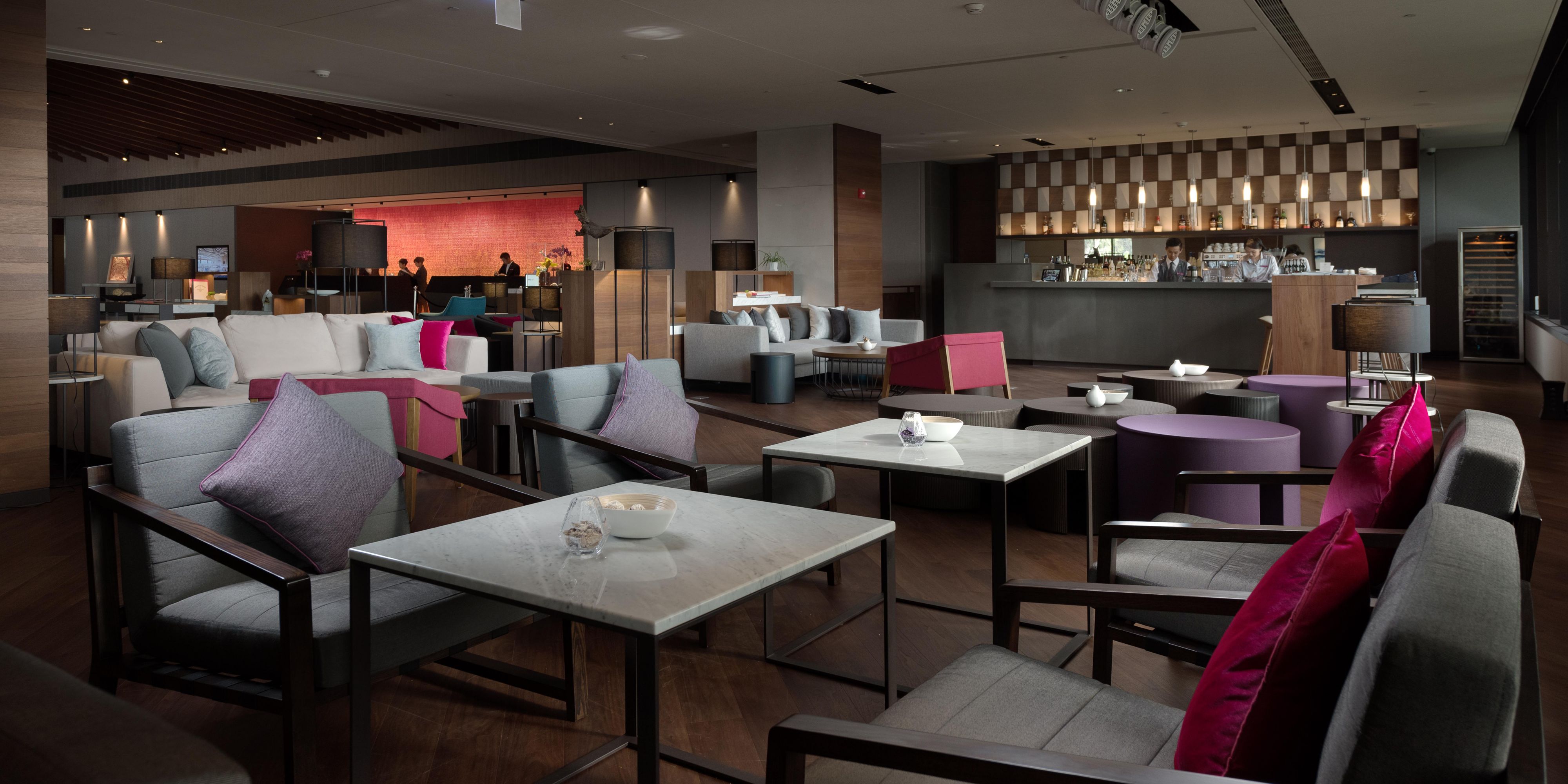 89吧位于酒店大堂,提供英式下午茶结合单品甜点、新鲜面包、特色调酒与多样饮品,是一处让人悠闲放松的静谧空间。大堂的采光天井,随着日夜变幻万种风貌,享受惬意就是这么简单。