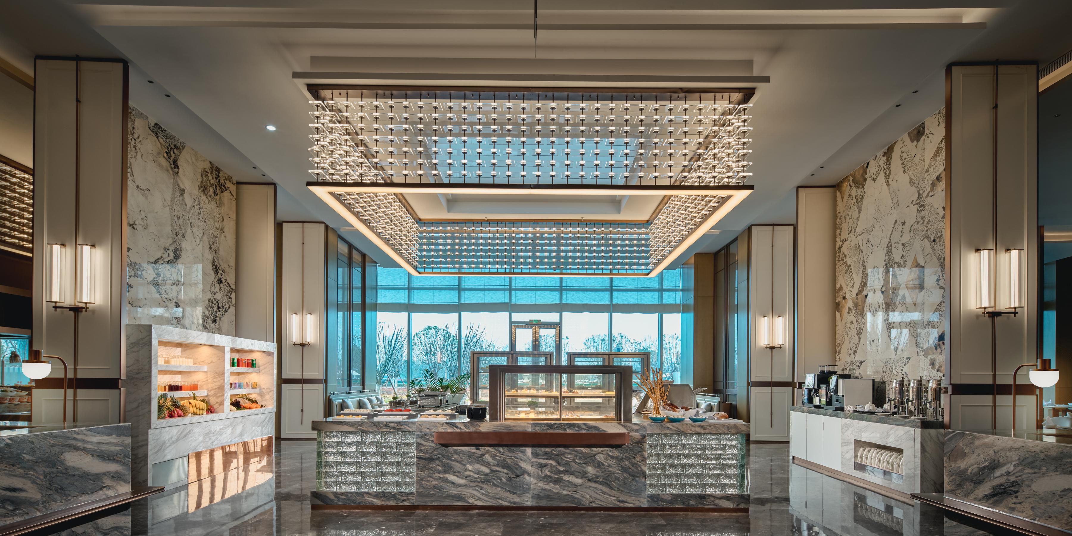 大堂酒廊空间通透静谧,全天供应咖啡、茶饮及简餐,是宾客小憩或会客洽谈的理想之地。