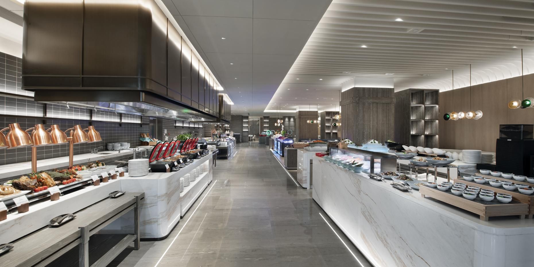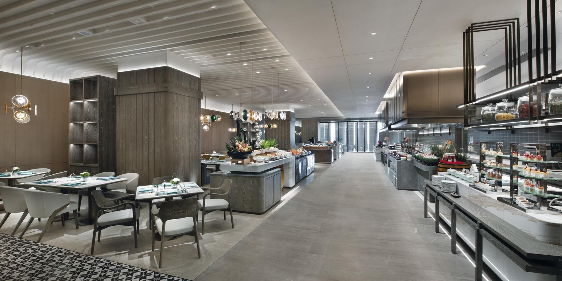 品臻全日餐厅为客人提供早餐及自助餐服务,中、西式多种的自助品种,另外还有更多热菜可即点即做。在提供多样选择的同时,美味可口的味道也是很多客人对酒店的早餐赞不绝口的原因之一。 针对商务人士行程节奏快,注重效率的特质,酒店除了提供打包服务外,还推出了“早餐同步退房”的服务,客人可以在享用美味早餐的同时请酒店服务员同步办理 退房手续,免去了排队等候退房的时间,使您的旅程更轻松更高效。
