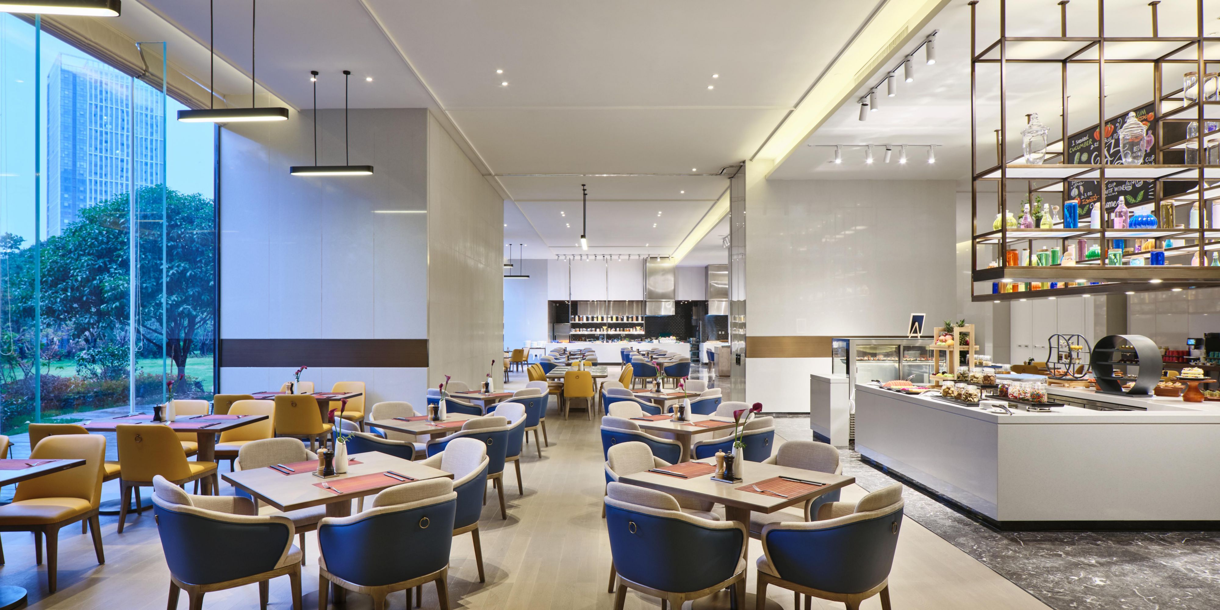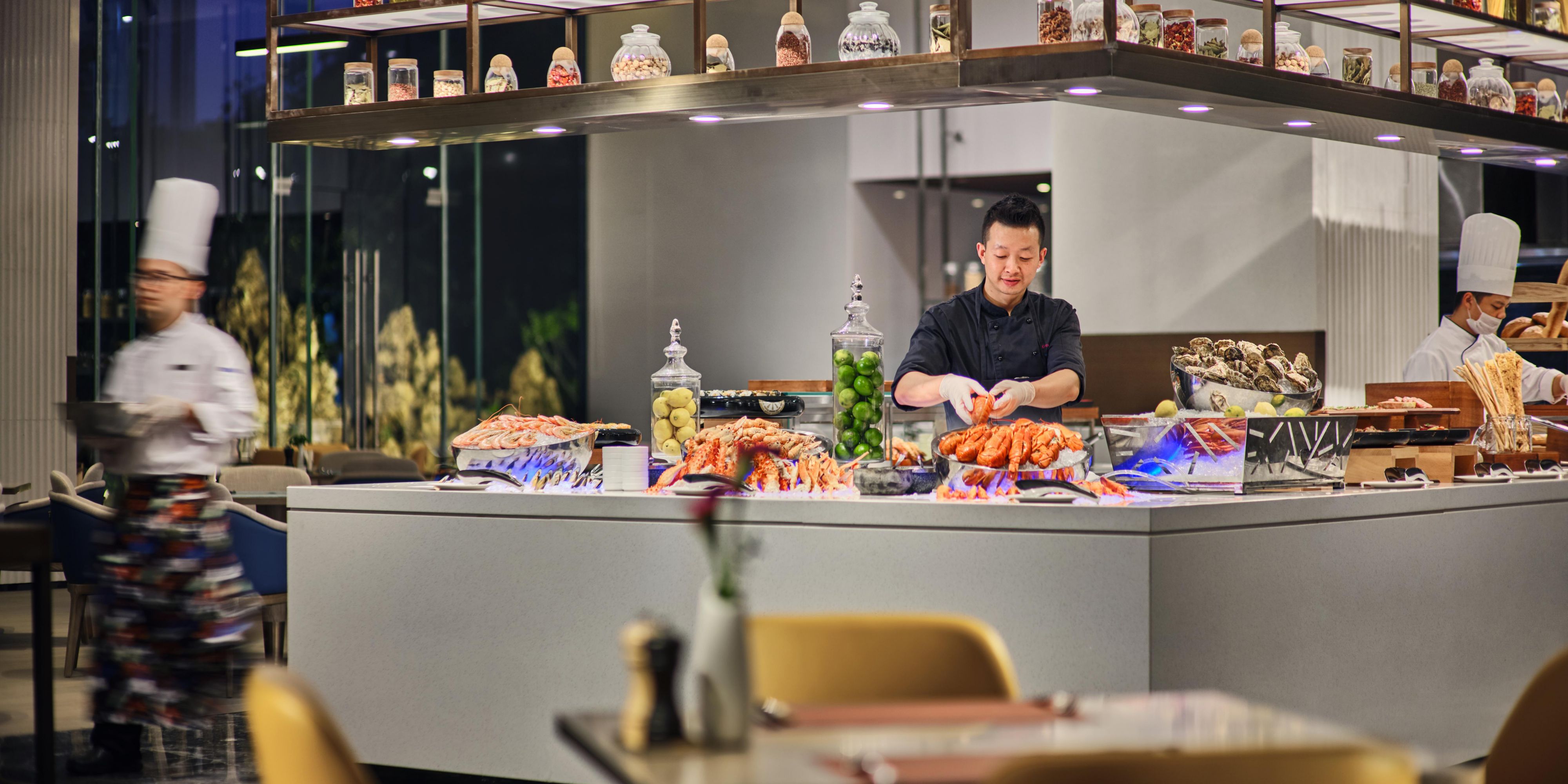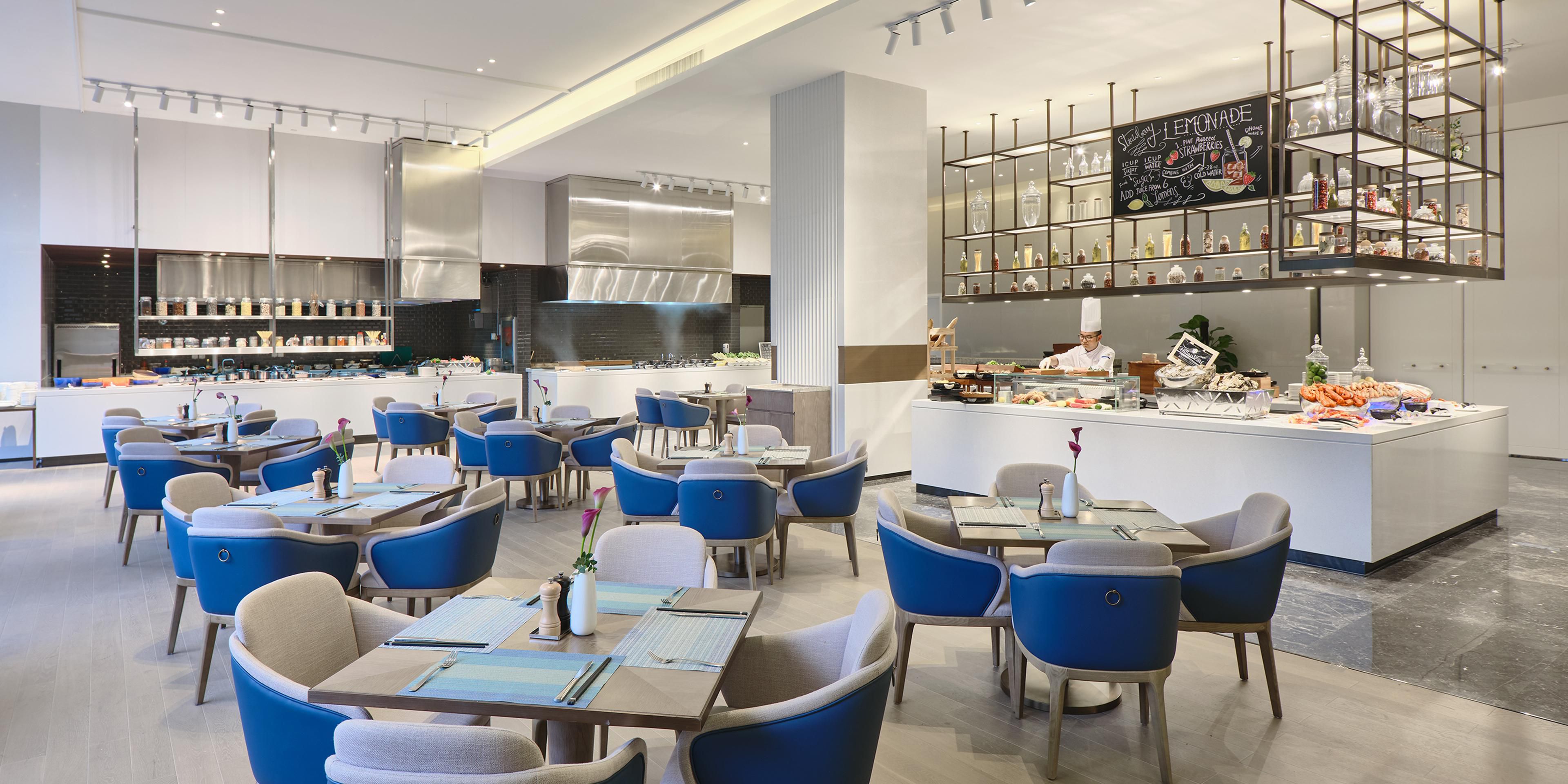 味彩全日制餐厅提供品种丰富的自助早餐和餐晚,以及零点服务。健康的沙拉吧、海鲜、精致的甜品、无酒精鸡尾酒和生啤等琳琅满目的美食佳酿任您大快朵颐。每周四至周日开自助晚餐,其他时段提供零点服务。