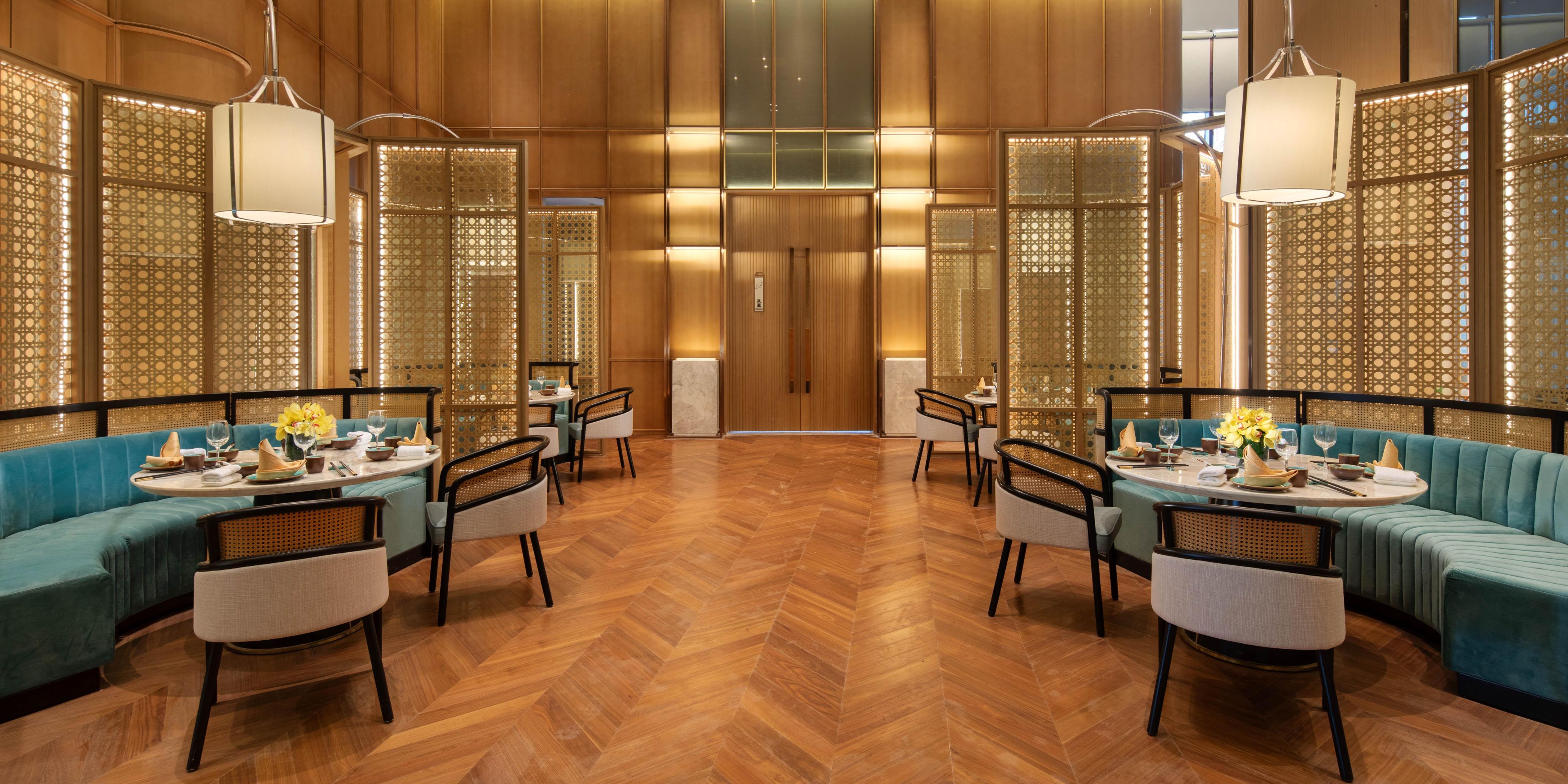 三间餐厅及酒廊,以海湾风光为幕以海湾风光为幕,向宾客呈现卓越的餐饮体验,空间设计融入舟山海洋与渔家生活的设计元素,向八方来客演绎海湾度假中外美食新概念。