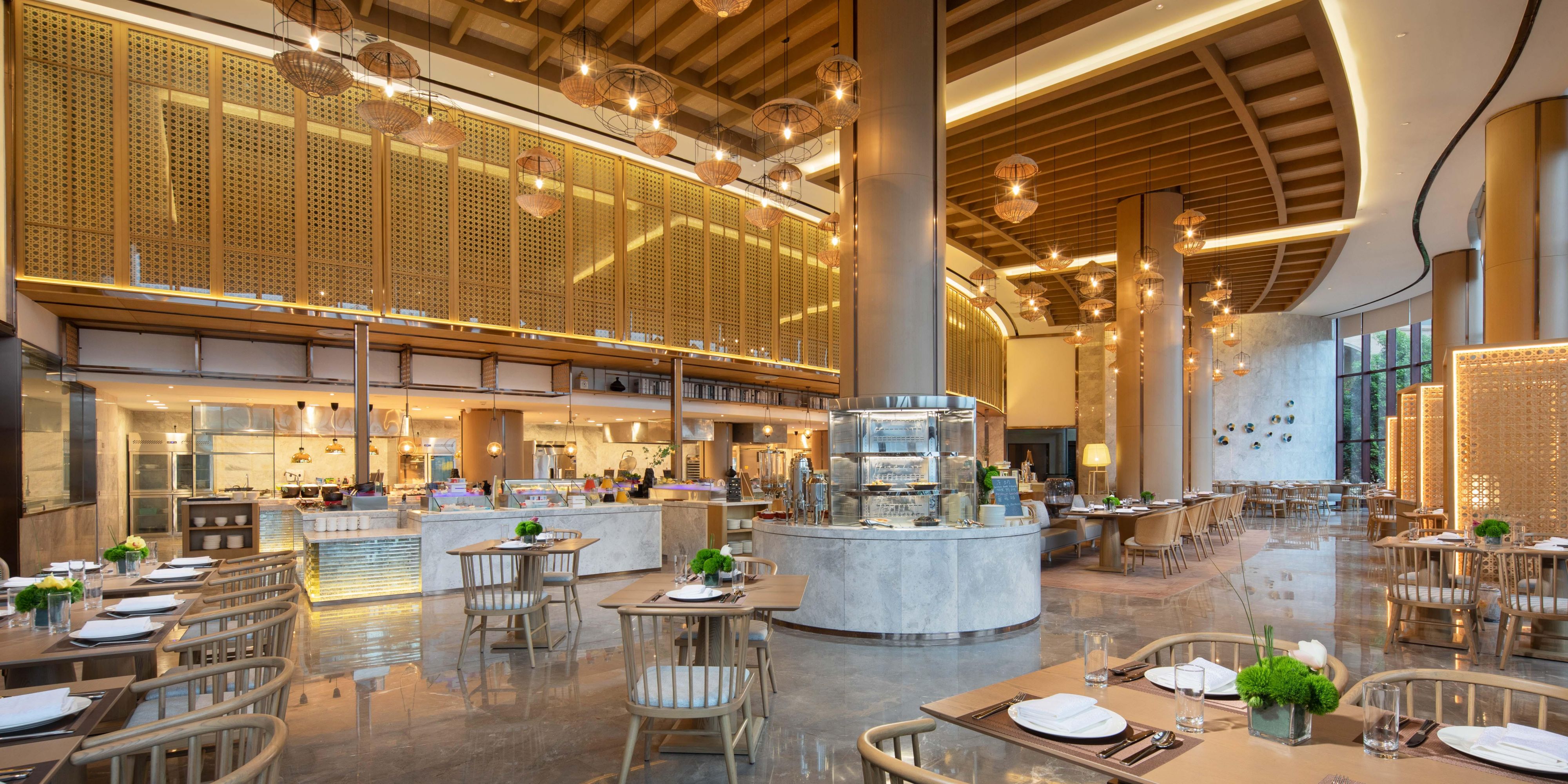 鲜全日制餐厅可览迷人海湾风光,开放式厨房荟萃环球美食和本土特色风味,提供丰盛的自助早餐、午餐及晚餐零点,美食和美景交相辉映,为食客带来味觉与视觉的双重享受。