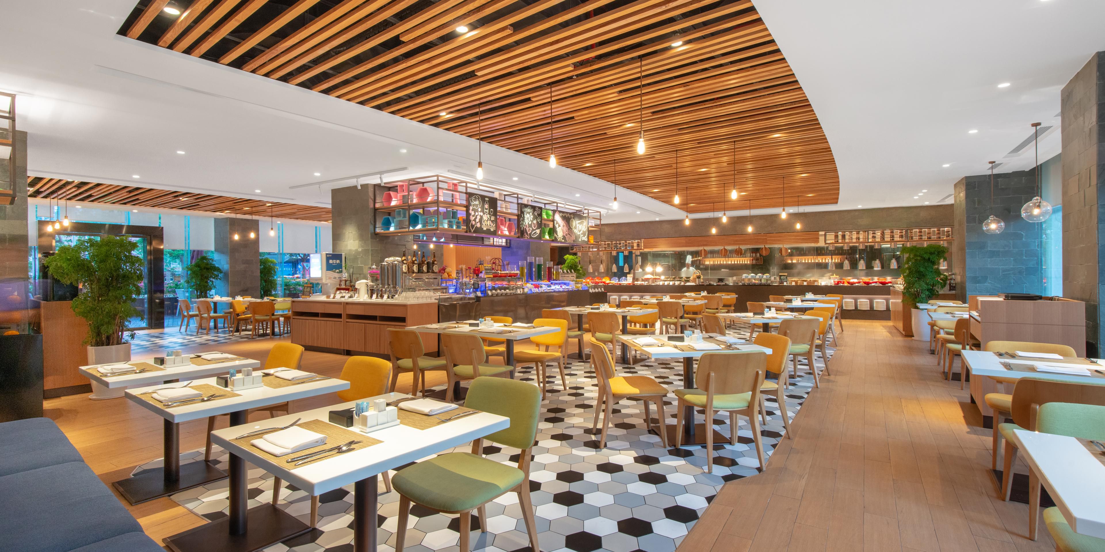 酒店一楼的语喋咖啡厅,提供品种丰富的自助早餐、午餐和晚餐,以及美味零点菜单。在此,您不但可品尝到酒店名厨烹饪的美食,还可与亲朋好友或商务伙伴欢聚、畅谈。