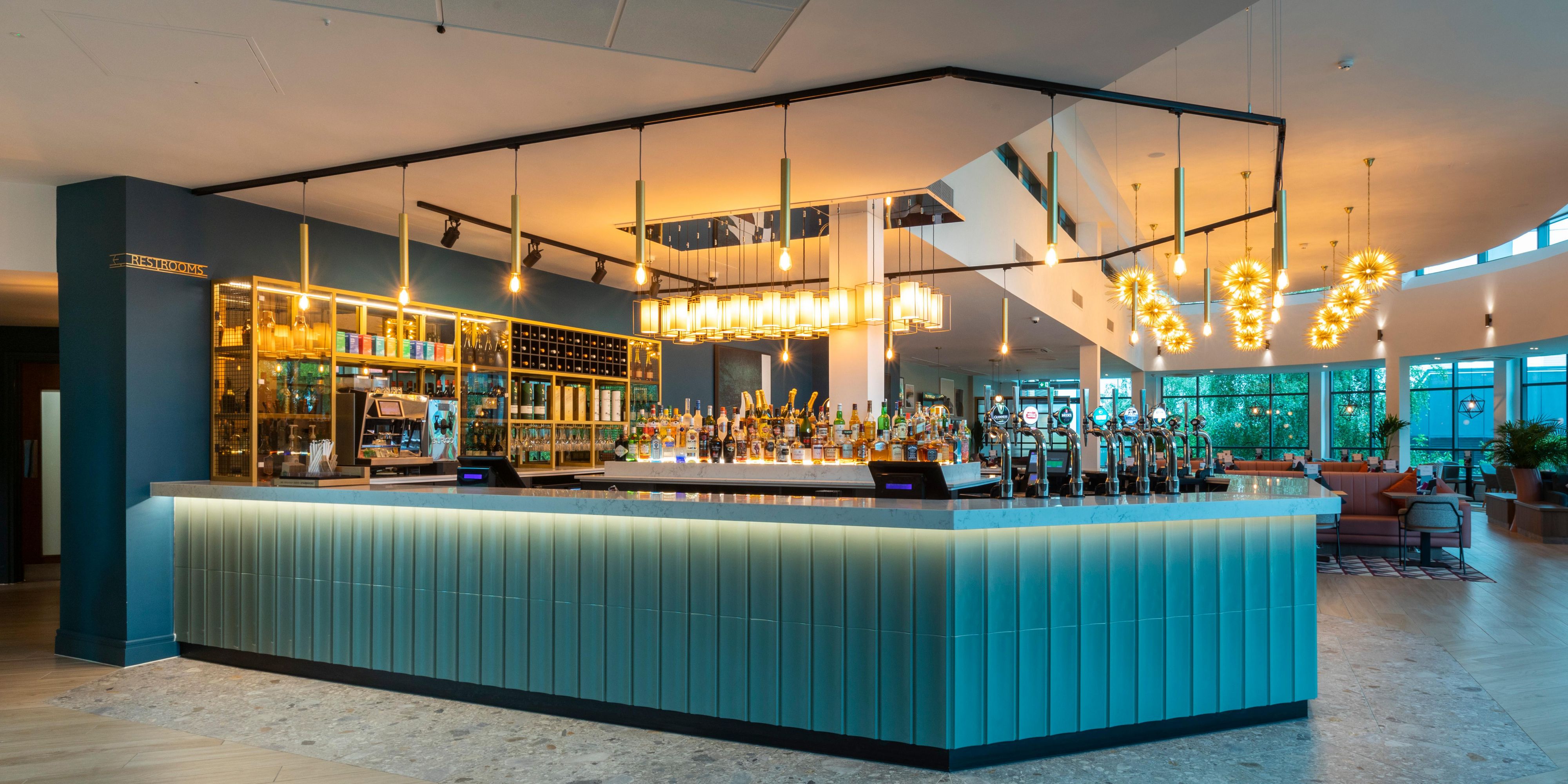 With full glass frontage and views over Pendigo lake, relax over a drink before dinner. Wireless Internet is available in bar / lounge area so with the M42 only 2 minutes drive from the hotel, The Lounge Bar is an ideal location to meet with colleagues over coffee. Crowne Plaza Birmingham NEC features Starbucks coffee bar, serving that latest coffee trends and mouthwatering pastries.
