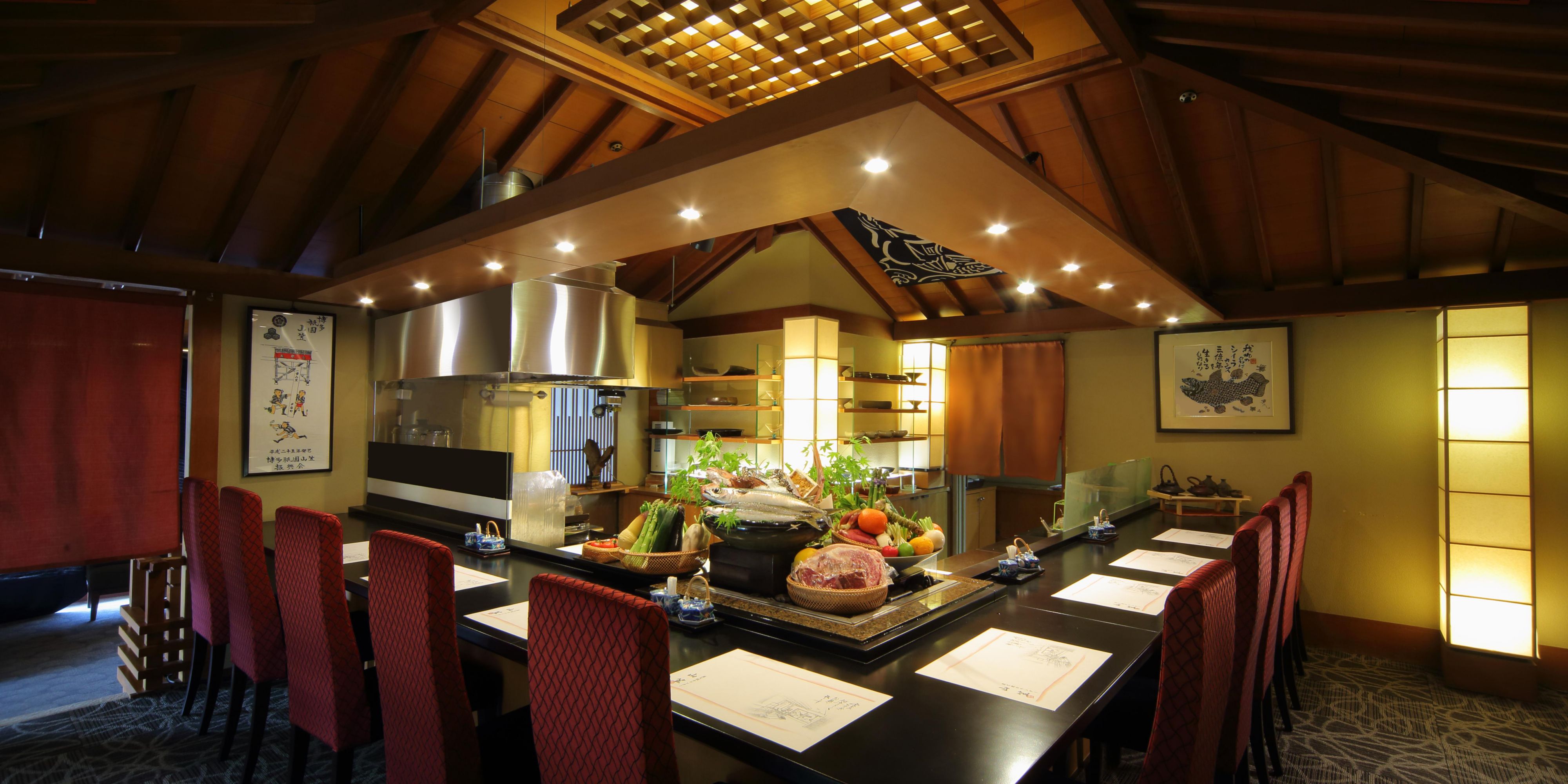 With panoramic views of Fukuoka city from the 15th floor, Chikushino offers refined Japanese cuisine using seasonal ingredients. Enjoy the traditional Kyoto style Japanese course menu or local hot pot Mizutaki, within the main room or near a Japanese Garden together with local sake and shochu. For those celebrating with a group or a special occasion, private tatami rooms are available.