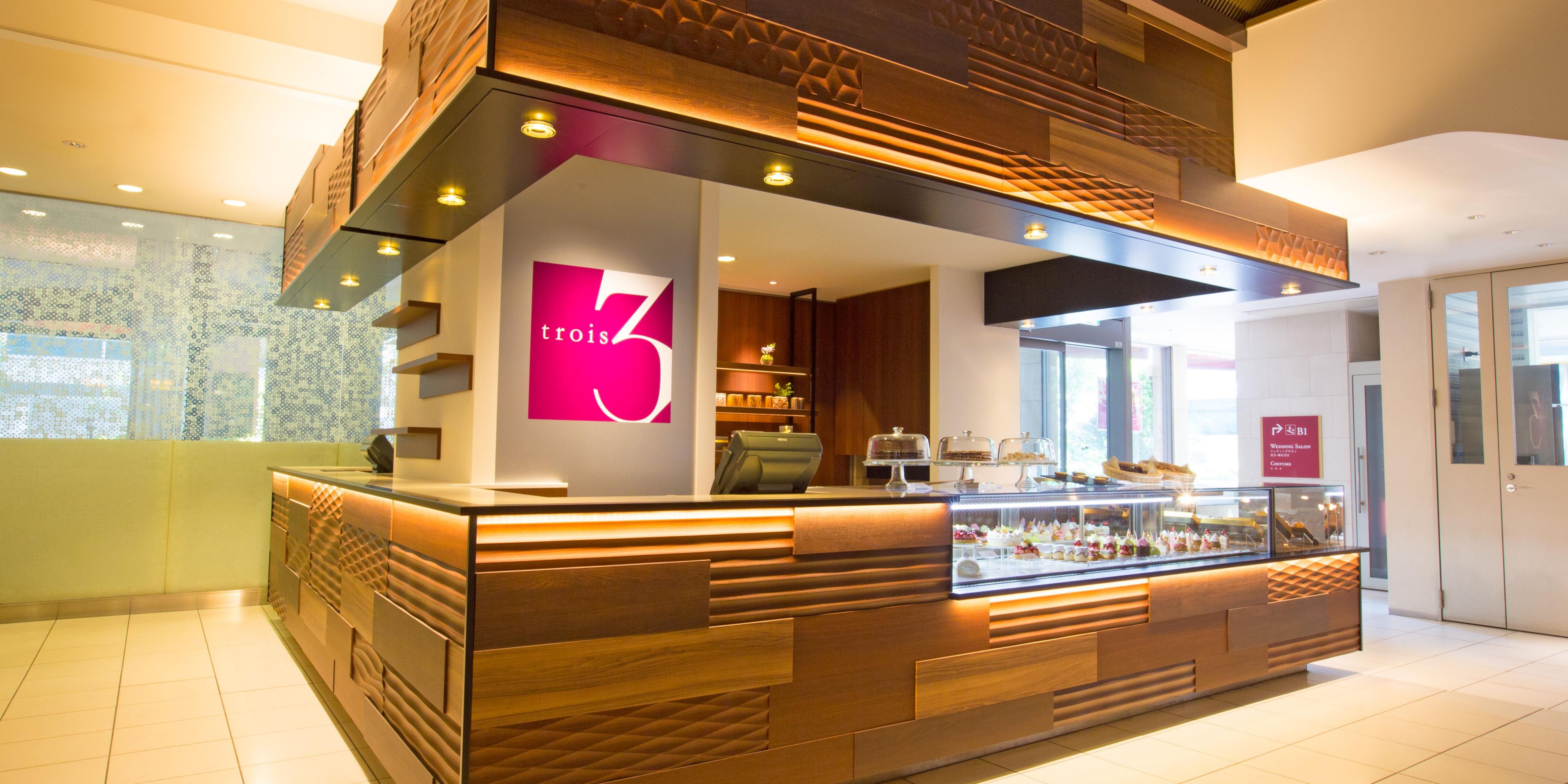 You can enjoy delicious, European style pastries and seasonal fruit treats from Trois, the onsite patisserie. This local favorite attracts crowds from the bustling areas around the hotel who gather to indulge in pastries that are hand made on site. Trois specializes in pillowy canelé, an abundance of pastries, and takeaway afternoon tea.