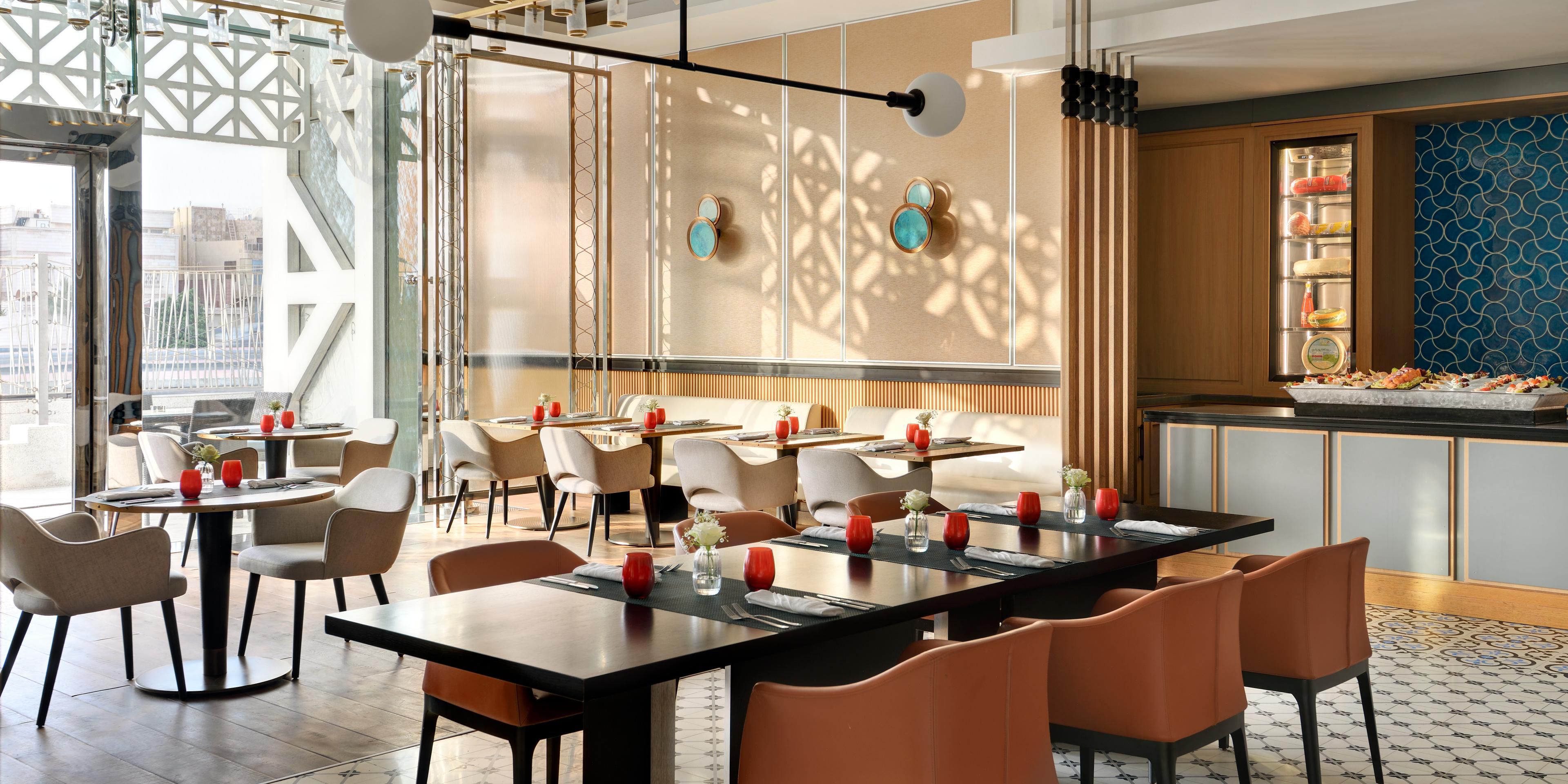 Savour multicultural cuisine and live cooking at Crowne Plaza Jeddah hotel's signature restaurant Mavi, enjoy snacks at the hotel’s café and lounge bar, or work and relax in the comfort of your own room with our in-room dining.