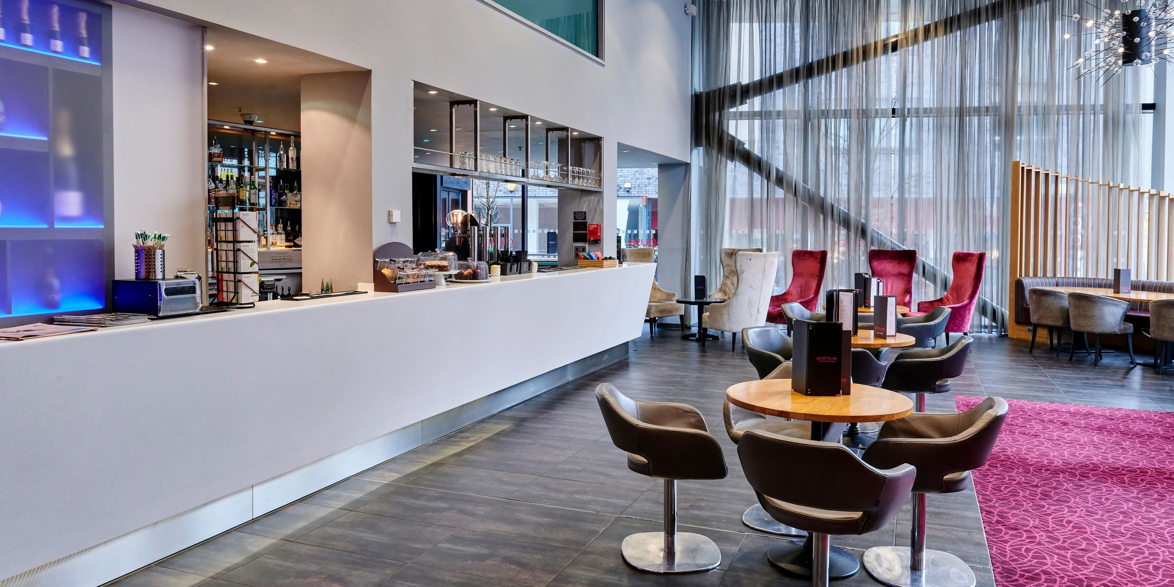 Located on the eighth floor, our Club Lounge offers skyline views and a calm place to relax. Enjoy complimentary breakfast and evening drinks with canapés from 18:00–20:00. Access is limited exclusively to guests in our Club Rooms and Suites.