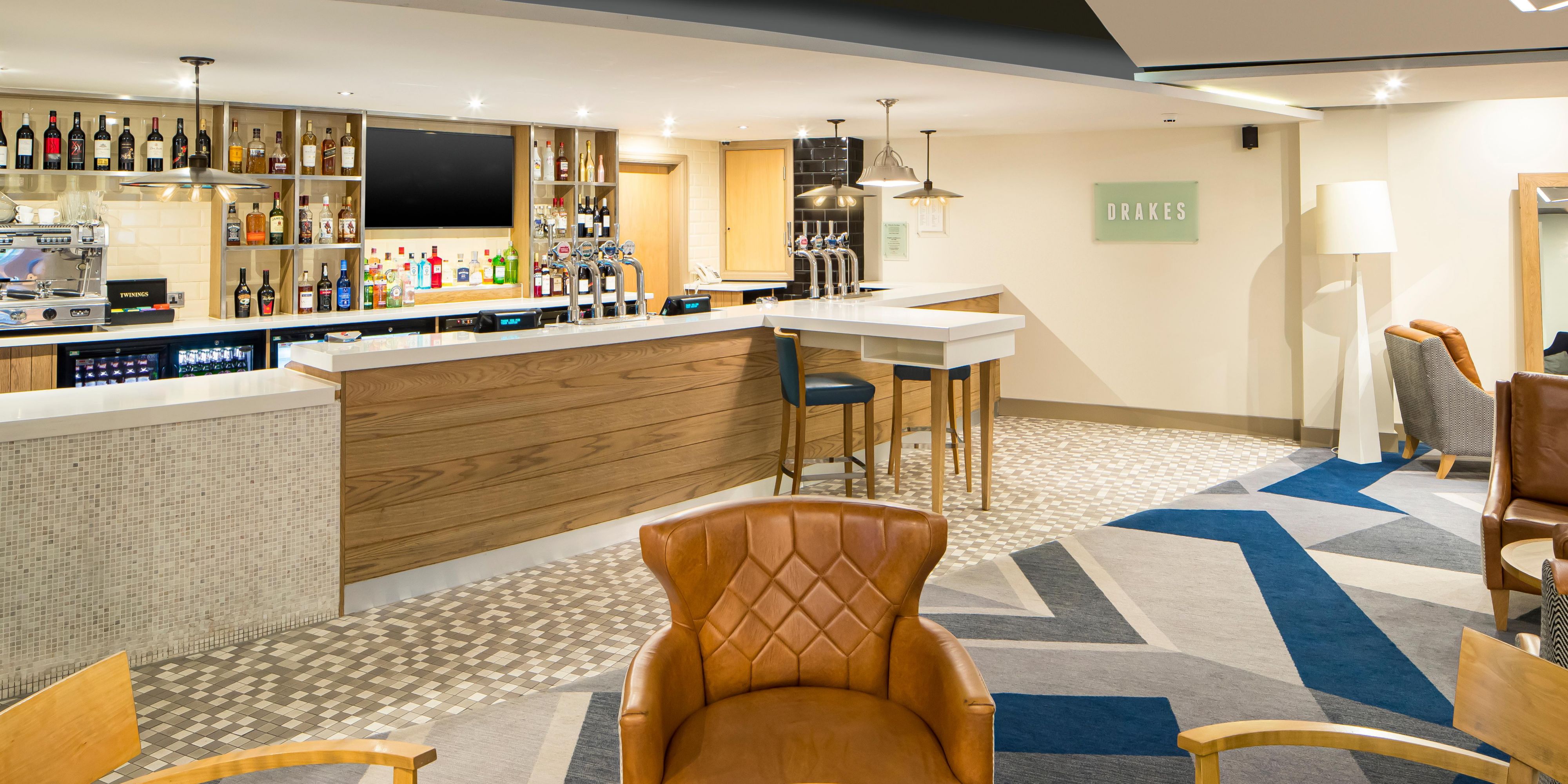 Marco Pierre White Steakhouse Bar & Grill on the penthouse floor with sea views is recommended to book in advance on 01752 639937. Drakes Lounge & Bar on the ground floor offers a variety of alcoholic and (non-alcoholic) beverages.