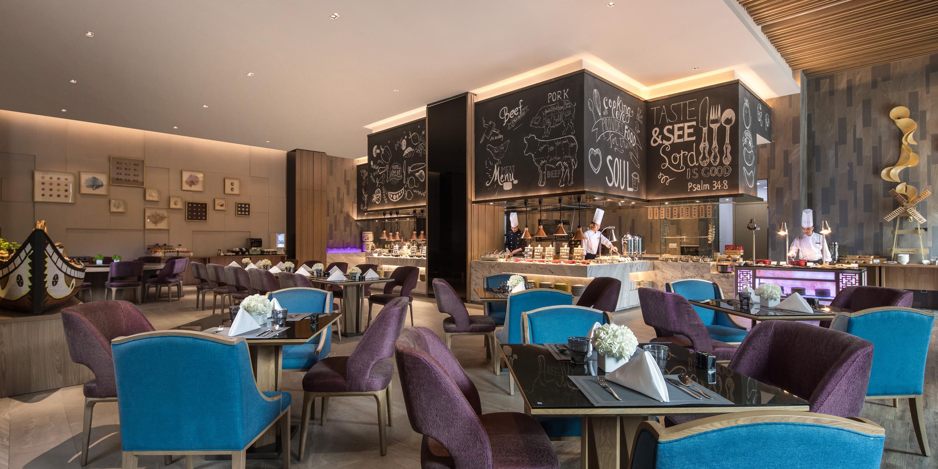 Located on the 1st floor of Building A, Café Hollywood All Day Dining Restaurant is like itself an exquisite delicacy, providing dinners with both exquisite food and a gathering of starlight. The café serves an international selection of Asian and Western fare, served both buffet style and à la carte. All food is prepared with the freshest local and superior quality imported ingredients available, resulting in rich, beautiful dishes and seafood that will leave you longing to return.
