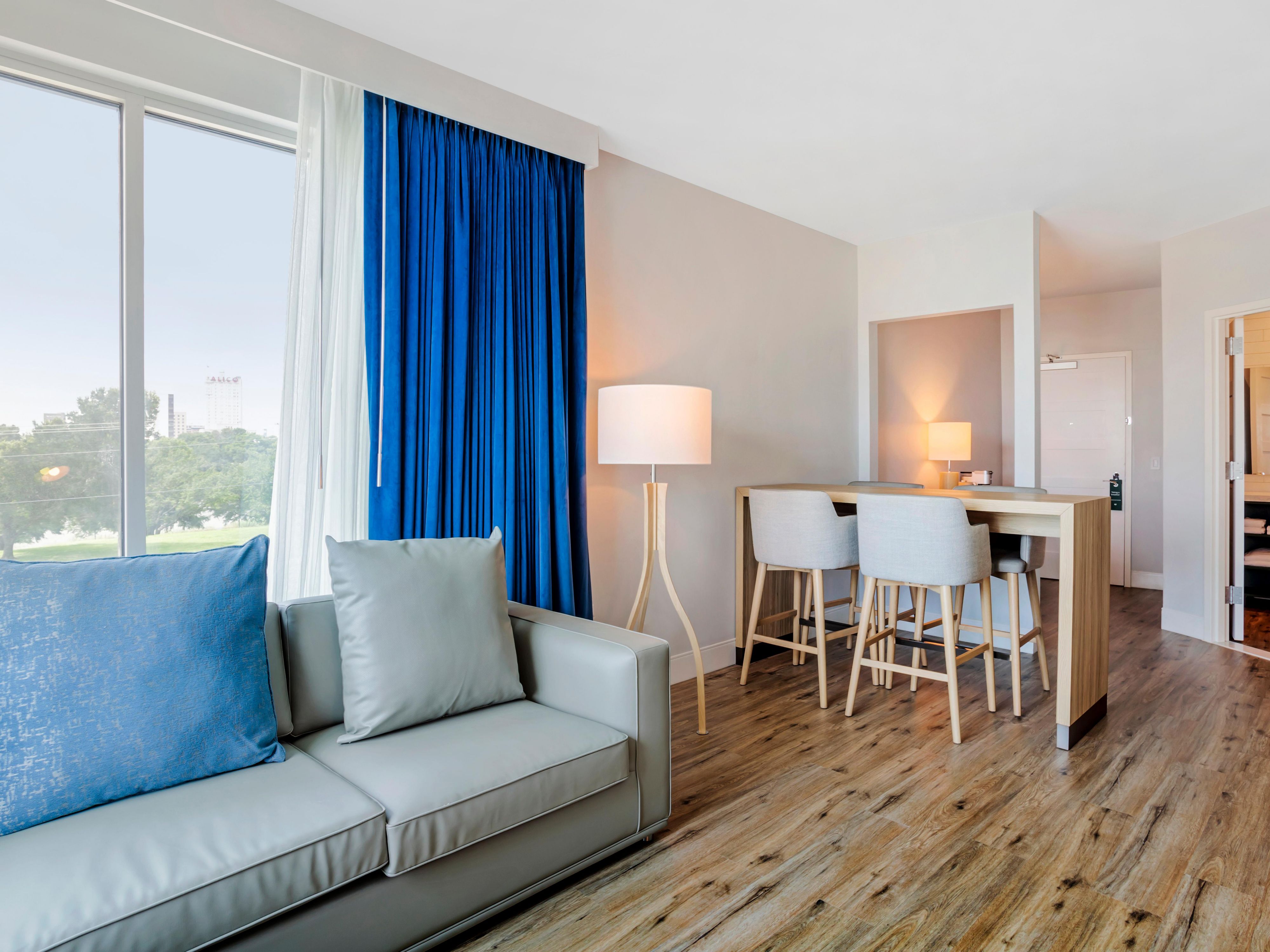 Embrace sophistication in our light-filled rooms featuring walk-in showers, premium bedding, and in-room Fitness Zones. Upgrade to a premium room or suite for your own Peloton® Bike. Stay active, stay connected, stay productive - and rest easy in Waco.