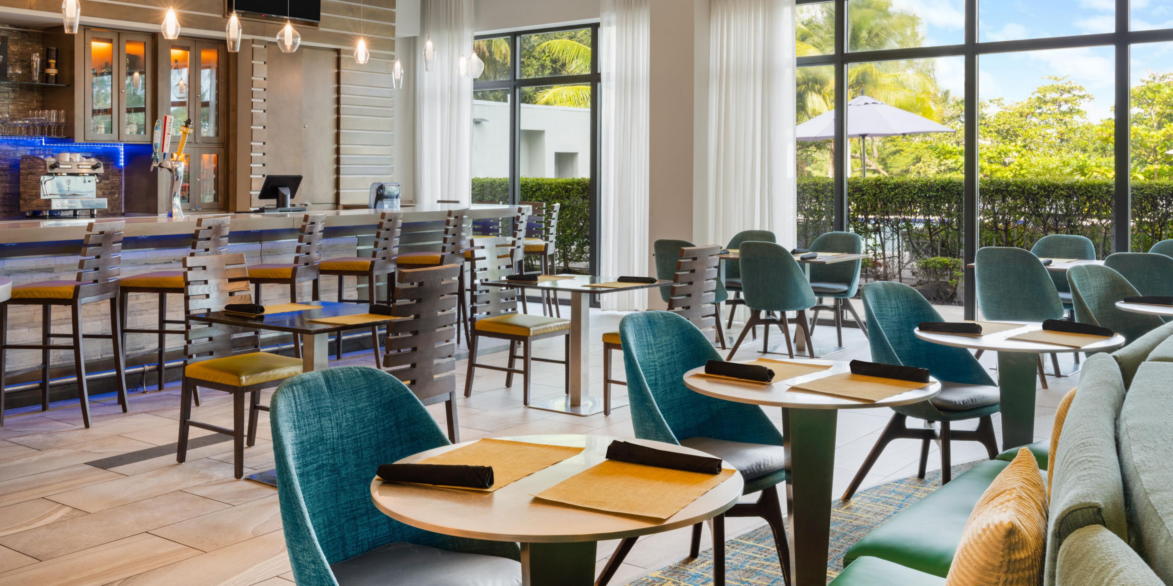 Enjoy EVEN Kitchen & Bar, featuring fresh and flavorful meals. Our 24/7 market offers a variety of snacks and grab-and-go options, while our bar serves refreshing beverages, or head out to dine at top restaurants near Miami Airport.