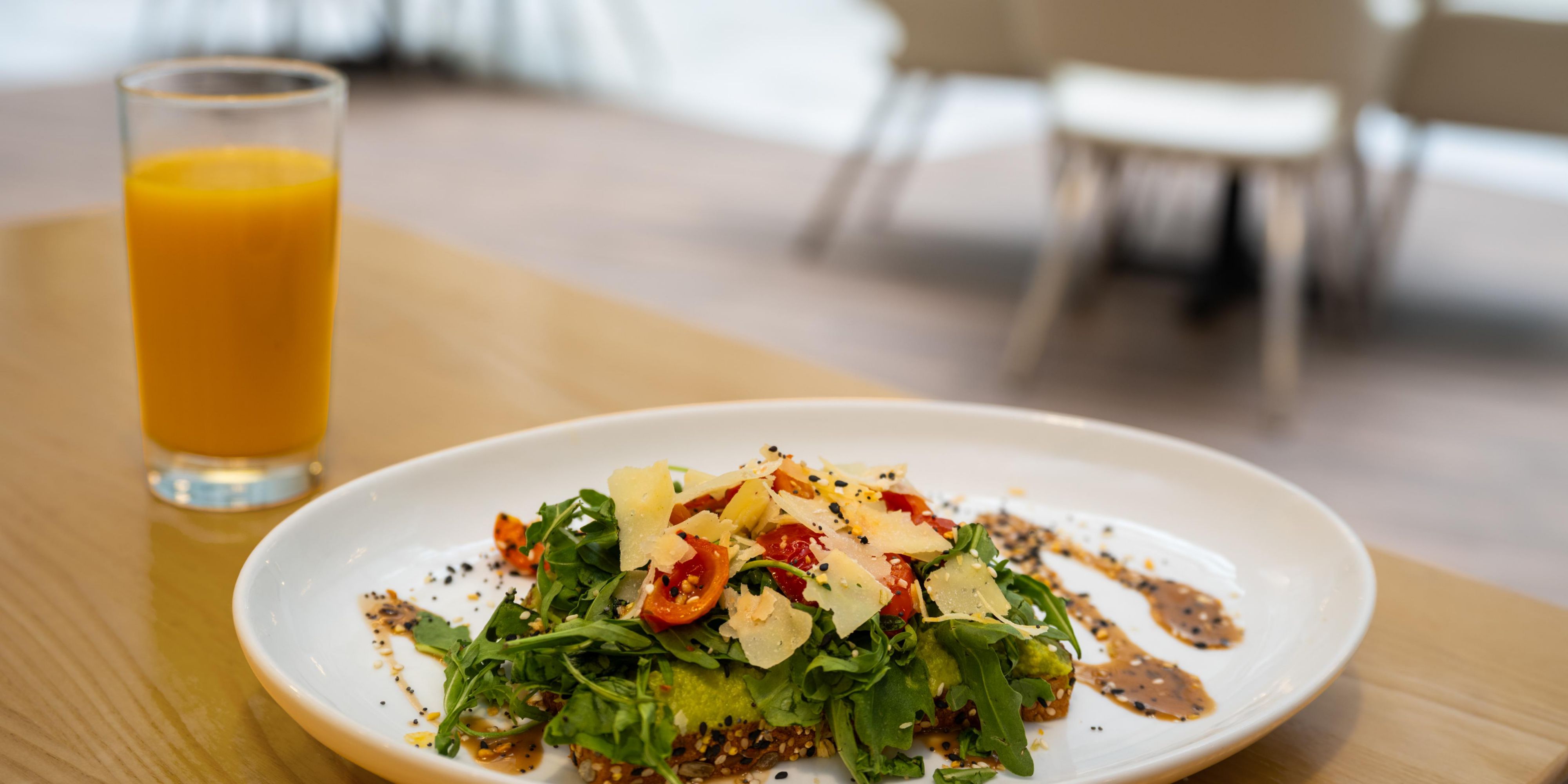 Our thoughtfully crafted menu offers a delicious variety of lighter fare and more satisfying options. Start your morning with breakfast classics and a fresh brewed latte, and select from a host of small plates, sandwiches, flatbreads, and more in the evening, paired with your favorite cocktail or cold beer.