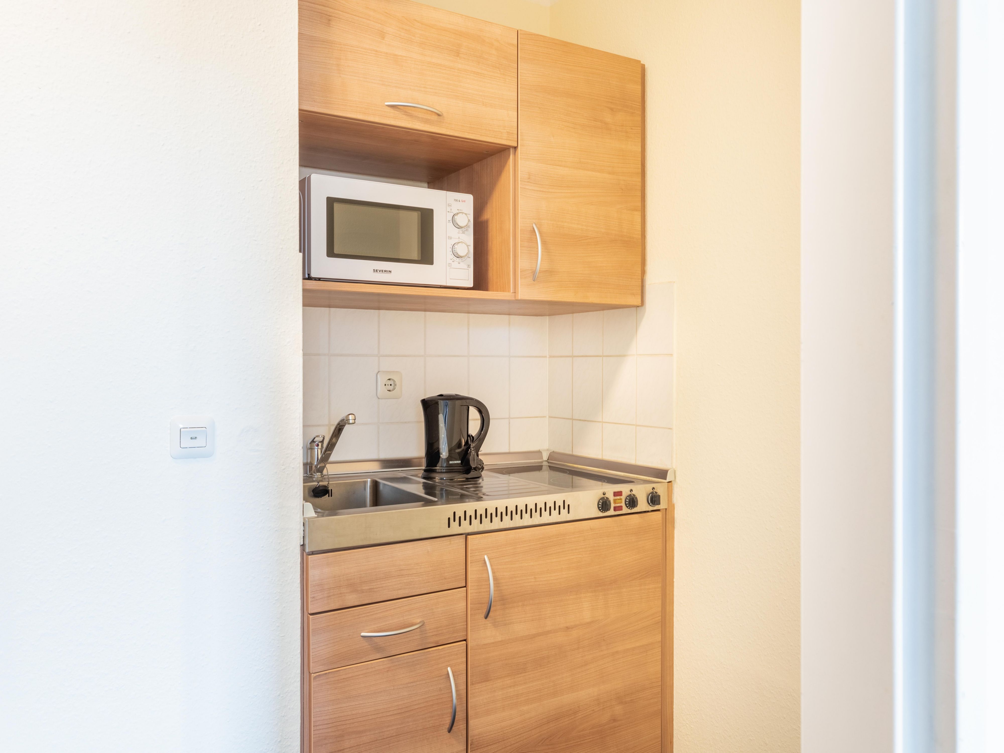 We offer single, double, and family rooms, with kitchenettes available in all categories. Kitchenettes come with a refrigerator, hotplates, a kettle, coffee maker, and sometimes a microwave. Rooms feature soundproof windows, a seating area, flat-screen TV with satellite, minibar, desk, safe, and a bathroom with shower or bathtub. Some rooms include a balcony or terrace. Our apartments with separate living and sleeping areas are perfect for long stays.