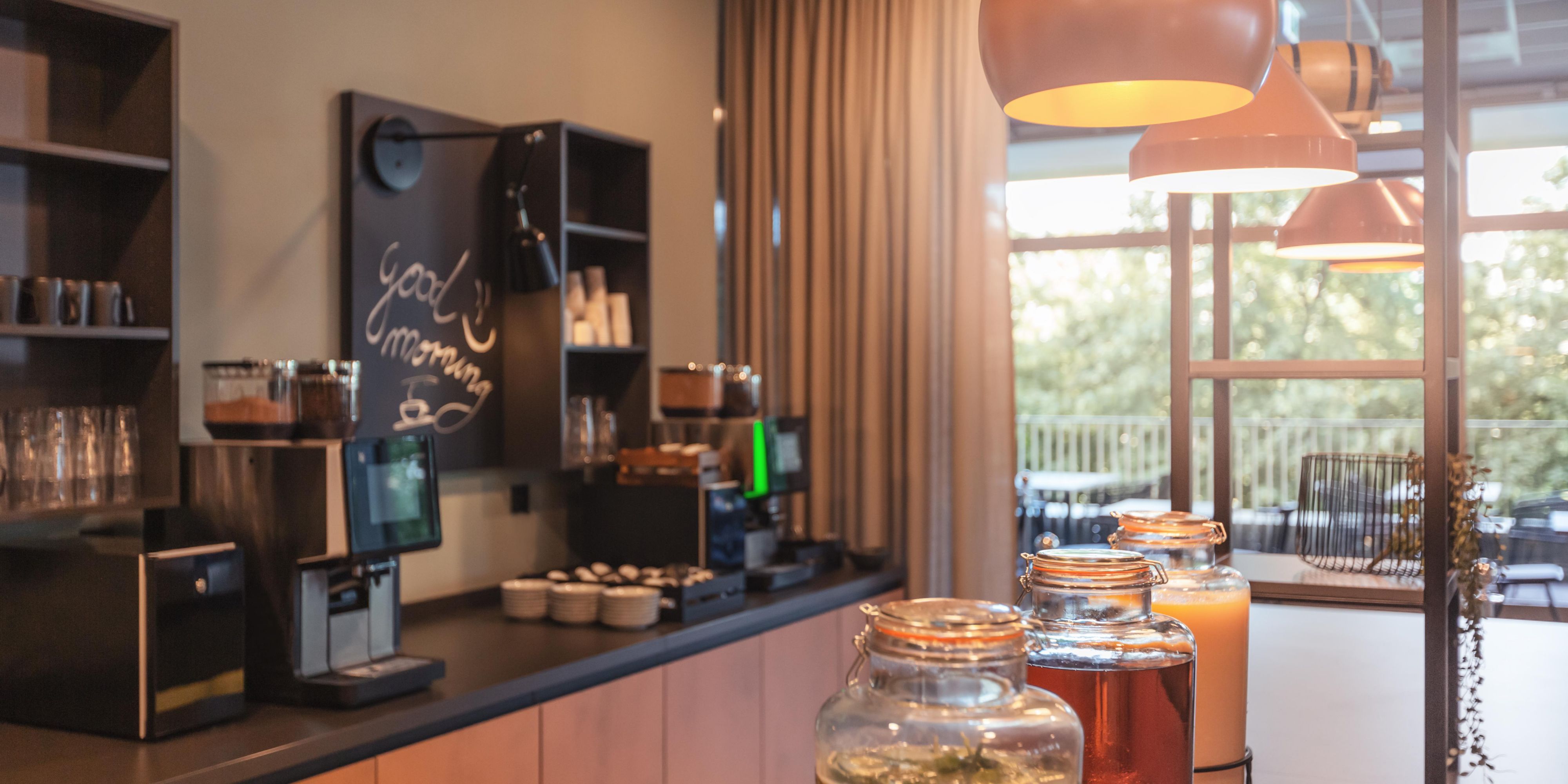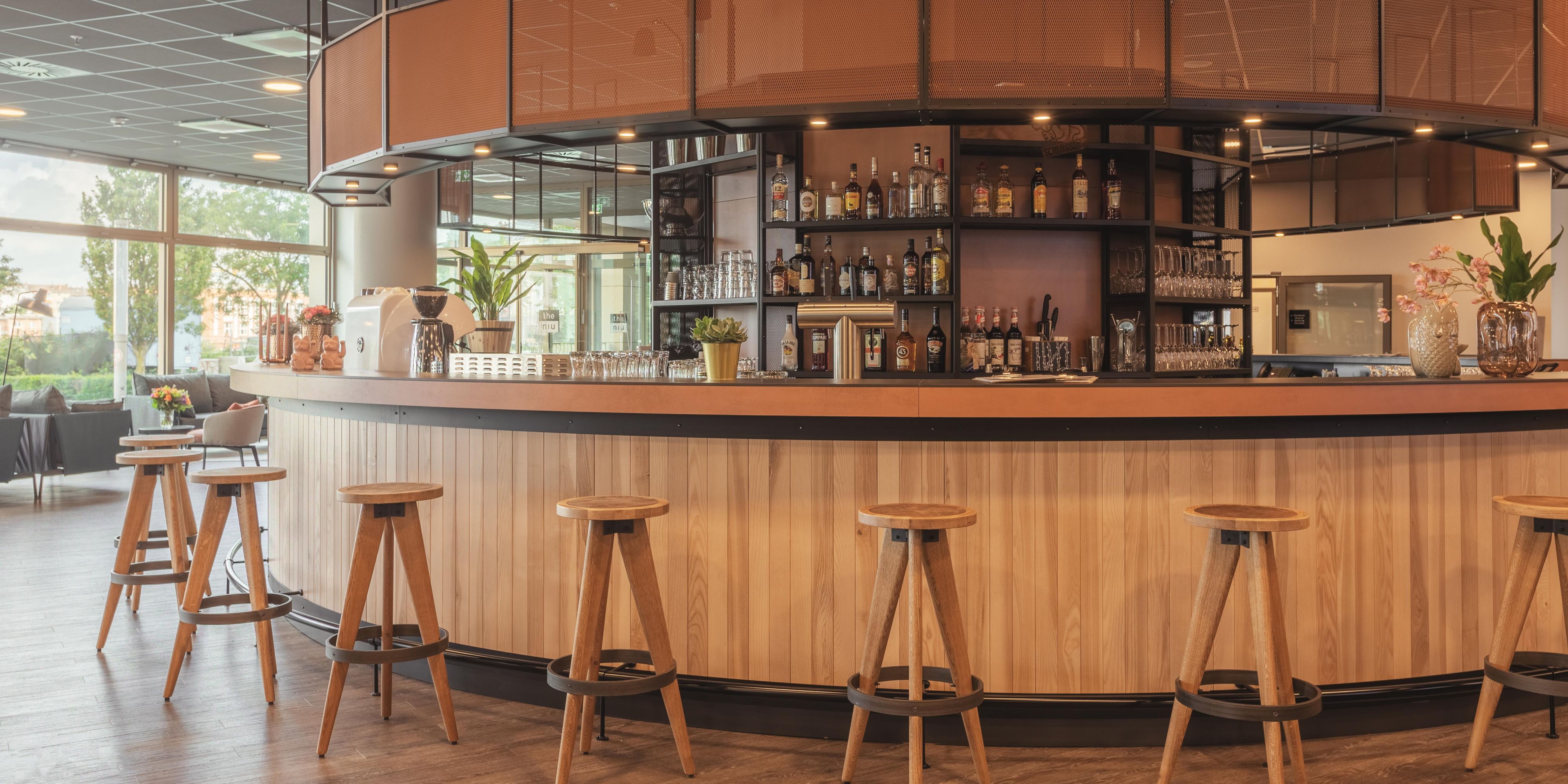Enjoy the relaxed lounge atmosphere in our bar around the clock, perfect for delicious food and drinks. If you're feeling a little peckish, we offer delicious snacks and refreshing drinks at any time in the lobby shop.