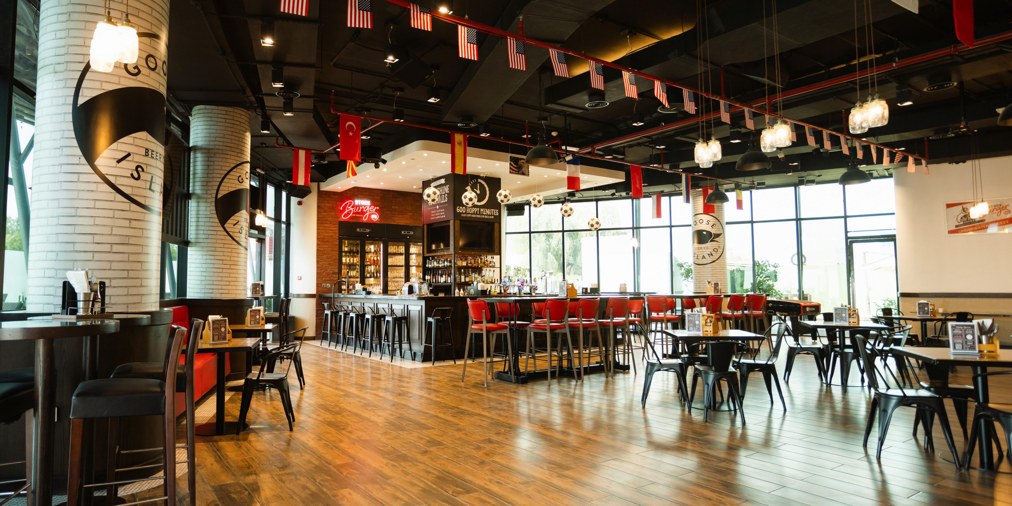 斯托克汉堡餐厅是由一个完美而始终吸引人的搭配所定义的新型休闲餐饮概念:优质汉堡和精酿啤酒。这家令人兴奋的餐厅和酒吧提供了一个友好、充满活力且有趣的休闲体验,中央吧台吸引眼球,欢快的氛围通过悦耳的音乐和几乎每个座位都能看到的电视屏幕推动起来。