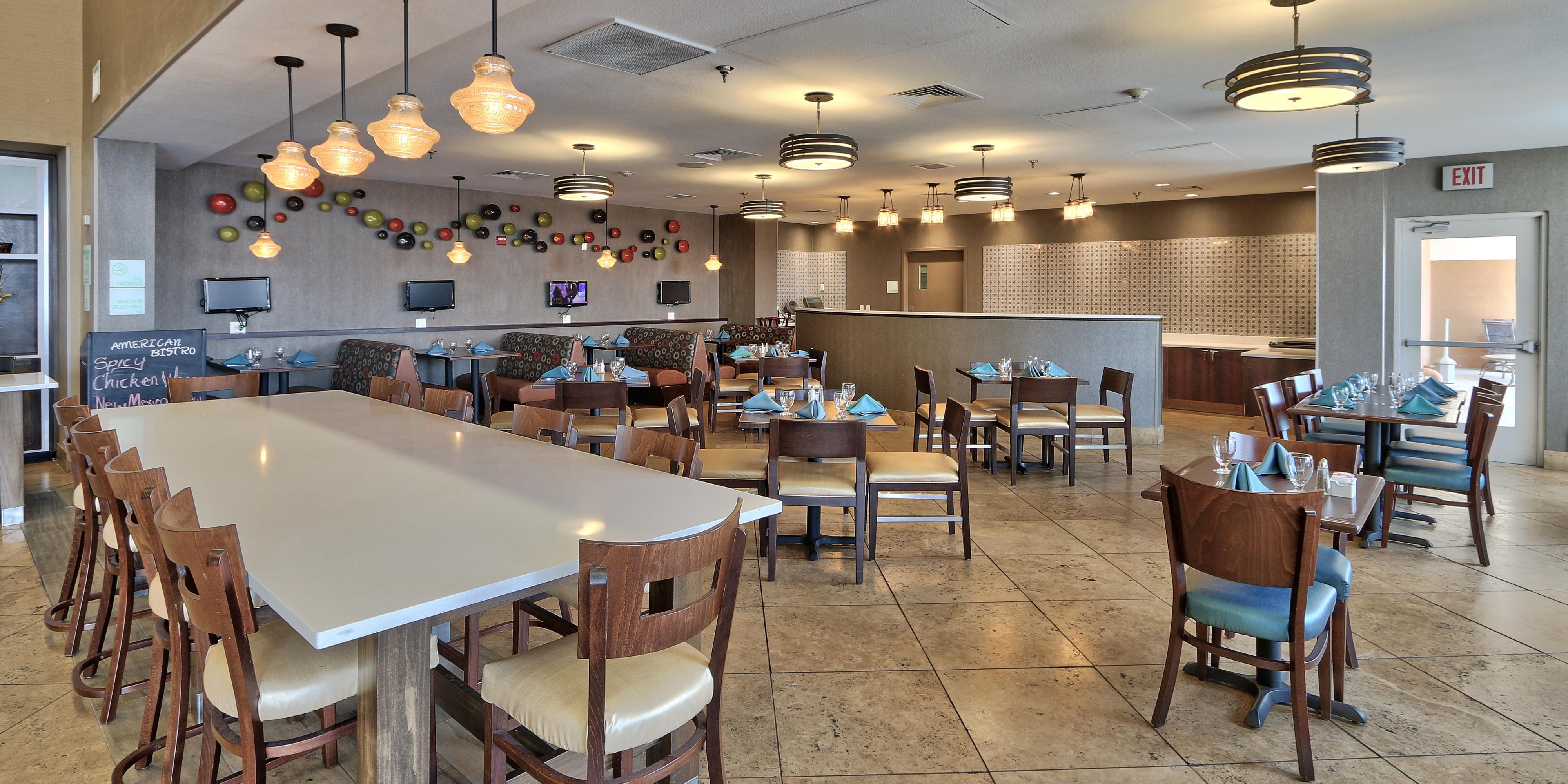 Enjoy a delightful breakfast experience at American Bistro, conveniently located just off the lobby. Our traditional breakfast menu offers classics like the Build Your Own Omelet alongside favorites like the Innjoyable Breakfast. Whether you prefer a hearty meal or lighter fare, we have something to please every palate. Prepared fresh to order every morning, savor the delicious flavors of the Southwest at American Bistro.