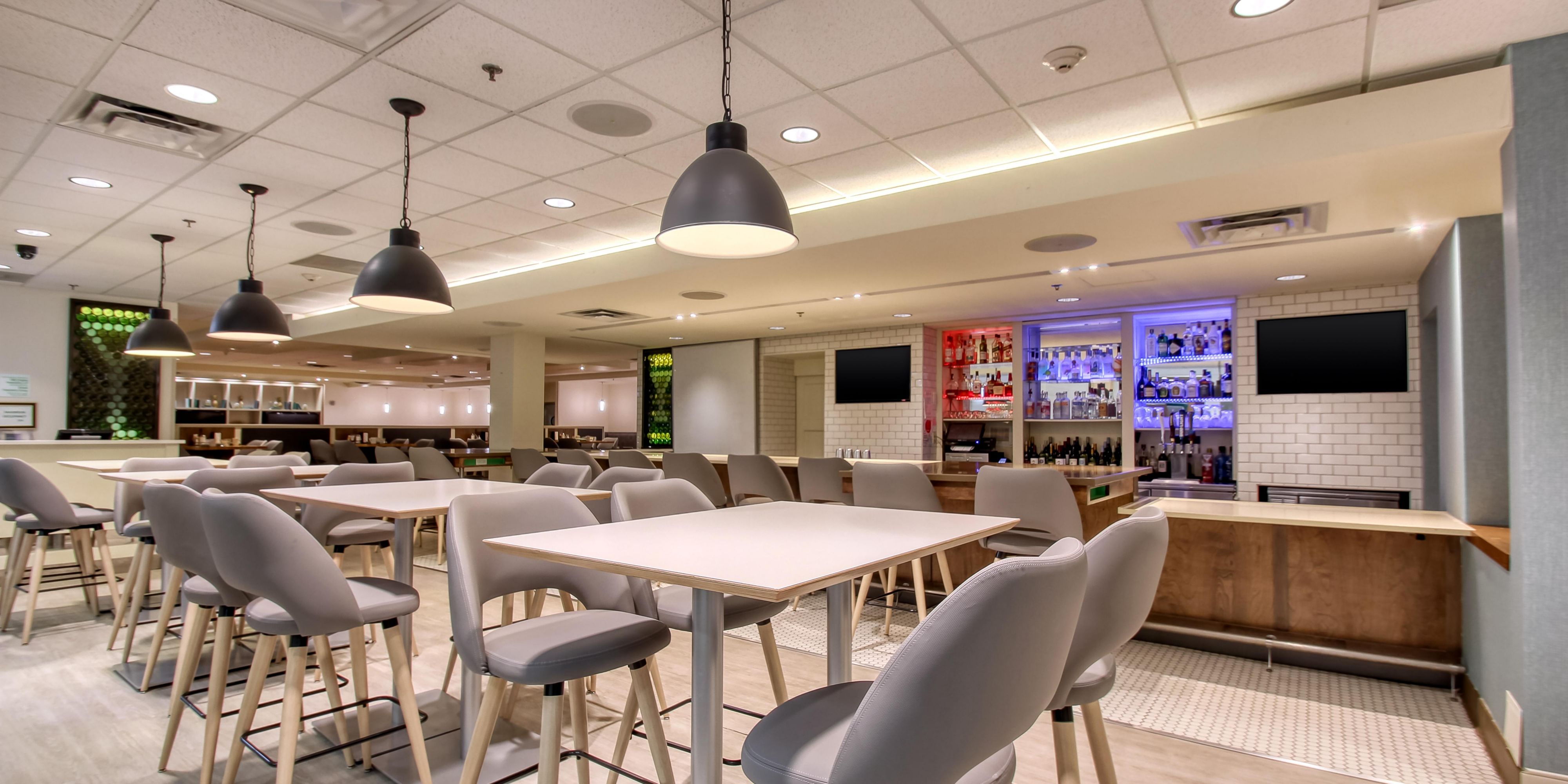 The Hangar at Holiday Inn and Suites Airport North, which features our restaurant, bar and Business Center, is our bold, new approach to hotel social living and the heartbeat of our signature concept which integrates world class service with the latest technology. Have a signature cocktail, dine on inspired cuisine, watch the game on one of the many HDTVs in the media lounge and recharge at one of our Laptop Lounges. Special menus for late night offerings are available at the Hangar.