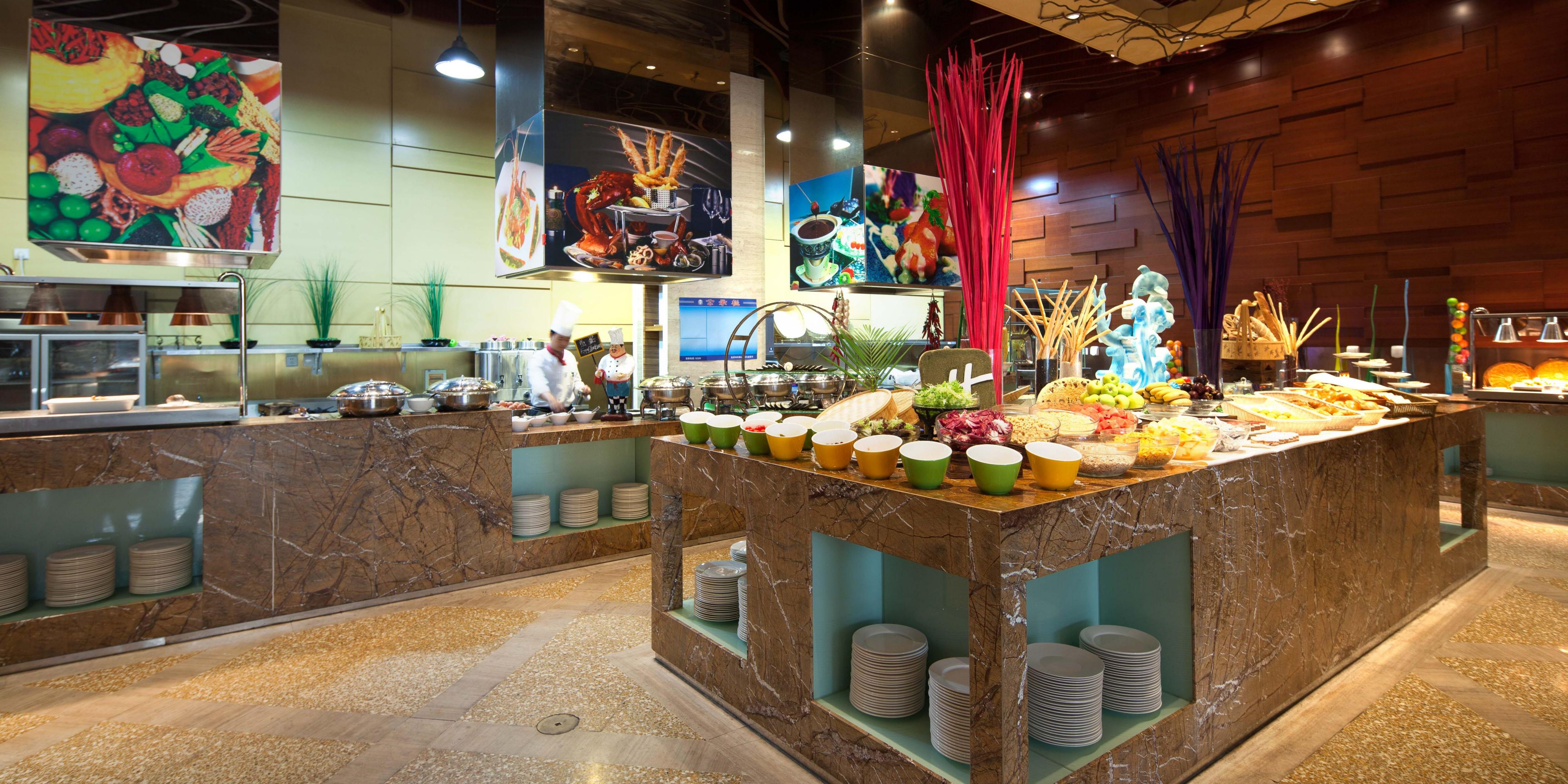 供应中西式自助早餐及零点美味,餐厅全明落地窗及高挑空大厅设计,令视野开阔无比。近千平米庭院内玉兰树亭亭玉立,树影斑驳,徜徉其中,定会让您流连忘返。润景咖啡厅是您与亲朋相聚、商务宴请的理想之选。