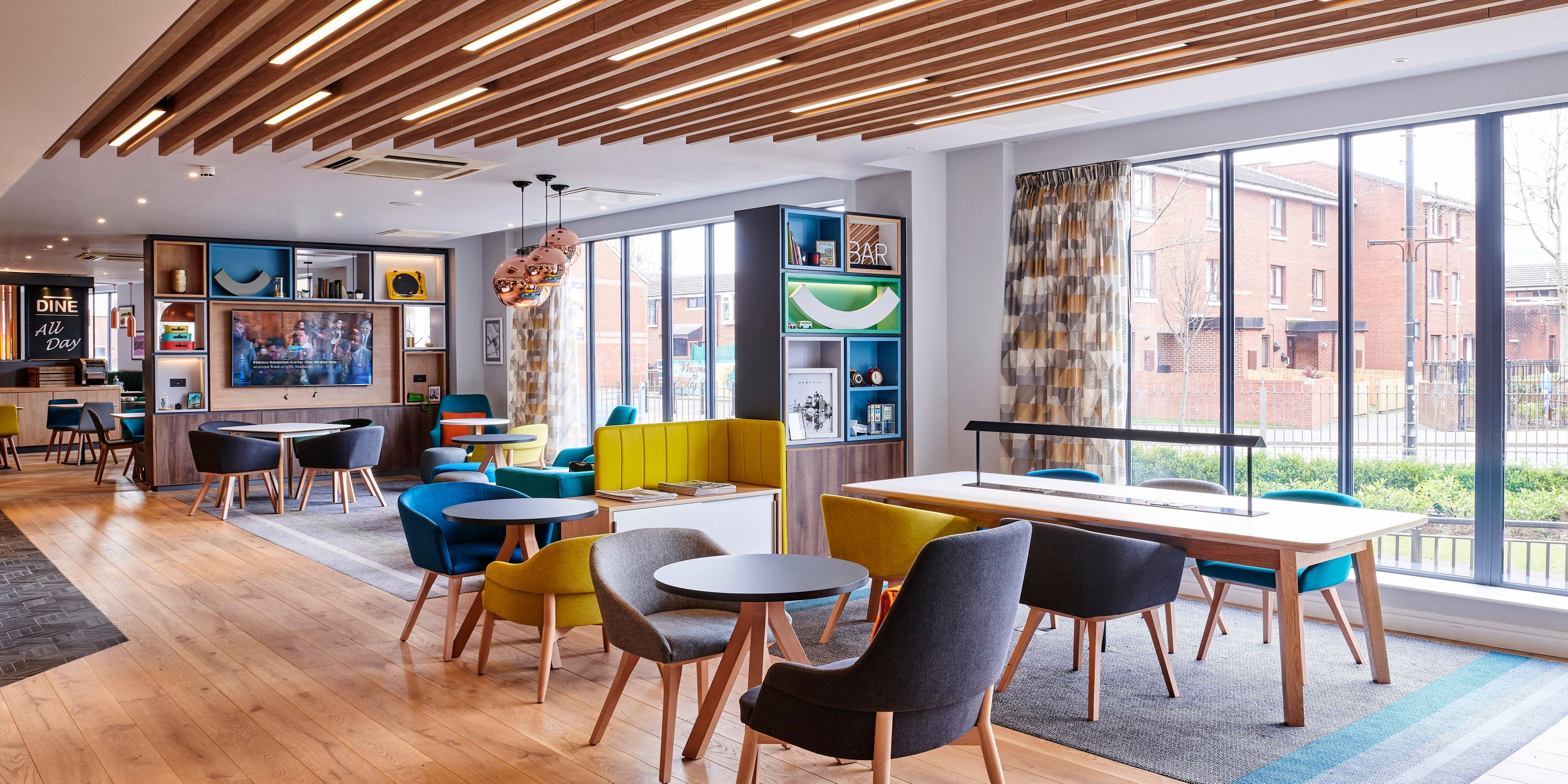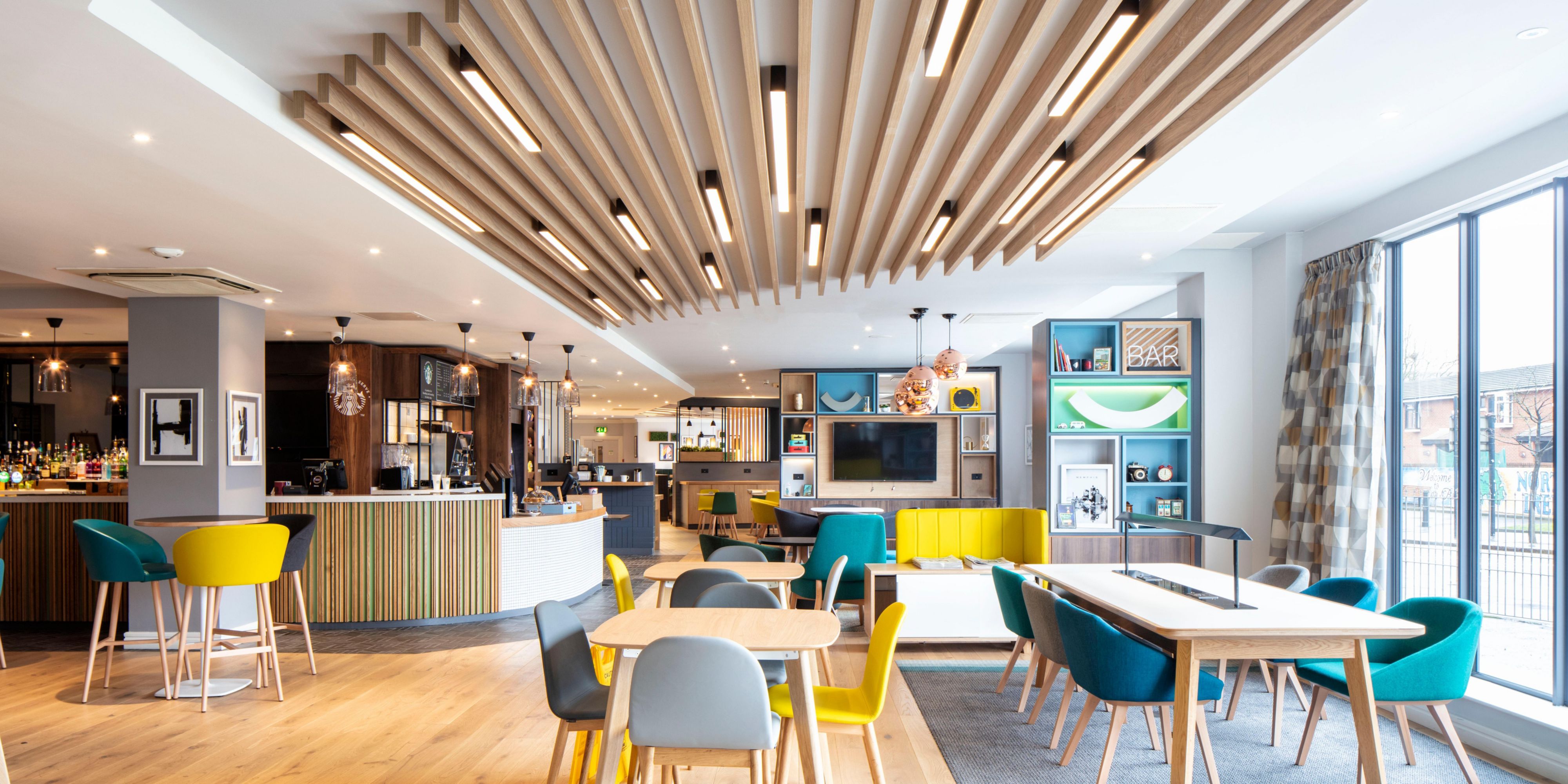 Wake up to a delicious buffet breakfast, then relax with a Starbucks coffee or a chilled pint in the hotel's modern bar and lounge. The restaurant dishes up burgers and pizzas in a relaxed and stylish atmosphere. Kids stay and eat free always.