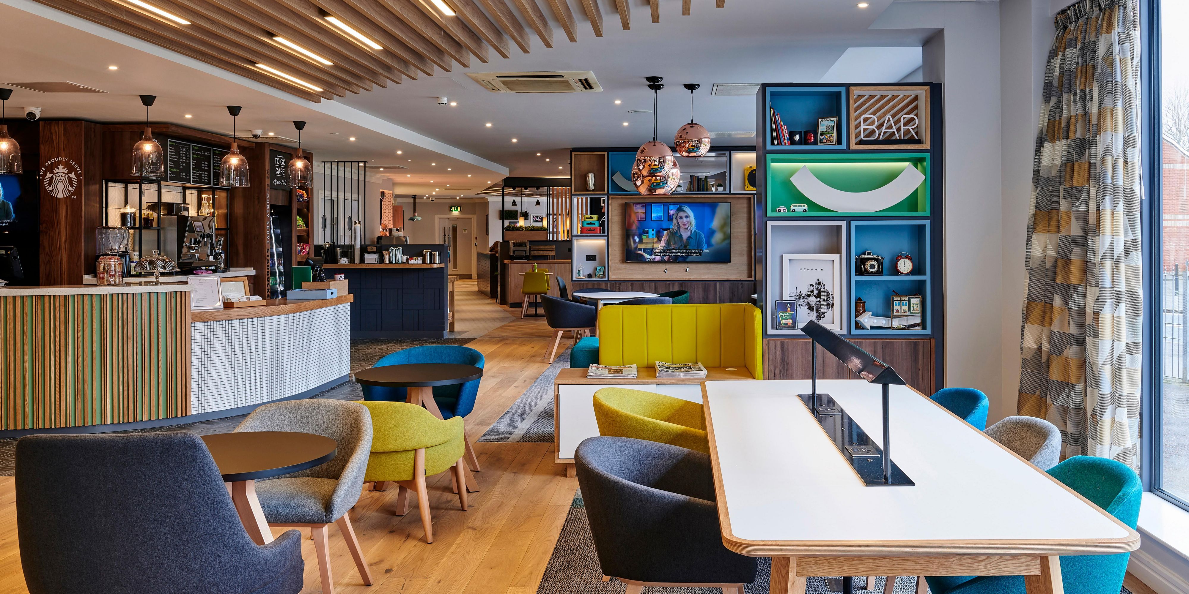 Our bar & lounge has a fantastic informal atmosphere. We offer free wireless internet access which makes this area the ideal place for informal meetings or gathering with friends or family. Enjoy a Starbucks with our delicious range of coffee, tea, hot chocolate and iced drinks. The bar menu is available throughout the day with a wide range of drinks from chilled beers, wines & spirits or enjoy a freshly prepared meal in the restaurant with delicious dishes to suit all tastes.