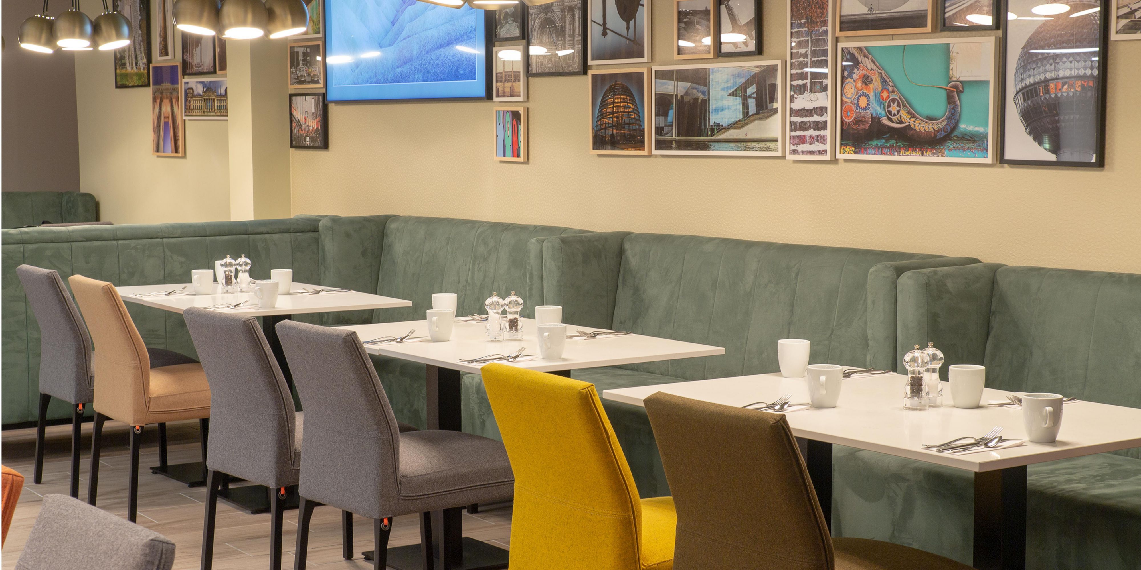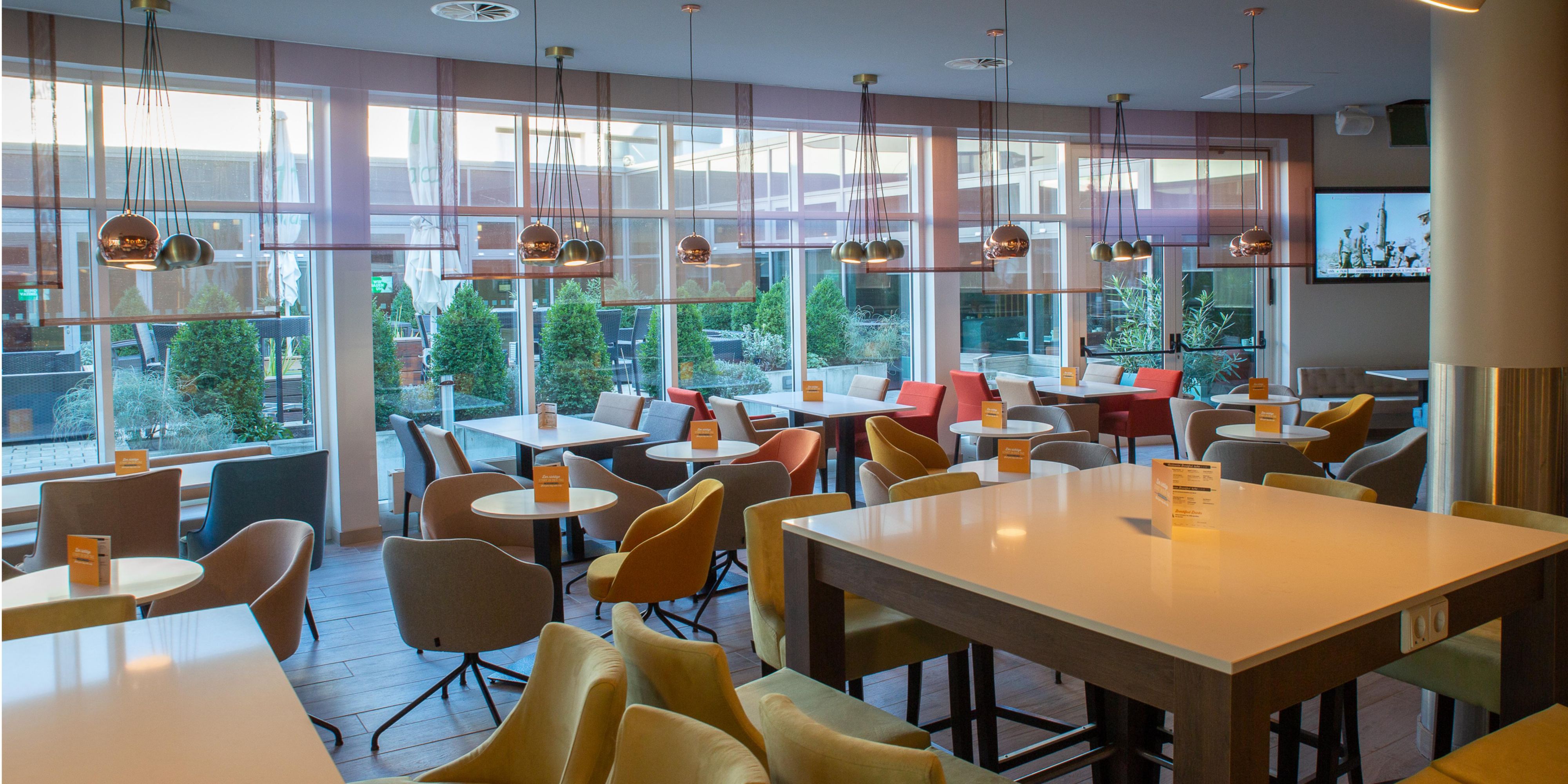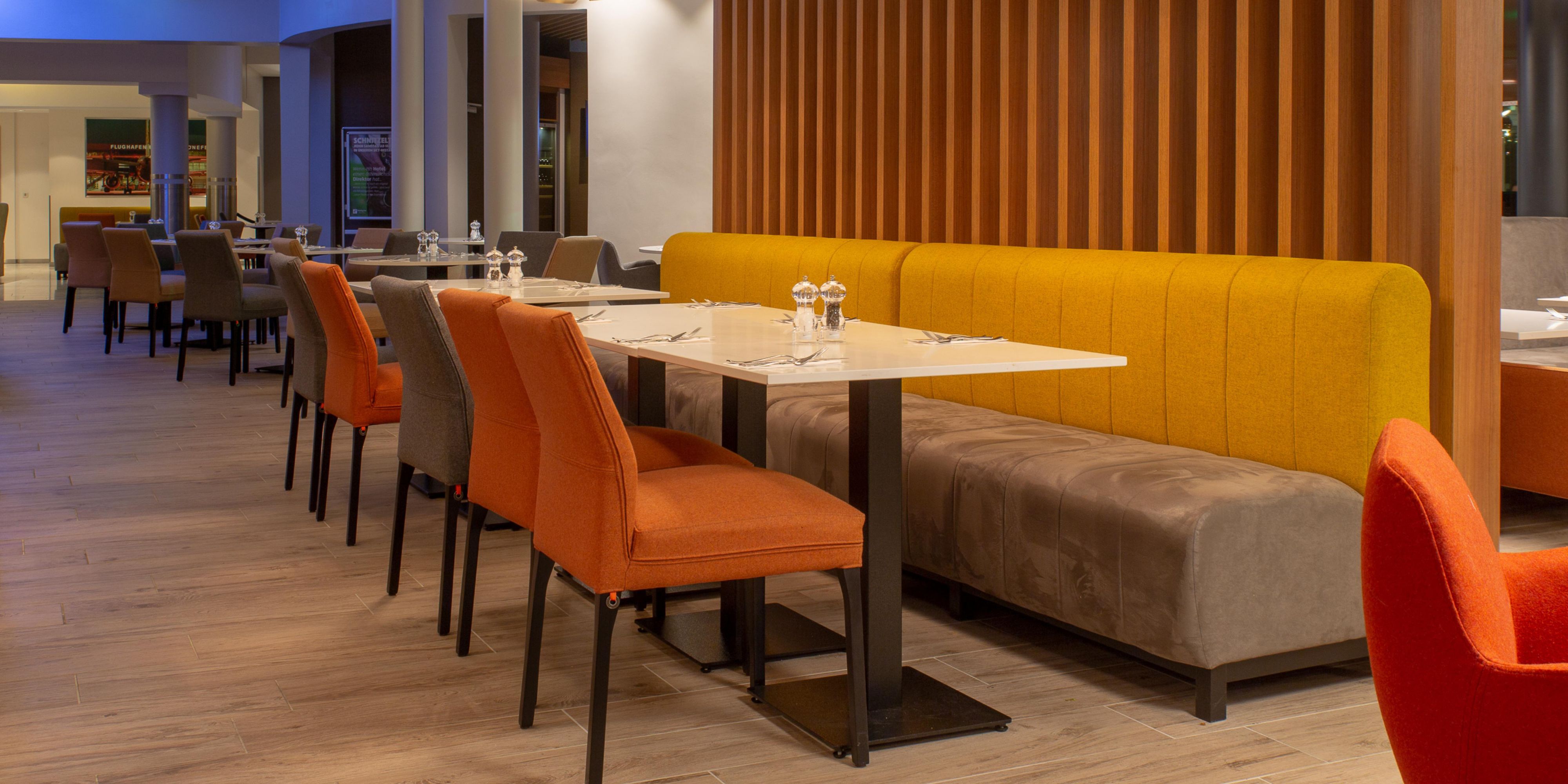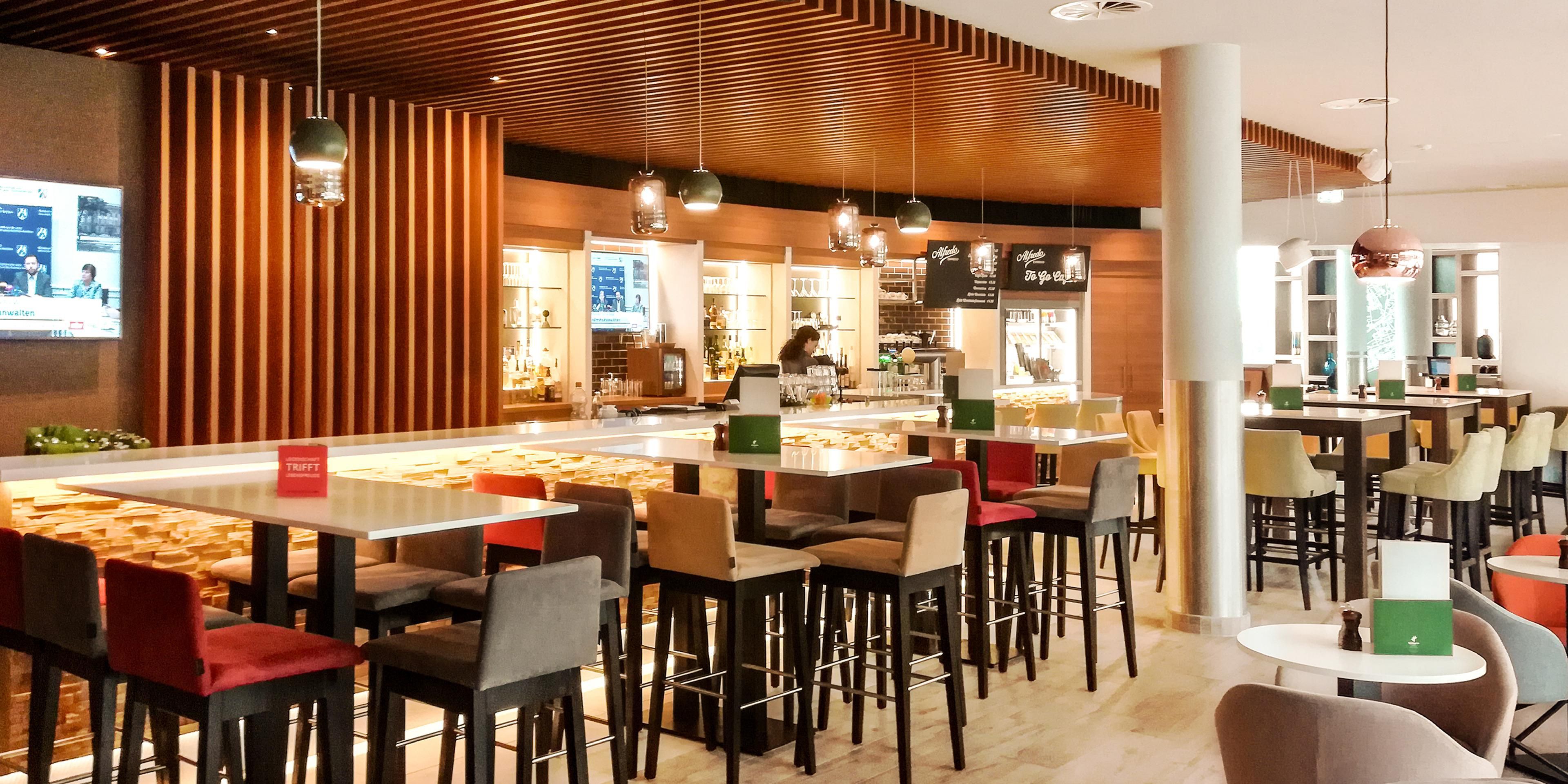 Our gastronomy service HANGAR 24 Bar and Restaurant offers you an international and varied menu with fresh, seasonal, and regional products. In good weather, spacious, sunny terraces are open to you for a visit. In our To Go Café, you will find coffee specialties. In the Wundermart you get cold drinks and small snacks to go around the clock. Daily opening hours: Breakfast 5.30 AM until 11 AM. All day Dining and Bar: 12 PM until 01 AM. Kitchen closes at 11 PM.
